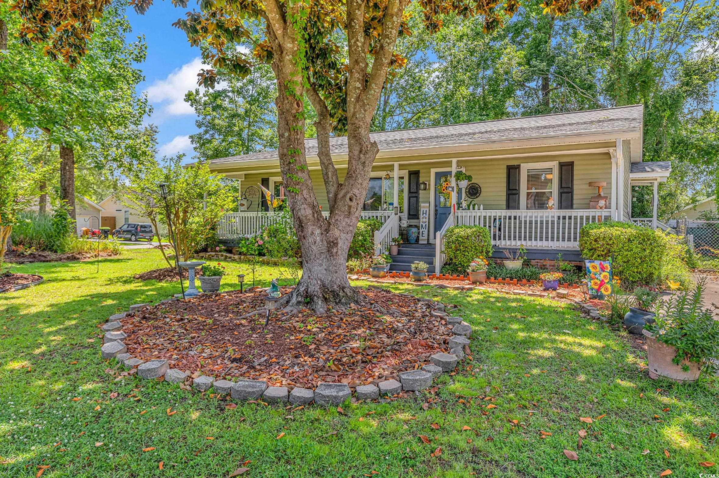Charming and move-in ready, this 3-bedroom, 2-bath ranch offers comfort, character, and convenience with no HOA! A full-width front porch welcomes you home, while a private back porch provides the perfect space to relax or entertain. The split floor plan ensures privacy, with the heart of the home featuring an open living and dining area complete with vaulted ceilings, a cozy fireplace, and wood floors. The kitchen is well-appointed with granite countertops, stainless steel appliances, a pantry, and ample cabinet space. Mature landscaping, colorful perennials, and a small fenced backyard create a peaceful outdoor retreat, ideal for pets, gardening, or gatherings. Built in 1988, the home has been thoughtfully updated with a new roof and new windows. All appliances and mounted TVs convey, and the seller is including a home warranty for added peace of mind. Located near the new Forestbrook Fire Station, this home offers the freedom to park your RV or boat right at home—no restrictions! Don’t miss this well-maintained gem in a convenient location!