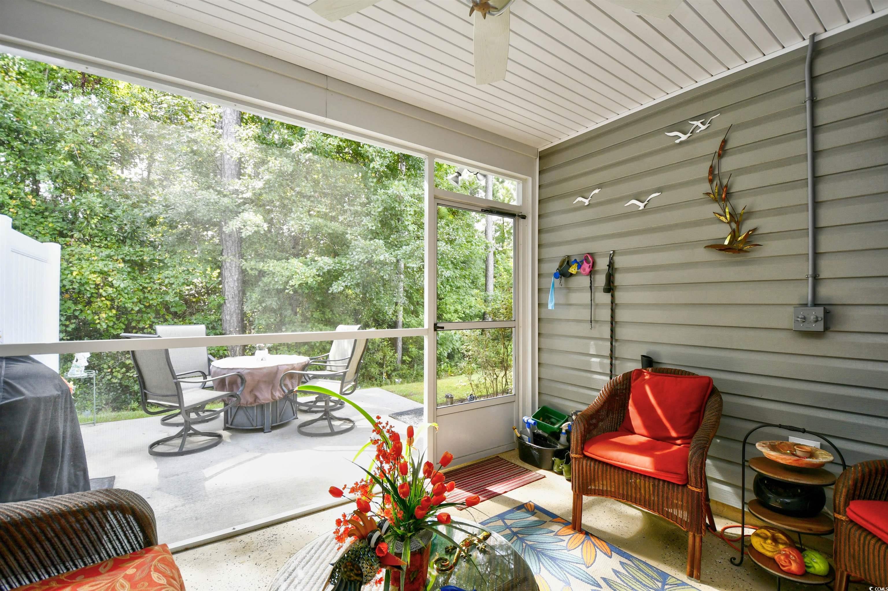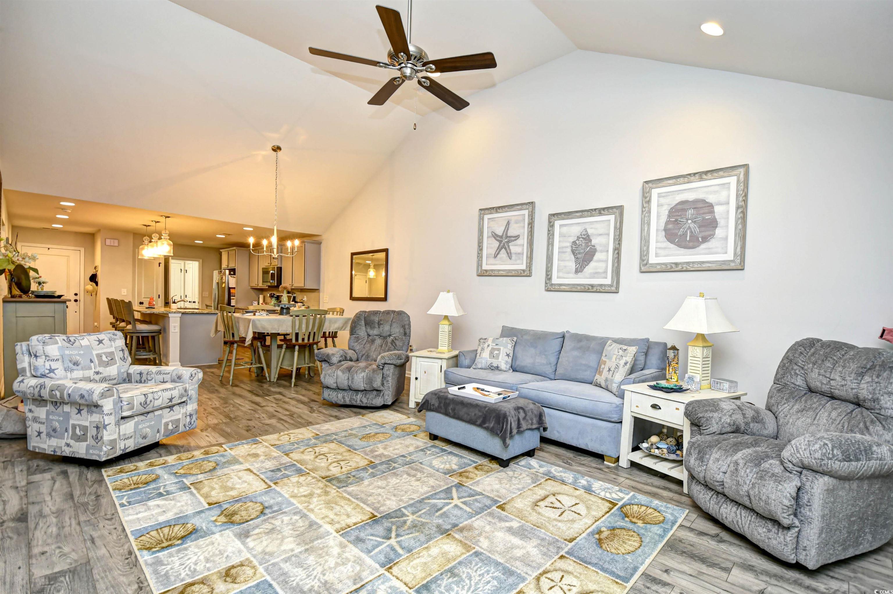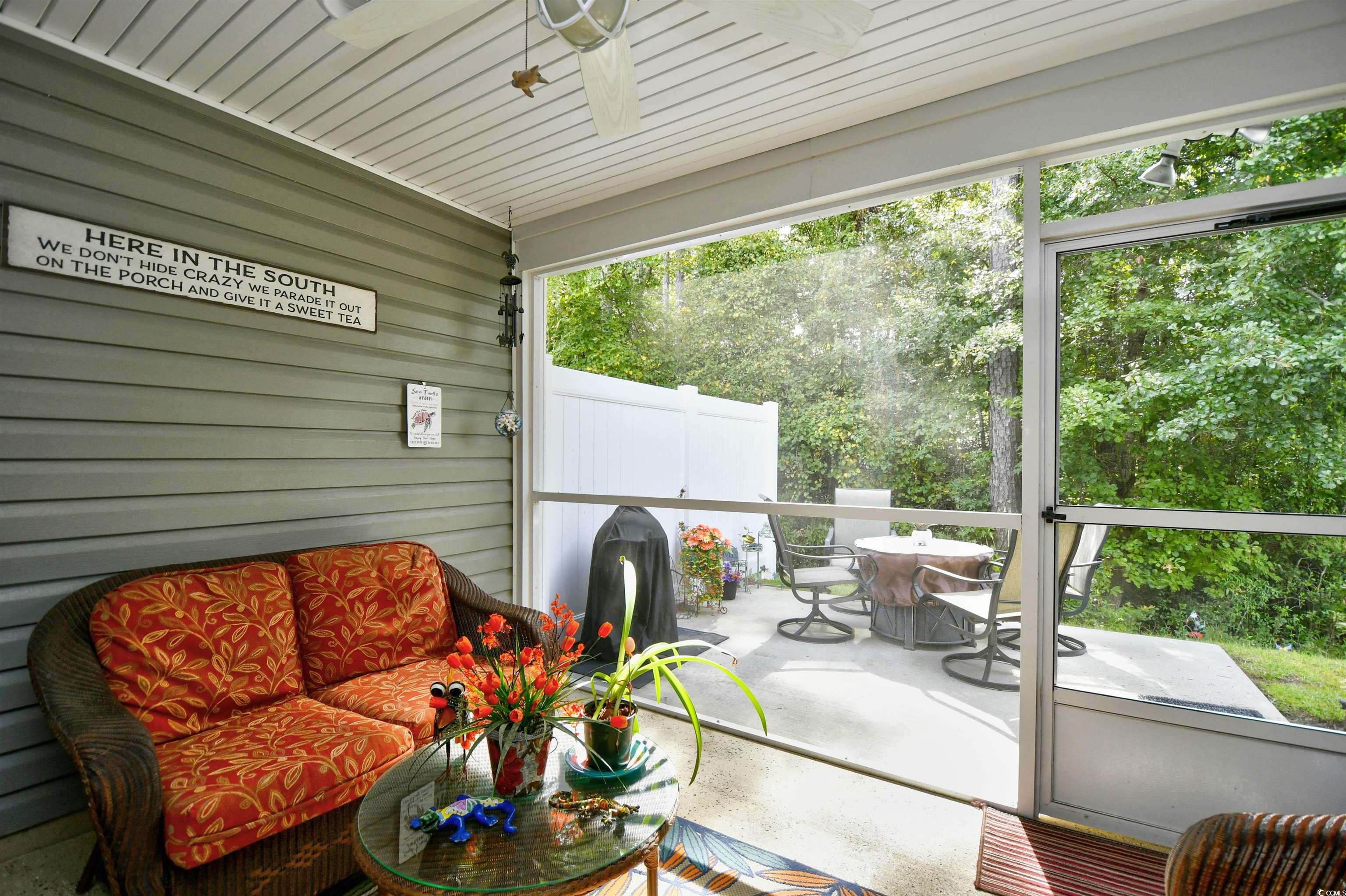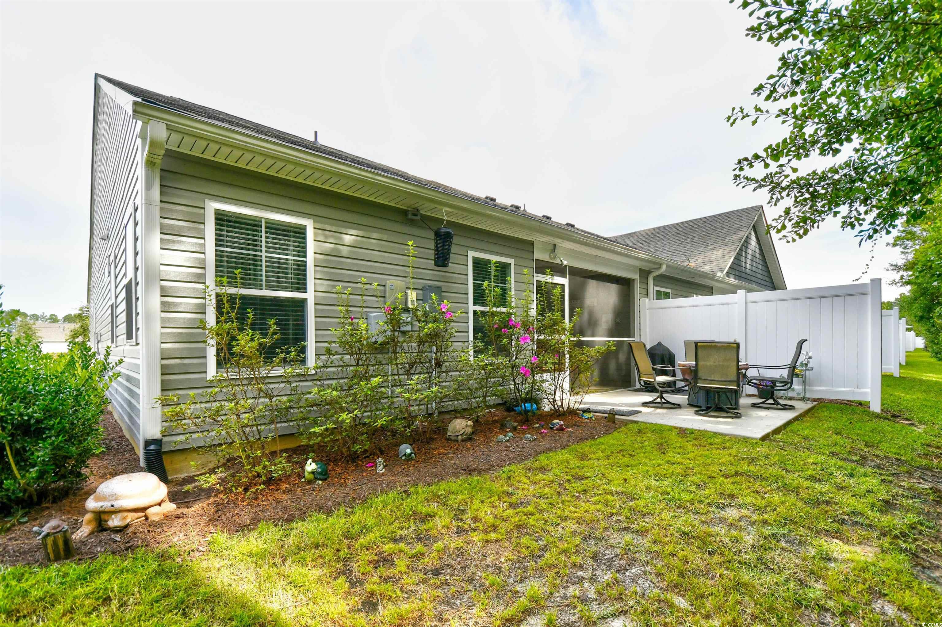 If you are looking for a maintenance free Lifestyle; Palm Lakes Garden is just for you. Located in a very quiet community and only 10 minutes to the Beach and only 5 minutes to the North Myrtle Beach Sports Complex. This "Santee" model is an end unit with 3 Bedrooms, 2 Bath, Attic storage over the 2 Car Garage. Inside the home contains tons of upgrades. LVP Flooring Throughout, Granite Countertops, Gray Cabinets, Upgraded Lights in Kitchen, Ceiling Fans in every room including patio and garage, Leaf Filter, New Dishwasher and Dryer. Enjoy hanging out in the garage year-round with insulated door, pull down garage screen, epoxy floor in garage and rear patio. Enjoy living in a Gas Community. HOA covers Exterior Insurance, Lawn Care/Maintenance, Weekly Trash Pickup, Power Washing, Internet/Cable, Pest Control/Termite Bond, Gorgeous Pool, Club House and Fitness Room. Furniture is Negotiable. Come see this beautiful home today!