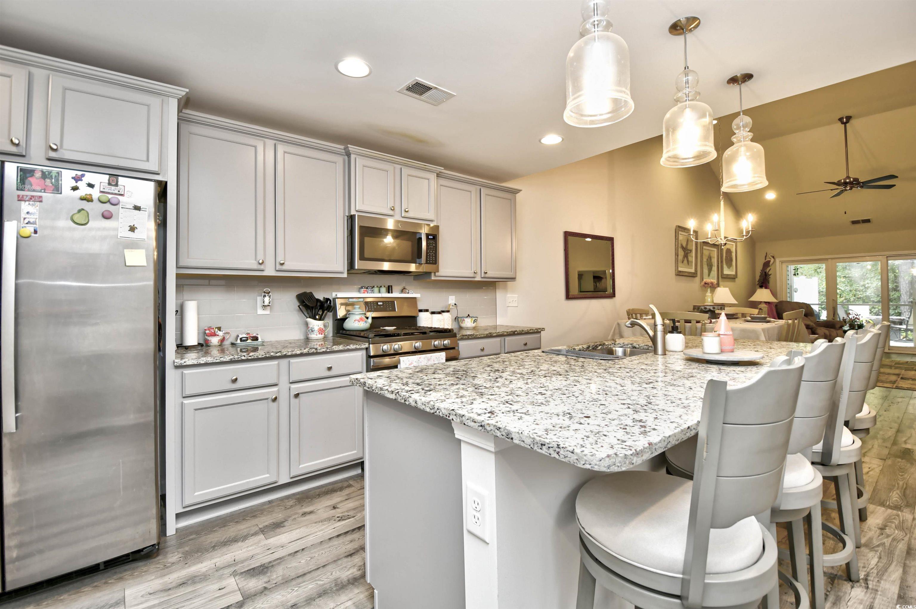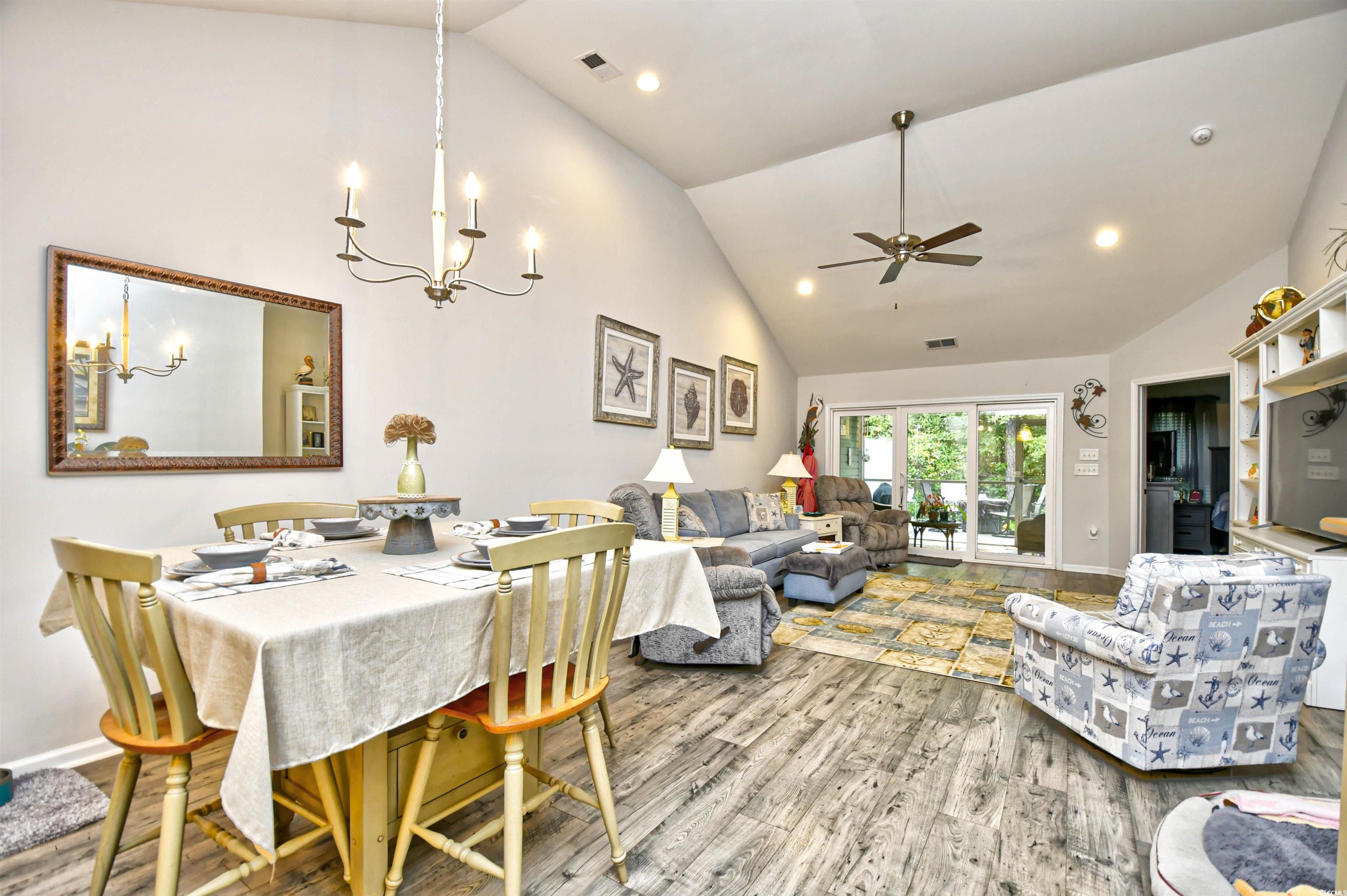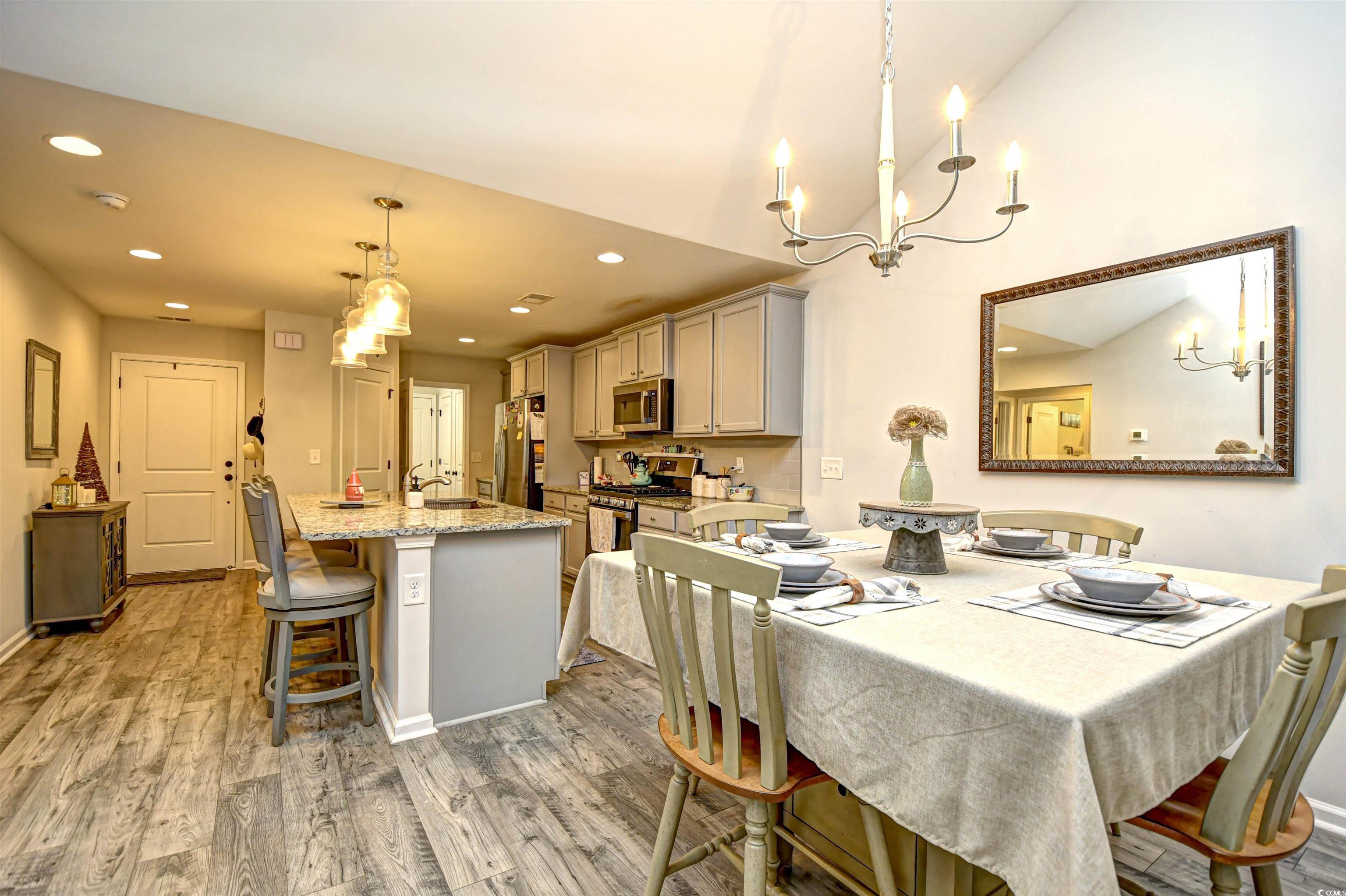If you are looking for a maintenance free Lifestyle; Palm Lakes Garden is just for you. Located in a very quiet community and only 10 minutes to the Beach and only 5 minutes to the North Myrtle Beach Sports Complex. This "Santee" model is an end unit with 3 Bedrooms, 2 Bath, Attic storage over the 2 Car Garage. Inside the home contains tons of upgrades. LVP Flooring Throughout, Granite Countertops, Gray Cabinets, Upgraded Lights in Kitchen, Ceiling Fans in every room including patio and garage, Leaf Filter, New Dishwasher and Dryer. Enjoy hanging out in the garage year-round with insulated door, pull down garage screen, epoxy floor in garage and rear patio. Enjoy living in a Gas Community. HOA covers Exterior Insurance, Lawn Care/Maintenance, Weekly Trash Pickup, Power Washing, Internet/Cable, Pest Control/Termite Bond, Gorgeous Pool, Club House and Fitness Room. Furniture is Negotiable. Come see this beautiful home today!