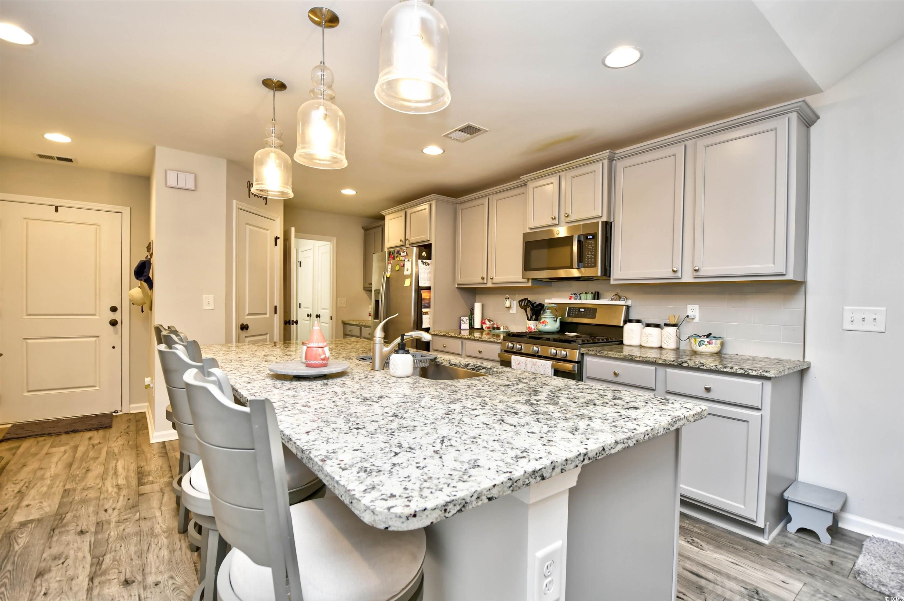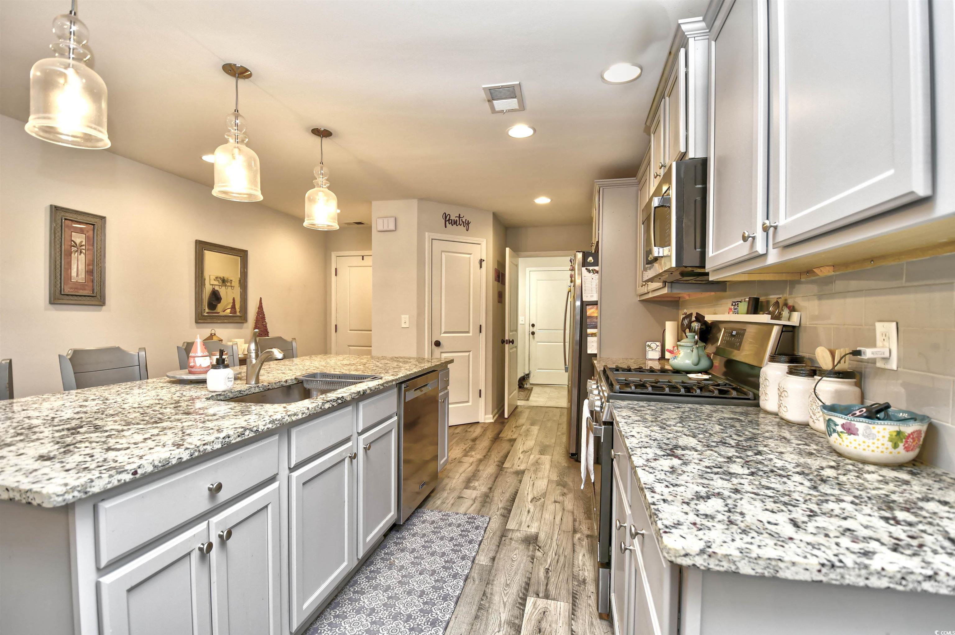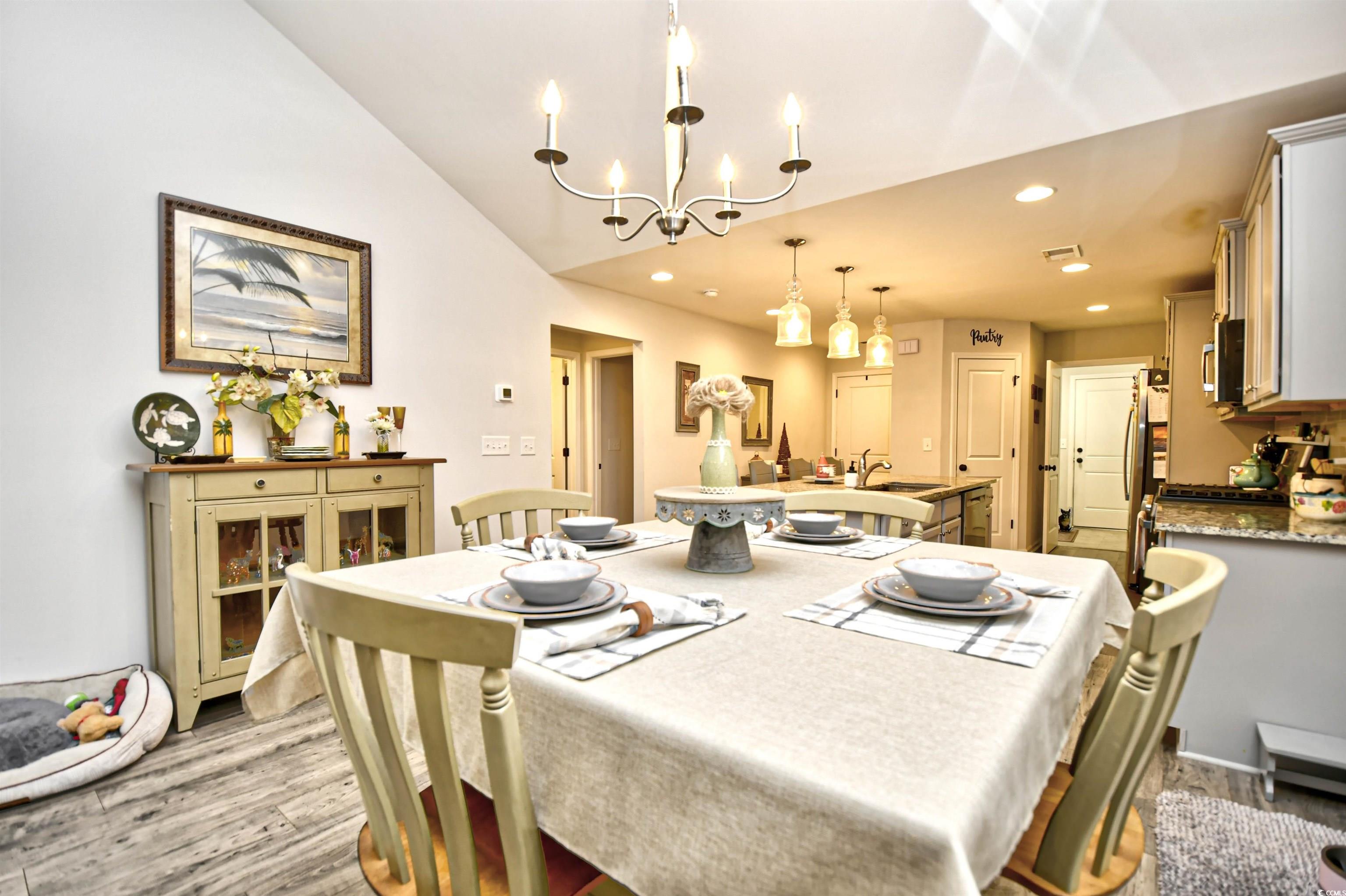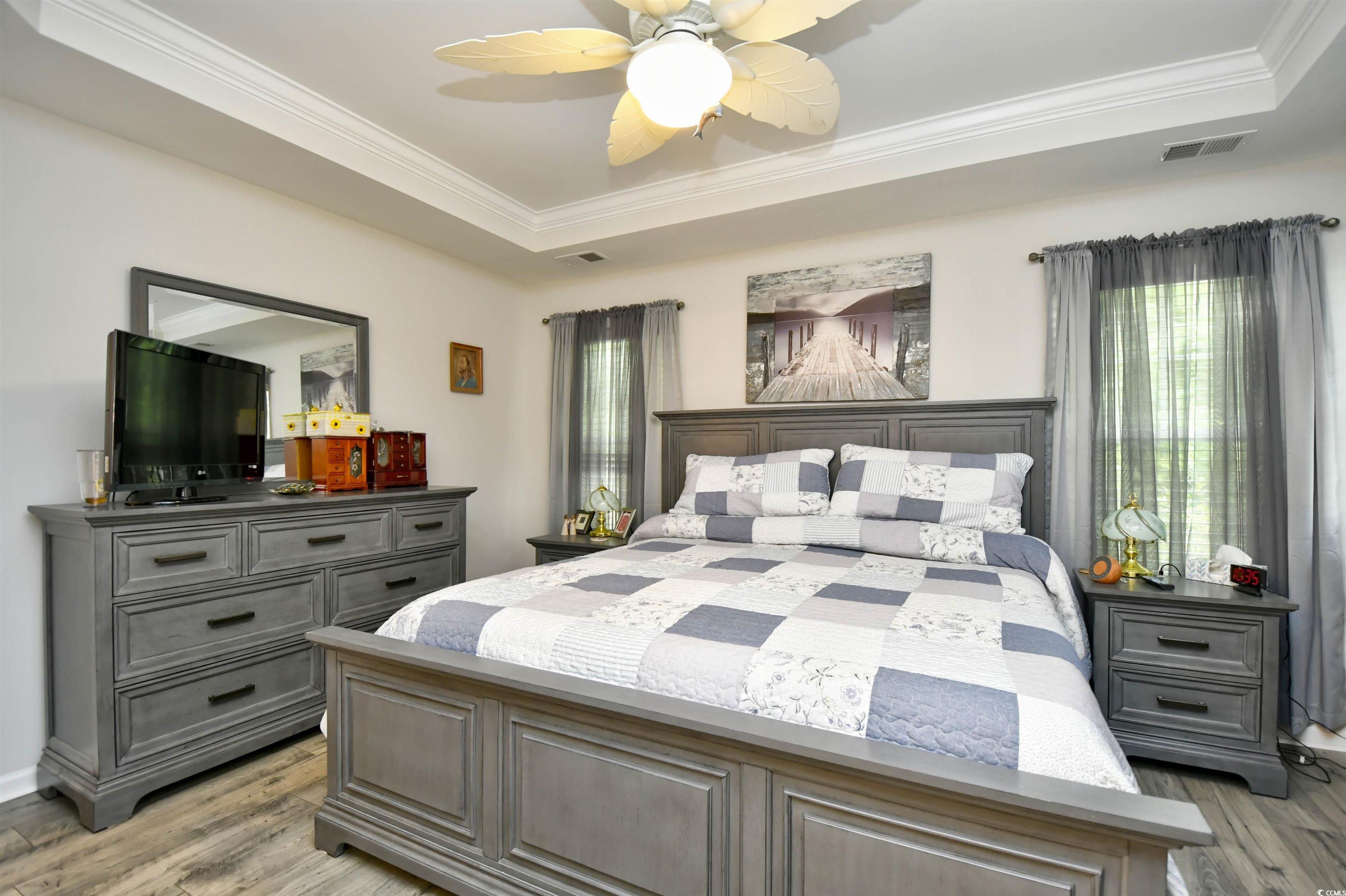 If you are looking for a maintenance free Lifestyle; Palm Lakes Garden is just for you. Located in a very quiet community and only 10 minutes to the Beach and only 5 minutes to the North Myrtle Beach Sports Complex. This "Santee" model is an end unit with 3 Bedrooms, 2 Bath, Attic storage over the 2 Car Garage. Inside the home contains tons of upgrades. LVP Flooring Throughout, Granite Countertops, Gray Cabinets, Upgraded Lights in Kitchen, Ceiling Fans in every room including patio and garage, Leaf Filter, New Dishwasher and Dryer. Enjoy hanging out in the garage year-round with insulated door, pull down garage screen, epoxy floor in garage and rear patio. Enjoy living in a Gas Community. HOA covers Exterior Insurance, Lawn Care/Maintenance, Weekly Trash Pickup, Power Washing, Internet/Cable, Pest Control/Termite Bond, Gorgeous Pool, Club House and Fitness Room. Furniture is Negotiable. Come see this beautiful home today!