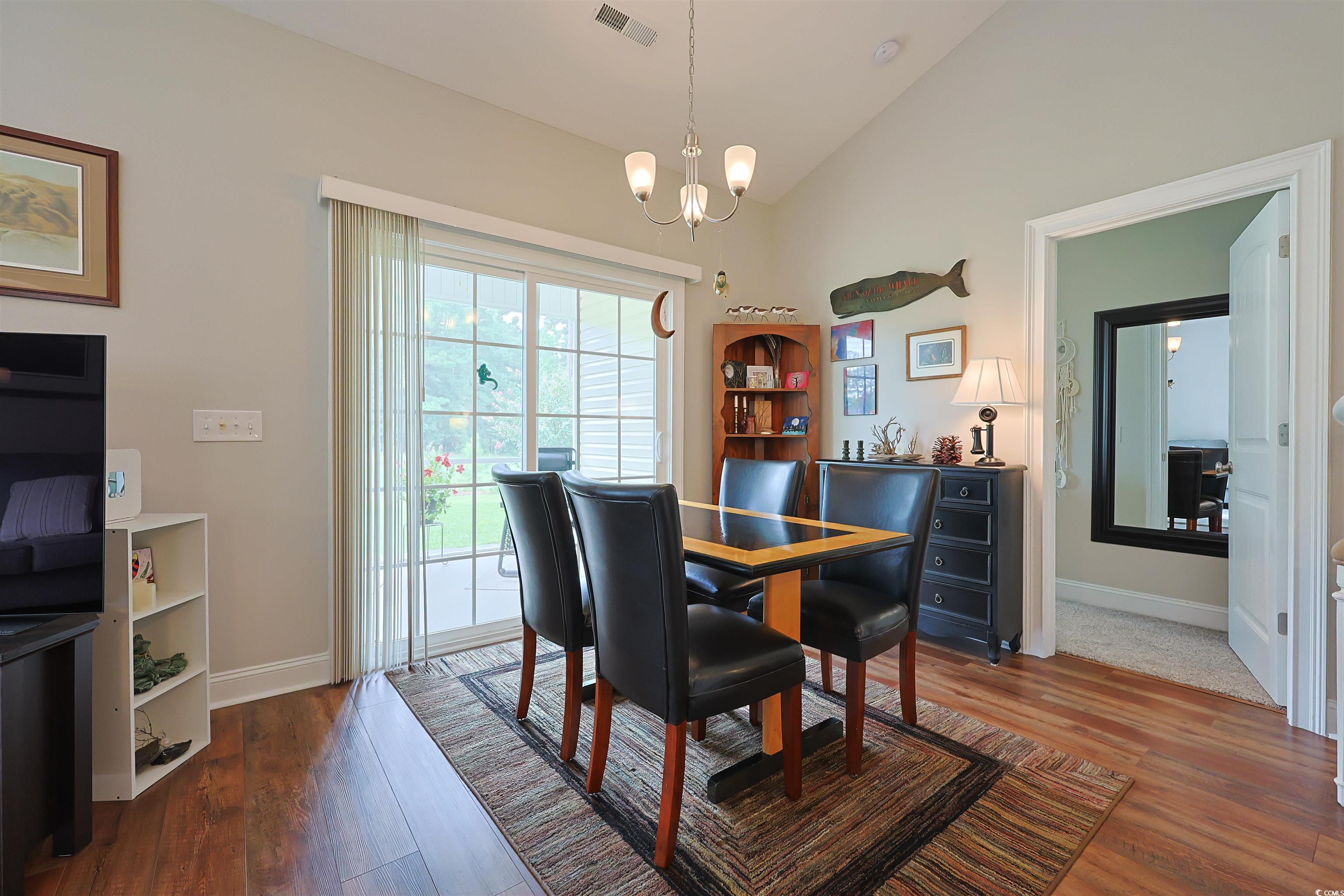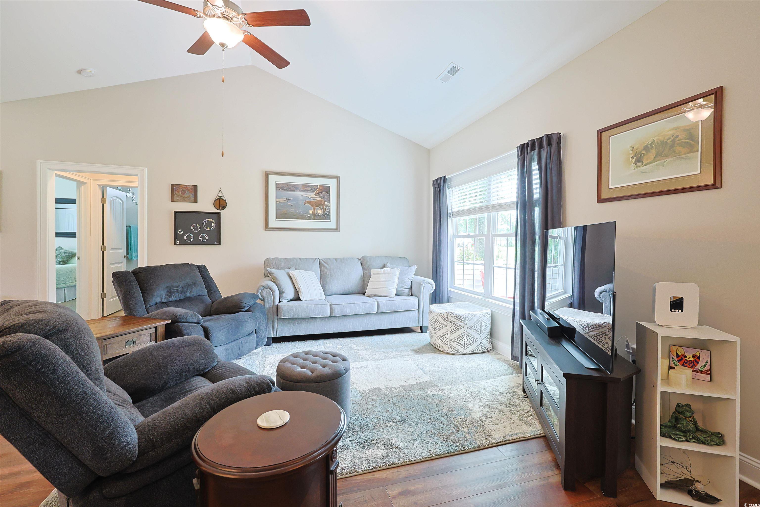 Immaculate 3BR/2BA home located on a quiet cul-de-sac in the desirable Woodland Valley golf course community. Built in 2021, this one-level home offers an open floor plan with vaulted ceilings, abundant natural light, and neutral finishes throughout. The spacious kitchen features ample cabinetry, a breakfast bar, and direct views into the living and dining areas—perfect for entertaining. The primary suite includes a large walk-in closet and en-suite bath. Additional bedrooms are generously sized, and a flexible front room is perfect as a formal dining area or home office. Enjoy outdoor living on the covered screened porch overlooking the 12th tee box of Diamondback Golf Course, or relax on the patio in the fully irrigated yard. The oversized 2-car garage offers attic storage and a keypad entry. Community allows golf cart use with approval. Conveniently located near Loris and just a short drive to North Myrtle Beach, shopping, dining, and coastal attractions.