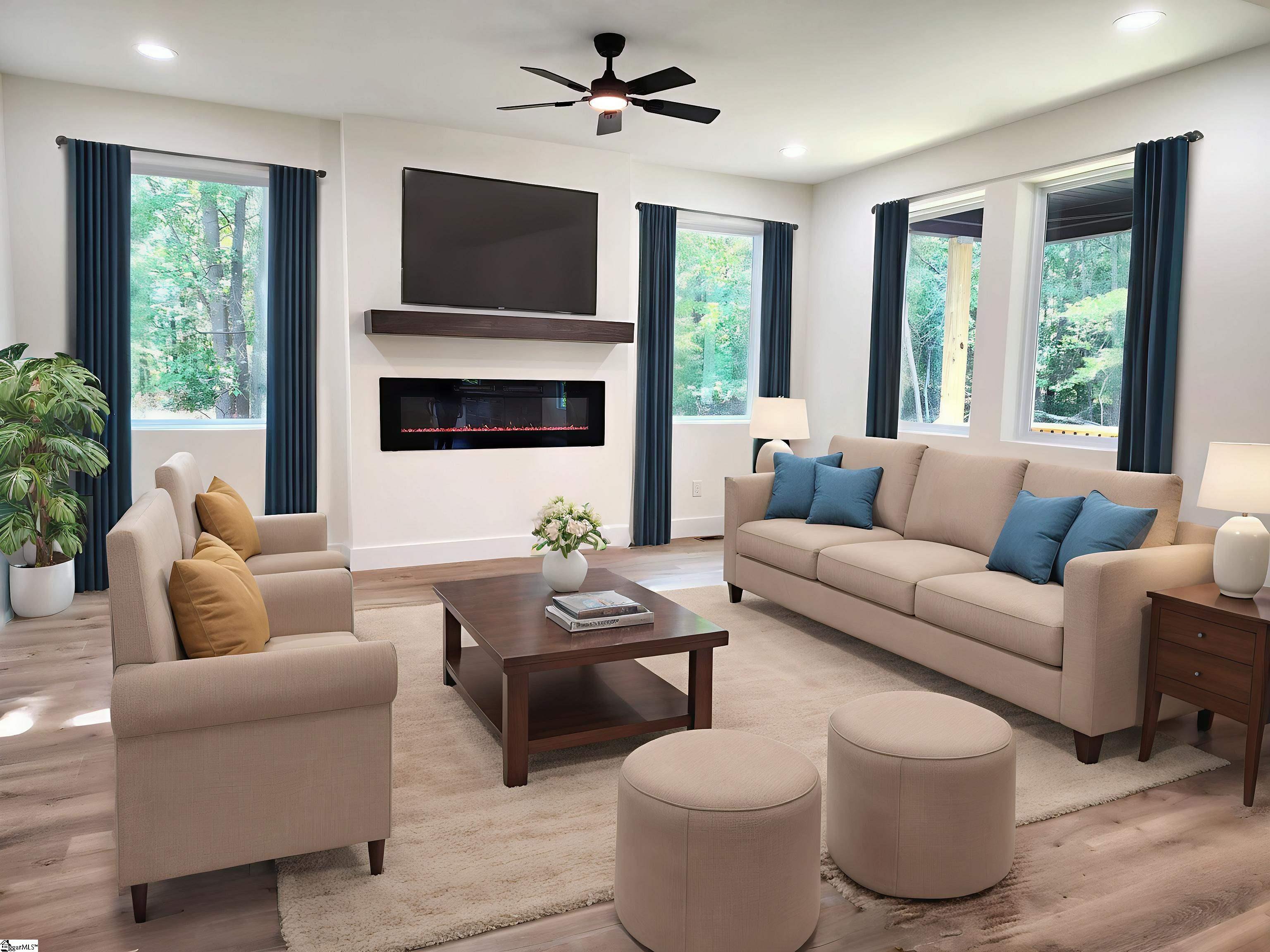 This is a charming custom-built home situated in a community with NO HOAs! A fully fenced backyard ready for your kids, pets and personal enjoyment in privacy. Walk into the cozy living room with and a zero-maintenance electric fireplace. The open kitchen includes beautiful white shaker cabinets with a grey island, white quartz counter tops, and stainless-steel appliances. The versatile dining room gives easy access to a rear covered deck that everyone can enjoy rain or shine. An office/flex room is conveniently placed on the main level. Upstairs you will find 3 bedrooms plus a rec/bonus room, and 2 full baths. The primary suite consists of a his and hers closet, a sizable master bath which includes double vanities, walk-in shower, and modern matte black fixtures. Full front and backyard irrigation system and sod in the front yard. The spacious level backyard has plenty of space for the whole family to enjoy. Minutes from I-85, restaurants, shopping centers, parks, and lake! Spend less time in traffic and more time enjoying your home with this conveniently located property.