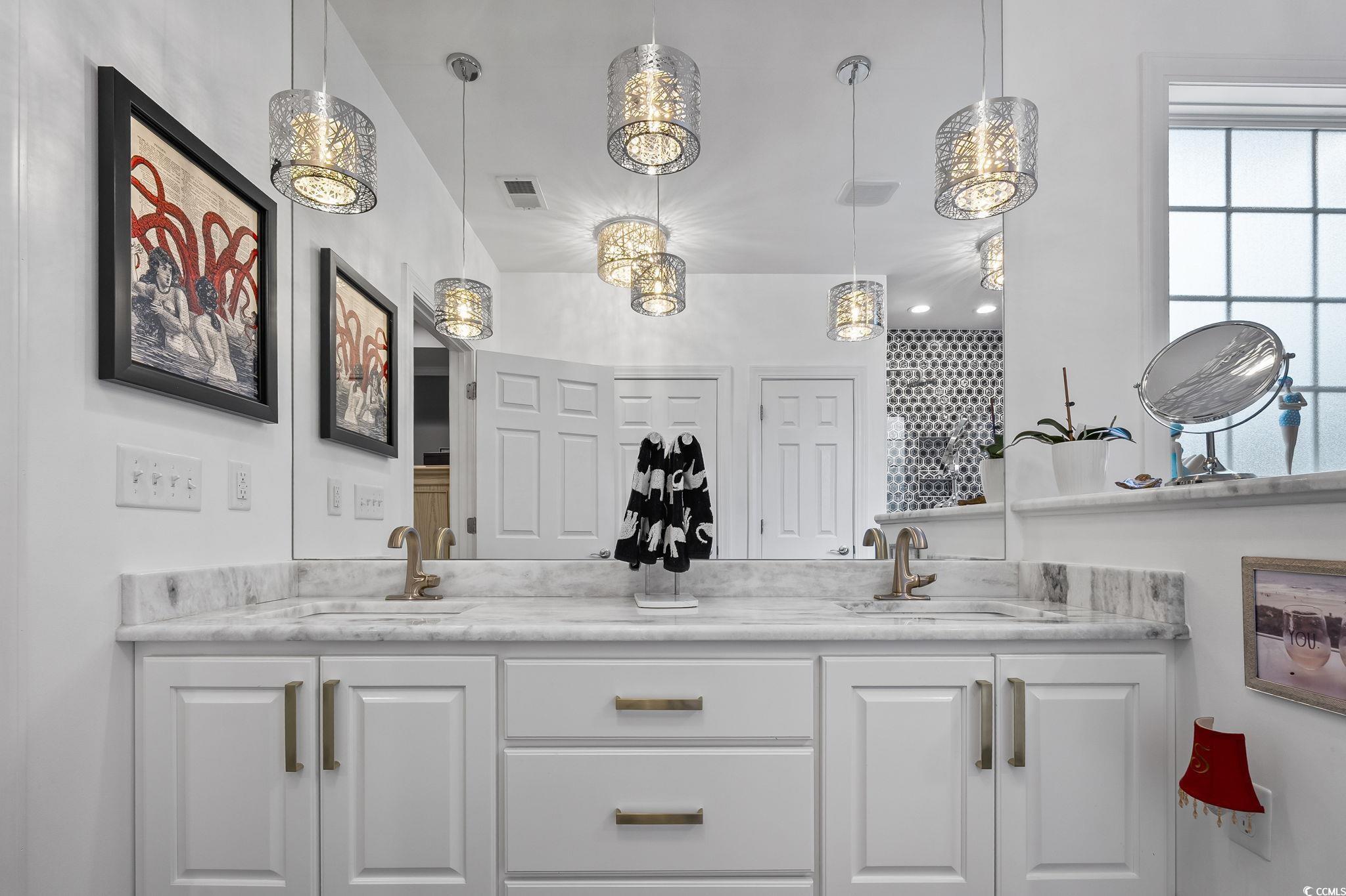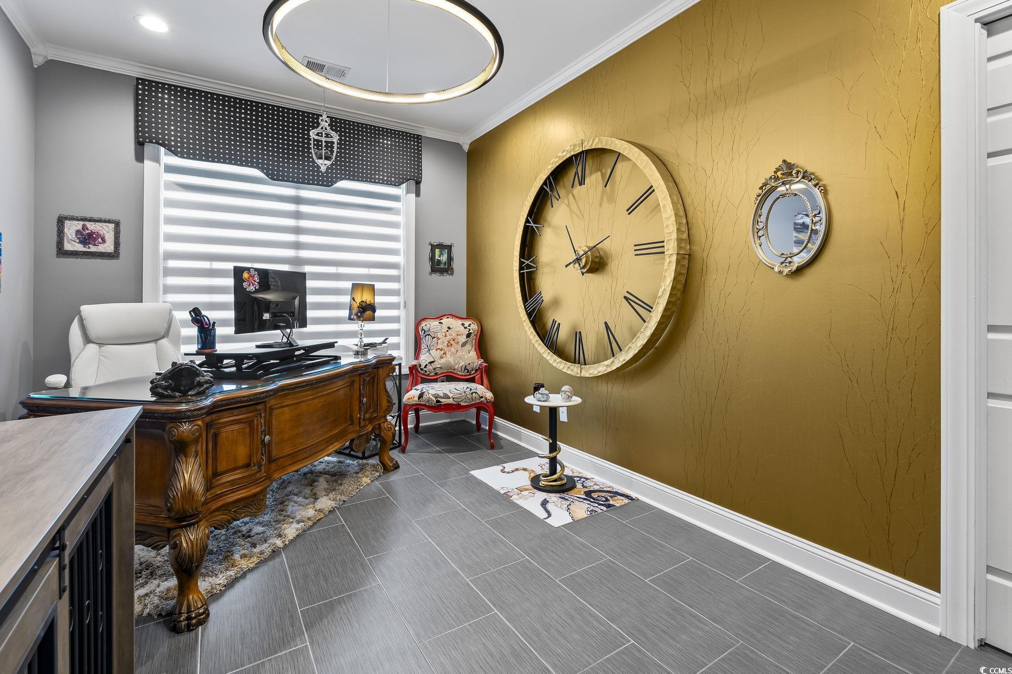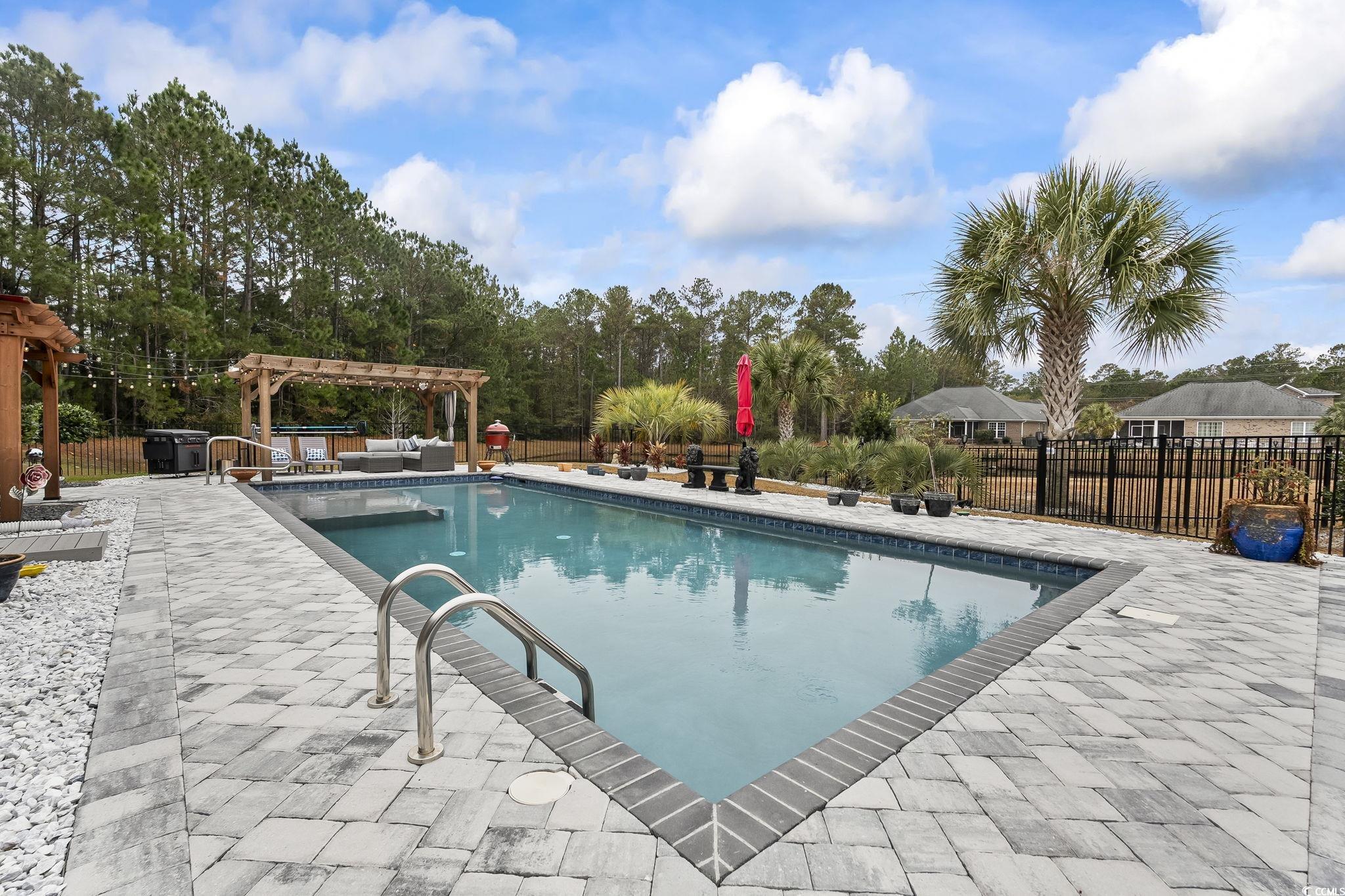 Welcome to a home where luxury, design, and Lowcountry living blend effortlessly. Situated on a beautifully manicured, hardscape-trimmed lot overlooking a tranquil pond, this residence offers elegance both inside and out. Step through the front door into an open layout, anchored by a stunning marble-tile fireplace that creates a warm, contemporary focal point. The chef's kitchen is a true showcase, featuring a dramatic waterfall island, a stainless-steel hammered farm sink, premium LG stainless appliances, and an imported Italian tile backsplash that elevates the entire space. The primary suite is a peaceful retreat with a spa-inspired bathroom complete with custom tilework, a soaking tub, double vanities, and a glass-enclosed shower. The walk-in closet impresses with a unique rotating clothing rack that offers both convenience and exceptional storage. Flexible additional rooms provide space for a guest suite, office, den, and a dedicated theater room. The Carolina Room, enclosed with EZ Breeze panels, is designed for year-round comfort and features an automatic shade closure system on the sliders, perfect for enjoying the outdoors no matter the season. Step outside to your private, fenced backyard resort, complete with a new, 16x40 saltwater glowing in-ground pool, a custom outdoor shower, a pair of wood-beam pergolas wrapped in outdoor string lighting, a fully equipped outdoor kitchen, and a cozy fire pit for evening relaxation. Carefully landscaped garden beds, trimmed with stone hardscaping and outdoor lighting, all backing to a private area and a large pond, which creates a polished, inviting ambiance. Additional upgrades include a Rinnai tankless water heater, an ADT security system, Google Home cameras, custom window treatments throughout, and hurricane-rated windows. Every detail has been thoughtfully curated to provide indoor elegance, outdoor luxury, and amenities that enhance everyday living. Come take a look at your new home.