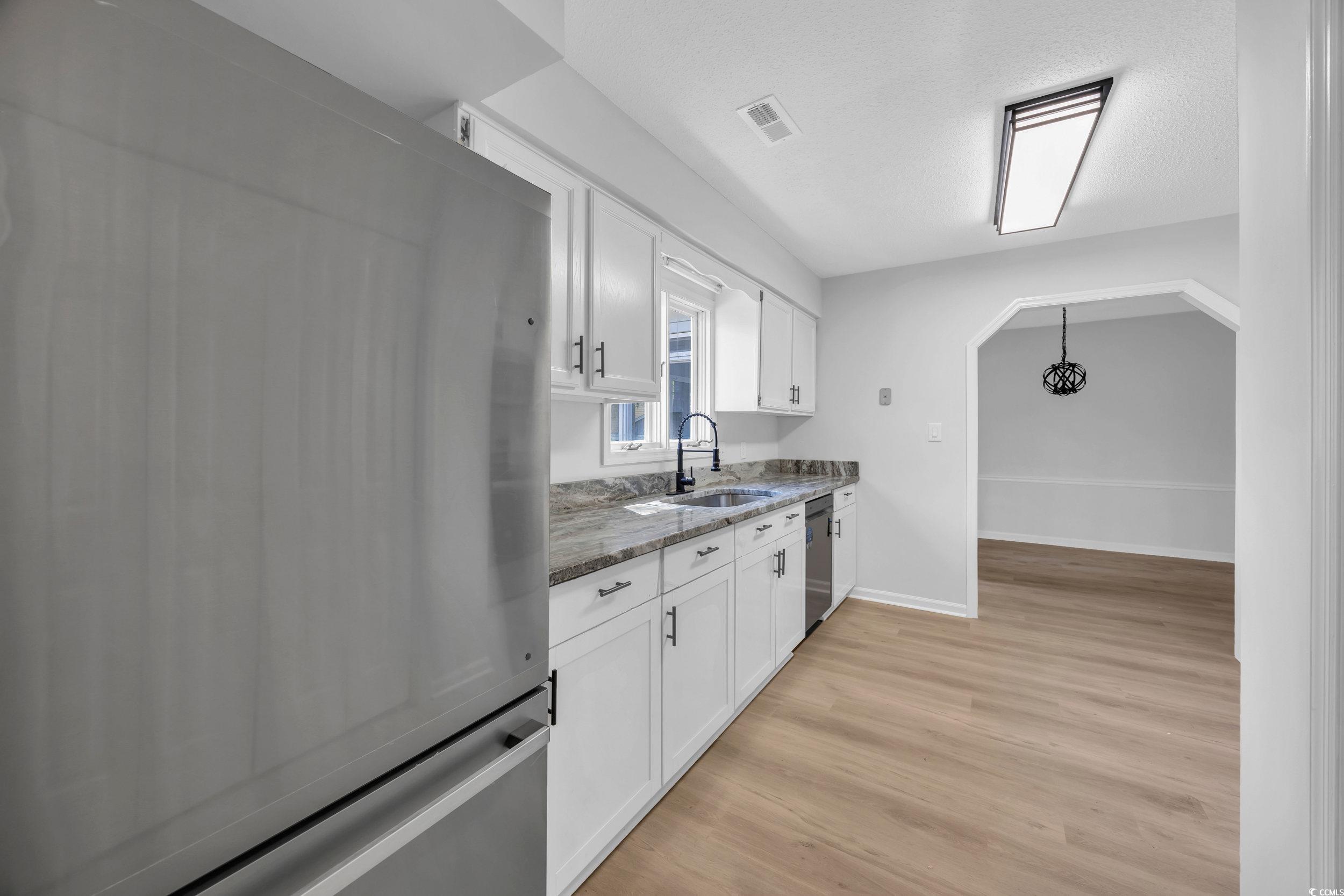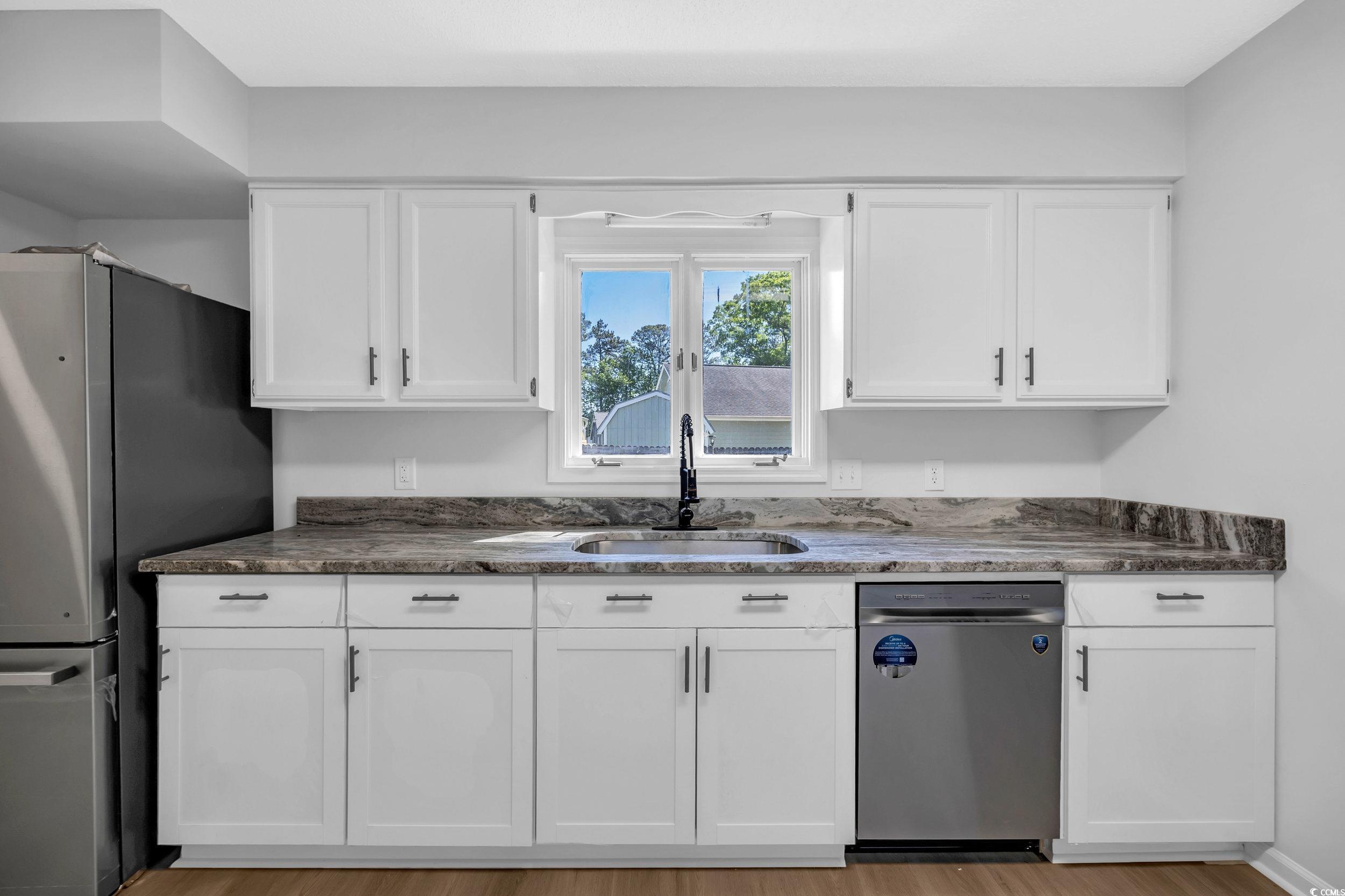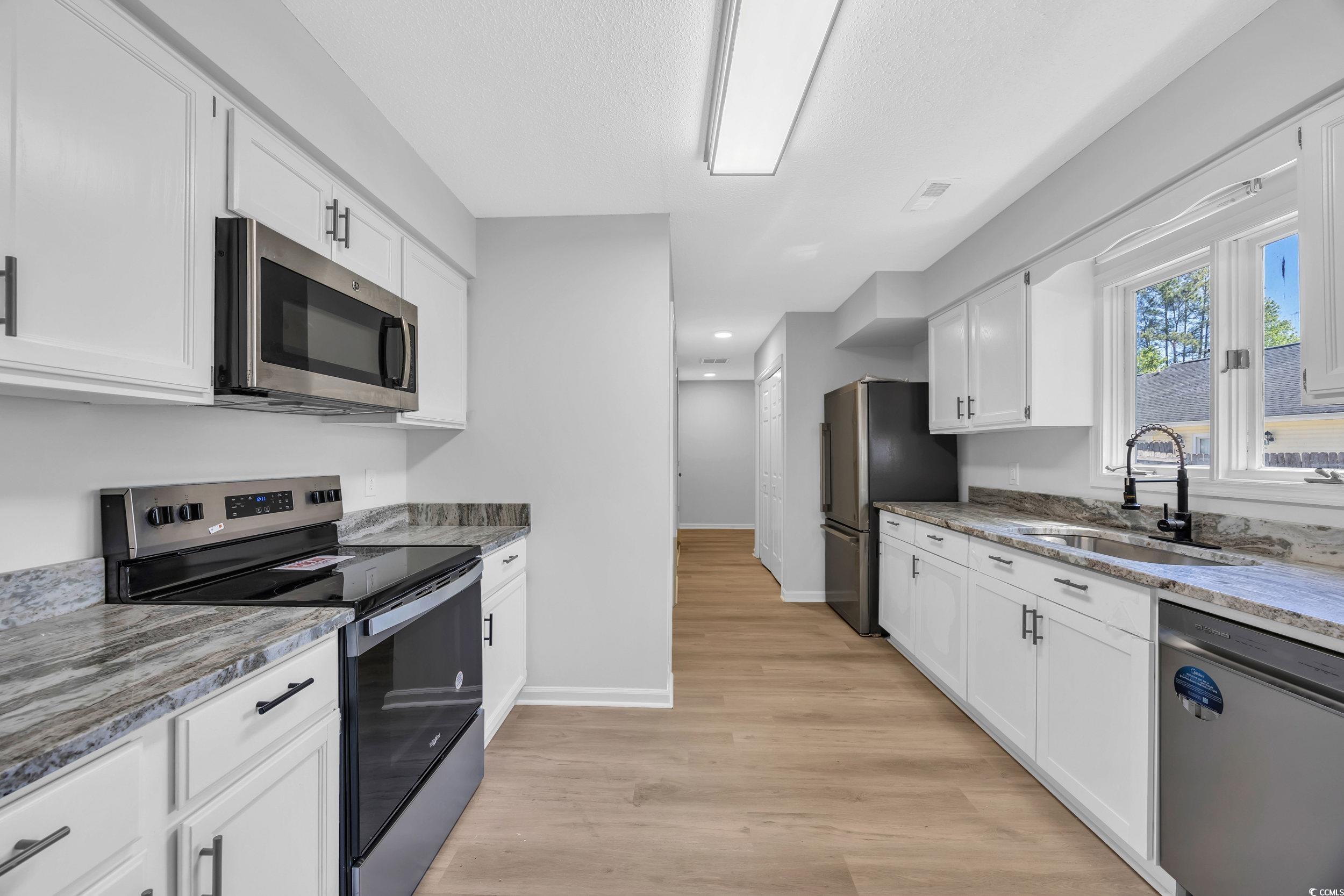 Welcome to this beautifully renovated home located just off Hwy 544 near Surfside Beach in a quiet neighborhood with low HOA fees. This spacious property features 4 bedrooms, 2 bathrooms, and an extra living room—perfect for entertaining or creating a cozy family retreat. Step inside to find brand new luxury vinyl plank (LVP) flooring throughout, updated light fixtures, stylish new mirrors, and beautifully remodeled bathrooms with modern vanities. The upstairs fourth bedroom includes plush new carpet for added comfort. The kitchen is a chef’s dream, showcasing new stainless steel appliances, luxurious granite countertops, and matching LVP flooring. Enjoy cozy evenings by the real brick fireplace in the expansive living space, or gather in the generous dining area. Outside, the home has been freshly painted and features new shutters, a new front door, and an inviting front porch. Relax on your spacious front porch or unwind in the screened-in back porch overlooking a fully fenced backyard—ideal for pets, play, or backyard barbecues. Don’t miss the chance to own this turn-key gem in a desirable location close to shopping, dining, and the beach. Schedule your showing today! SELLERS ARE LICENSED REAL ESTATE AGENTS!!