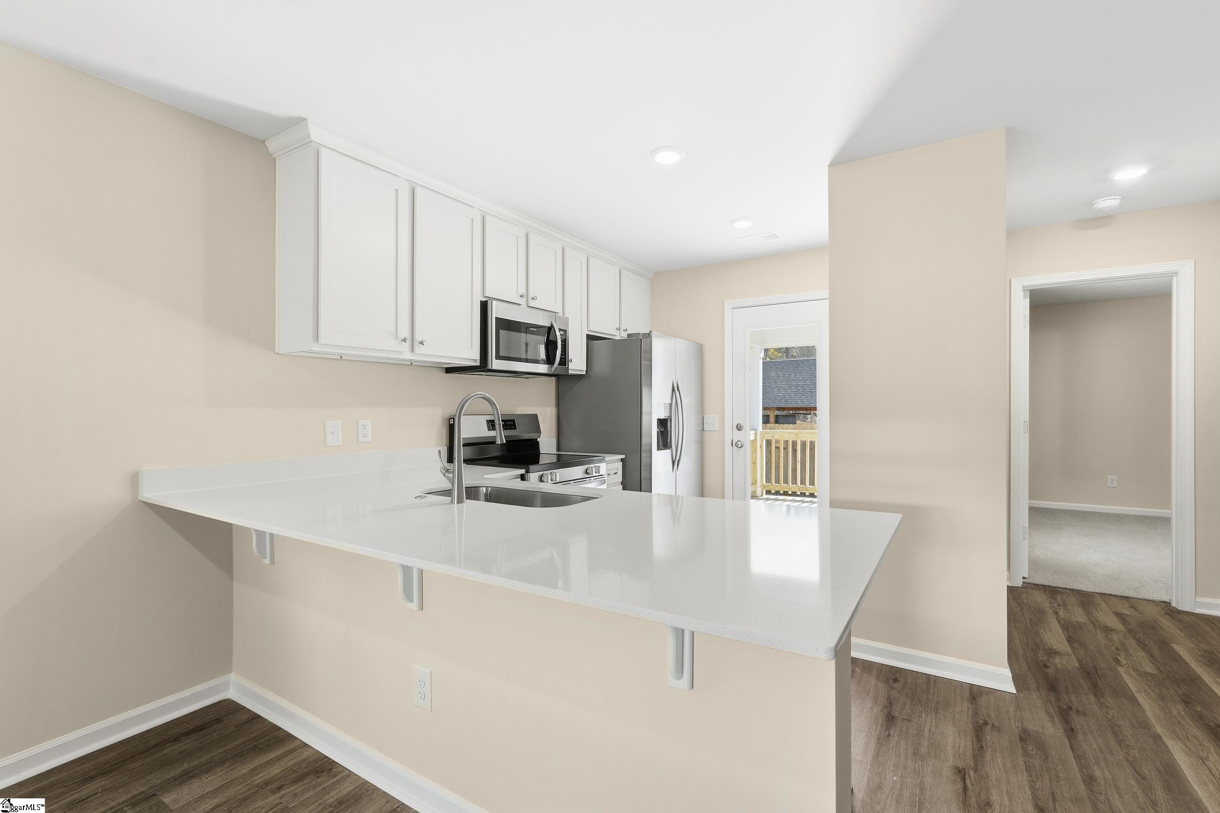 Step into the ease of brand-new living with this thoughtfully designed 3-bedroom, 2-bath home offering 1,158 square feet of stylish comfort. Perfectly blending functionality and modern finishes, this home features sleek quartz countertops, stainless steel appliances, and soft-close drawers that elevate the kitchen into a space you’ll love to cook and gather in. Enjoy morning coffee on the inviting front porch or unwind in the evenings on the covered back porch—ideal for entertaining or simply relaxing. Inside, the open layout provides flexibility for everyday living, whether you need space to host guests or create a dedicated home office. The primary suite offers a private retreat with a full en suite bath featuring a stand-up shower, while two additional well-sized bedrooms share a full hall bath. A convenient walk-in laundry room makes daily tasks effortless. Located just minutes from downtown Greenville, this home offers the rare opportunity to own new construction at an affordable price point—built to last and designed with today’s lifestyle in mind. Plus, enjoy added peace of mind with a builder’s warranty, along with assistance for closing costs and attractive packages.