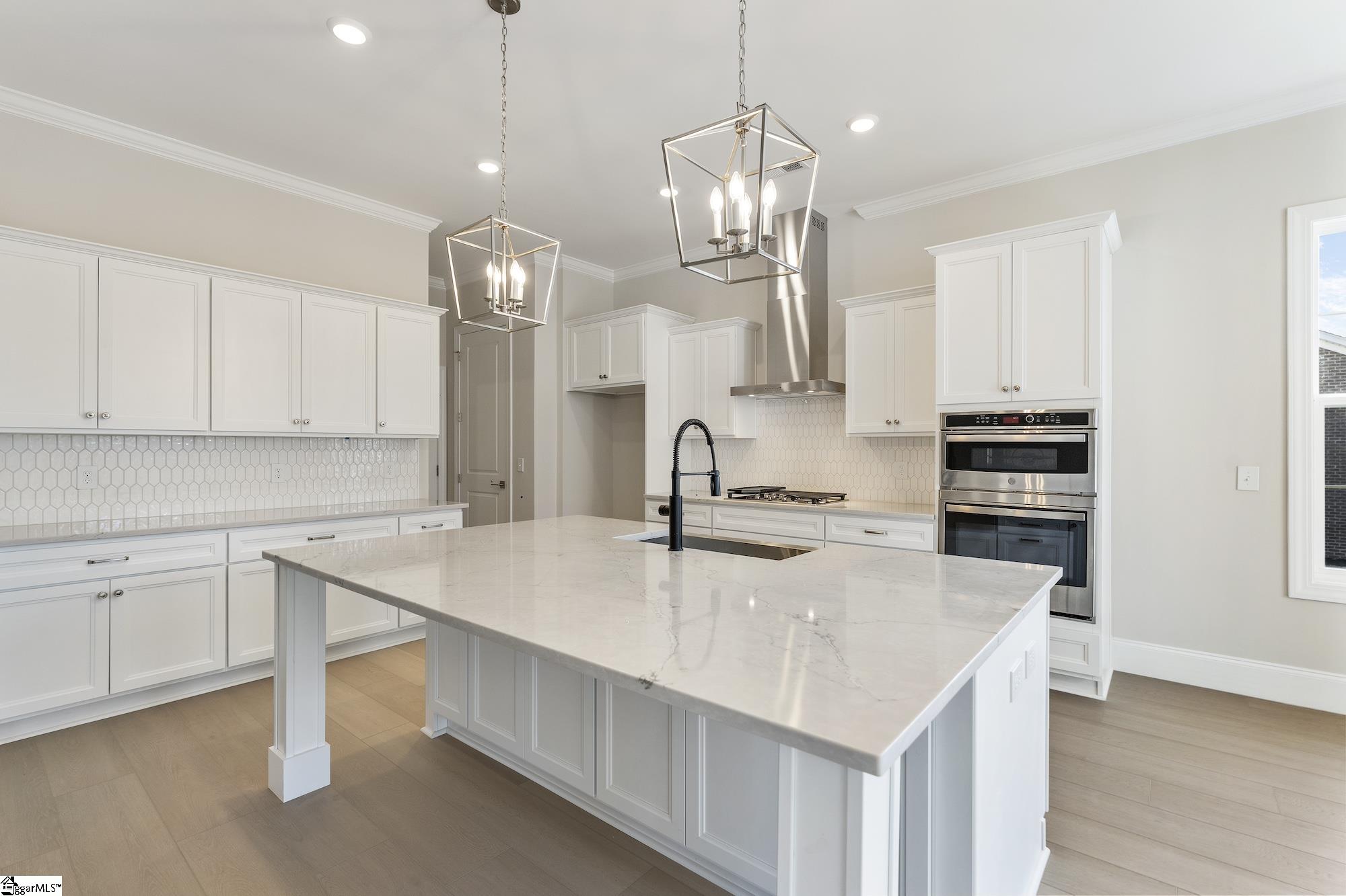 Welcome to 202 Chandler Court, a stunning showcase of refined craftsmanship and thoughtful luxury nestled in the heart of Easley’s Walnut Grove community. This stately home impresses from the start with its brick and stone-accented exterior, elegant board and batten siding, and side-entry garage. A full brick detached garage, black metal porch railings, and professionally designed landscaping with automatic irrigation add to the striking curb appeal. Inside, soaring 10-foot ceilings and wide-plank luxury vinyl floors lead you into an expansive open layout filled with natural light. The gourmet kitchen is a true centerpiece, featuring Charleston White cabinetry, quartz countertops, a stainless farmhouse sink, and a designer picket backsplash — seamlessly extending into a butler’s pantry and sunroom. The great room offers cozy elegance with a marble-surround fireplace, double crown molding, and smart wiring. The luxury primary suite features a frameless glass shower, garden tub, dual vanities, and quartz countertops. With five spacious bedrooms, including a private guest suite, four-and-a-half bathrooms, a bonus room, and flexible living spaces, this home is designed to grow with you