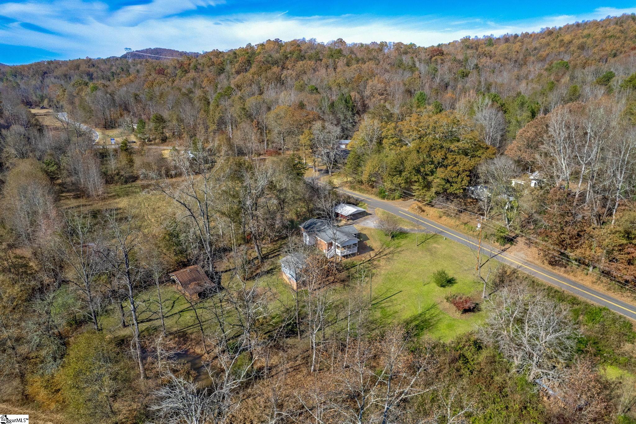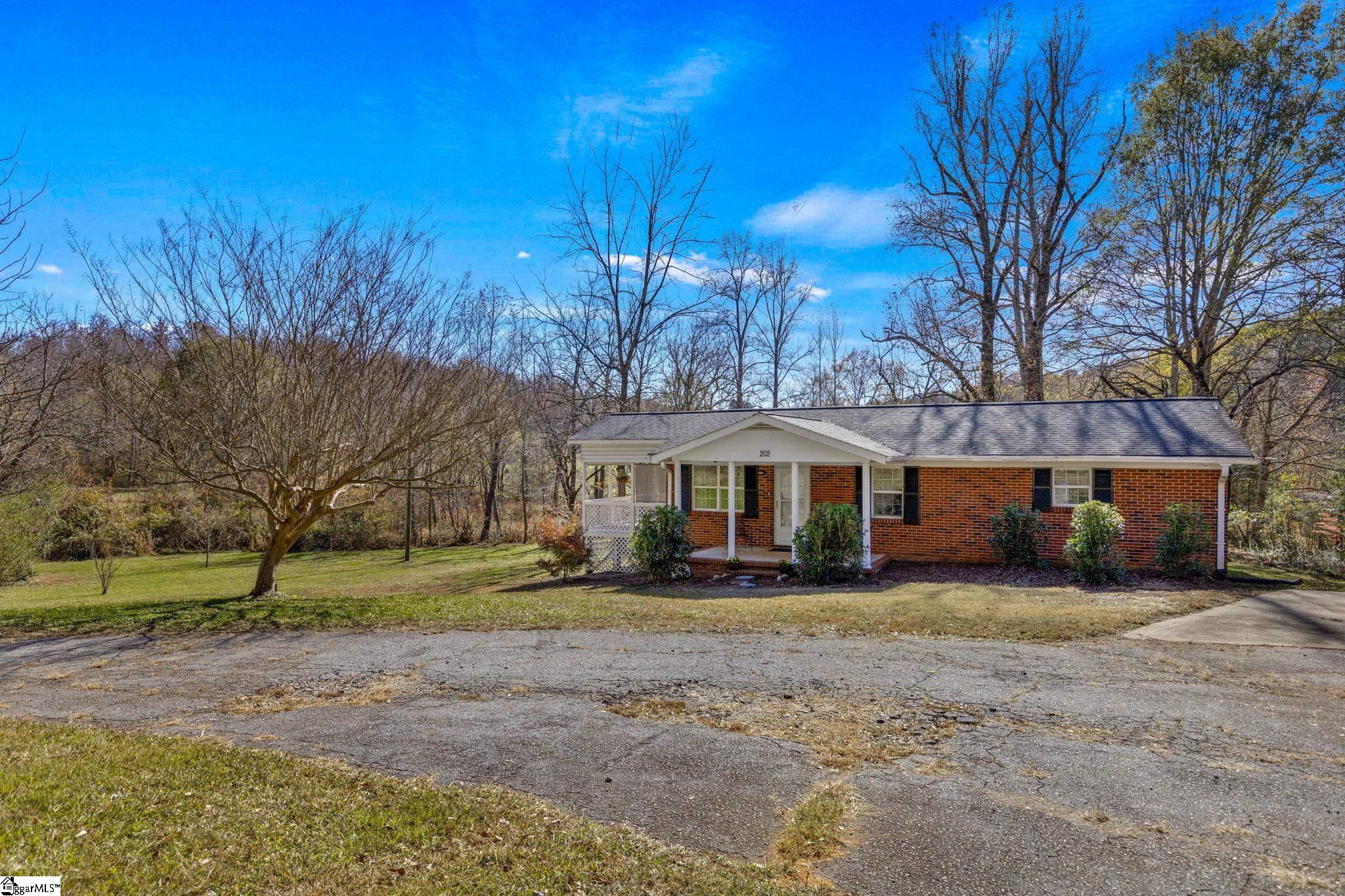 You've found it! Welcome to 202 Cove Creek Road in the lovely town of Pickens, South Carolina. A peaceful creek-front living on one full acre. If you've been searching for that sweet spot between country living & town convenience, this property deserves your attention. Sitting on a full acre of cleared, usable land just outside Pickens, this brick ranch offers something increasingly rare: genuine elbow room without the long commute. The location tells much of this story. You're rural enough to enjoy mature shade trees, seasonal blooms, & the gentle sound of Cove Creek running along your back property line—188 feet of creek frontage, to be exact. Yet downtown Pickens is less than 10 minutes away, putting schools, shopping & amenities within easy reach. It's the kind of balance that's hard to find. Inside the home - This three-bedroom, two-bath ranch keeps things straightforward & functional. The kitchen centers around sealed concrete countertops that add character & durability—a nice departure from standard options. All appliances stay with the home. You'll find a mix of original hardwood floors & life proof LVP throughout, along with smooth ceilings & upgraded vinyl windows that help with energy efficiency. The primary suite includes a private bathroom with a walk-in shower & here's where the layout gets clever: the laundry room connects directly to this bathroom. It's an unexpected convenience that eliminates hauling baskets through the house. Come fall in love with the outdoor spaces that inspire a true lifestyle! The covered side porch might become your favorite room. It's generous enough for a full seating area—picture your morning coffee or evening read with a view of the property. Screen it in if you prefer, or leave it open to catch the breeze. The real draw, though, is the land itself. The property allows small farm animals, so if you've been wanting chickens, goats, or similar, you're in business. There's a covered storage area near the creek that can be left open or be enclosed for a barn area. The two-story outbuilding has serious potential (storage, workshop, or even a future secondary dwelling unit with the right upgrades), & a detached carport for covered parking. This property works well for buyers seeking space to breathe, room for hobbies or animals & a connection to the outdoors—all without sacrificing access to town. Whether you're downsizing from something larger but not from land, looking for your first home with acreage, or simply wanting a peaceful setting that still keeps you connected, this one checks those boxes. The creek, the mature trees, the farm pasture views beyond the property line—they create a sense of permanence and calm that's worth experiencing in person. Come take a look, you won't want to leave!