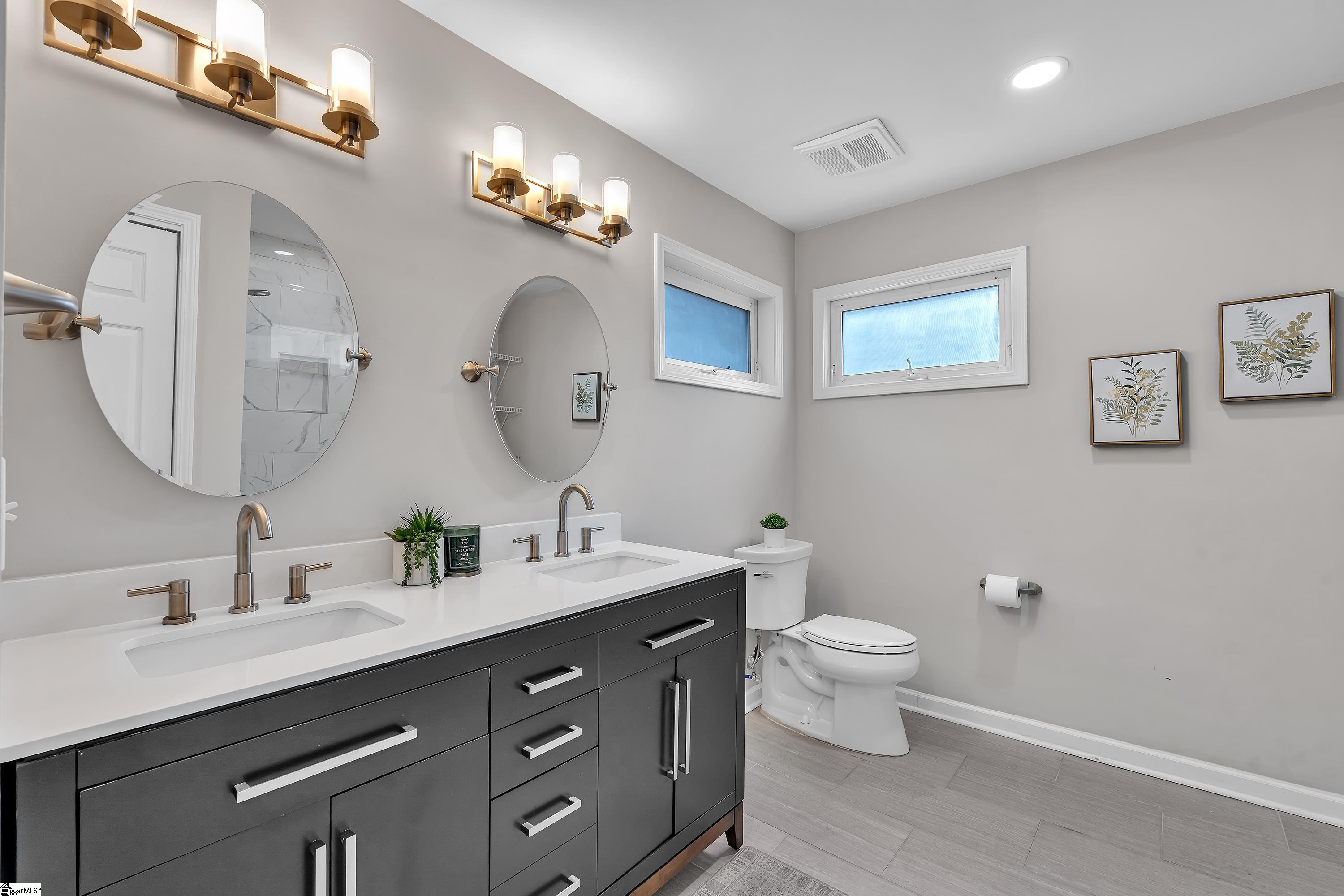 Welcome to life on Greenville’s sought-after Eastside, where convenience, connection, and community all come together in Wellington Green. Just 10 minutes to downtown Greenville and within easy reach of everything across the Upstate, this well-maintained 3-bedroom, 2-bath home with flex space out the waahhzzzoooo offers the perfect balance of accessibility and neighborhood charm. Here, evenings feel slower, neighbors wave as they pass, and golf carts aren’t just for the course, they’re part of the lifestyle. Less than a mile away, Carolina Golf at Botany Woods invites you out for a quick par-3 round, while nearby dining, shopping, and established neighborhoods make it easy to stay connected without ever venturing far. An 8-acre community green space provides room to spread out, recharge, and enjoy the outdoors. The optional WGRA pool, currently undergoing a full renovation, will soon be ready for summer afternoons. Inside, the home is designed for the way people truly live. Two generous living areas anchored by a striking double-sided fireplace create flexibility for entertaining, movie nights, quiet reading corners, or gathering with friends. The large deck extends your living space outdoors, overlooking a backyard with a cozy fire pit framed by a retaining wall, the perfect setting for cool evenings and casual get-togethers. The primary suite feels like a retreat, featuring a beautifully updated en-suite bath with modern finishes and generous proportions. Downstairs, the basement flex space adapts to your needs, home office, fitness studio, media room, creative space — you decide. A two-car garage adds practical storage, while the welcoming front porch captures stunning sunset views over the neighborhood that make unwinding at the end of the day feel effortless. With versatile spaces, thoughtful updates, and an Eastside location that encourages connection and outdoor living, this Wellington Green home delivers more than just square footage, it offers a lifestyle.