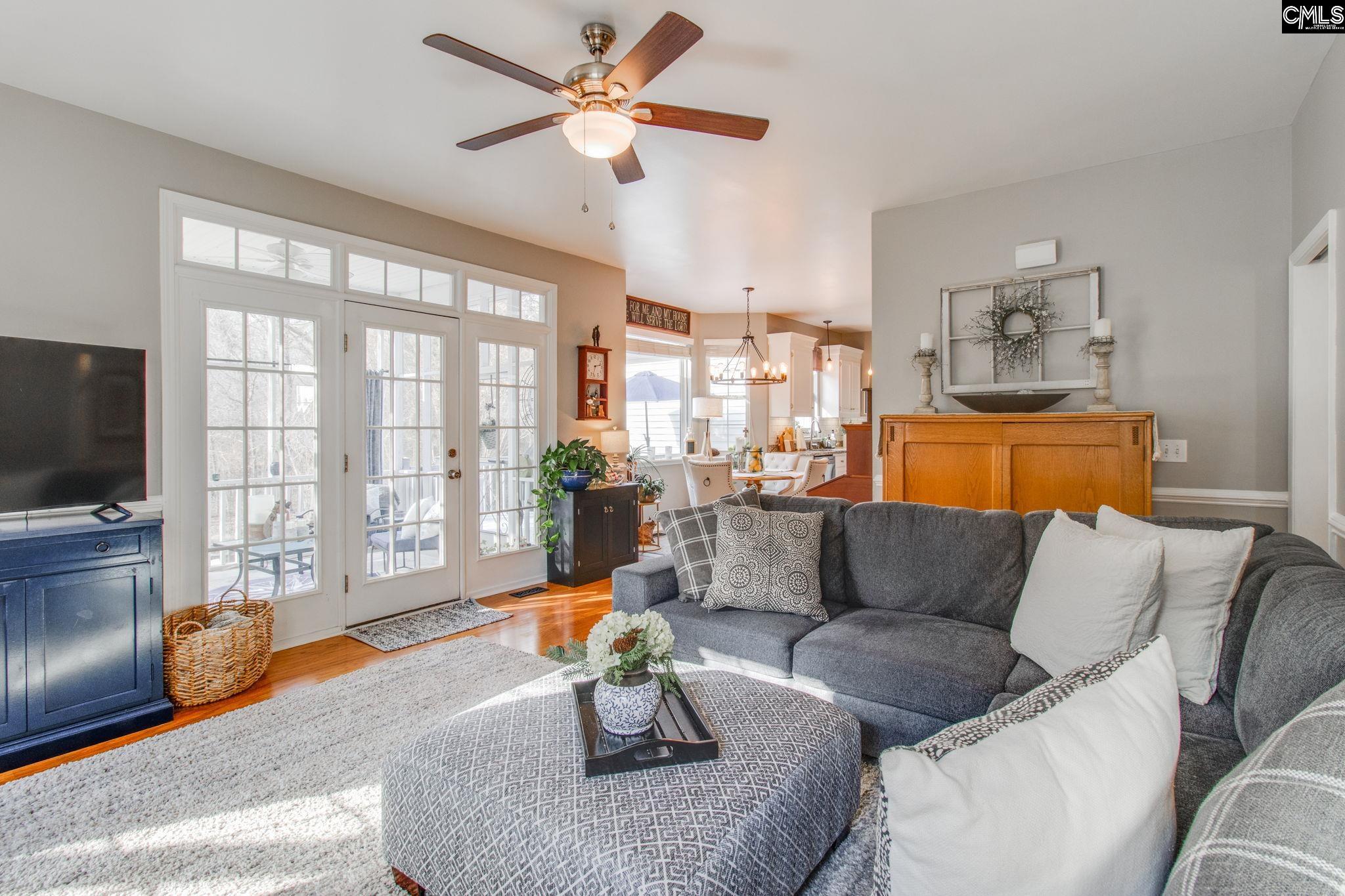 Step into timeless comfort in this thoughtfully updated, traditional home set on a spacious 0.73-acre lot in Irmo, designed for both everyday living and entertaining with a blend of classic charm and modern enhancements. The main level features hardwood floors, neutral paint, and an inviting layout, including a private office with pocket doors, chair rail, and crown molding, and a formal dining room with matching trim. The remodeled kitchen offers stainless steel appliances, top-of-the-line refrigerator (with a warranty through July 2026), tile backsplash, under-cabinet lighting, updated fixtures, and an eat-in area with a bay window overlooking the tranquil and private backyard. The living room features a gas fireplace and triple French doors that open to a large, screened porch with tall ceilings and a ceiling fan, creating seamless indoor-outdoor flow. Outdoor living continues with a 249 SF deck, expansive hardscaped patio with firepit, and fully fenced backyard, ideal for entertaining. A professionally installed French drain supports proper drainage and low-maintenance care. The primary suite is located on the main level includes double doors to the en suite with dual vanity, garden tub, separate shower, and walk-in closet. Upstairs are two additional bedrooms with double closets, ceiling fans and a shared bath. A finished bonus room over the garage with its own private stairwell provides flexible space for a media room, home gym, or guest retreat, and is adjacent to 258 SF of unfinished space with additional electrical outlets offering future potential for expanded heated space or an en suite. Additional features include an oversized two-car garage, gas water heater (with a new tankless gas unit to convey for buyer installation post-closing), main water service line replaced in 2025, full gutters, and extensive owner documentation. Zoned for Lexington/Richland School District Five award-winning schools, this home is located in the St. John’s Place community which offers a neighborhood pool and clubhouse. Enjoy a peaceful setting that feels like the country while remaining minutes from shopping, dining, and everyday conveniences. Disclaimer: CMLS has not r
