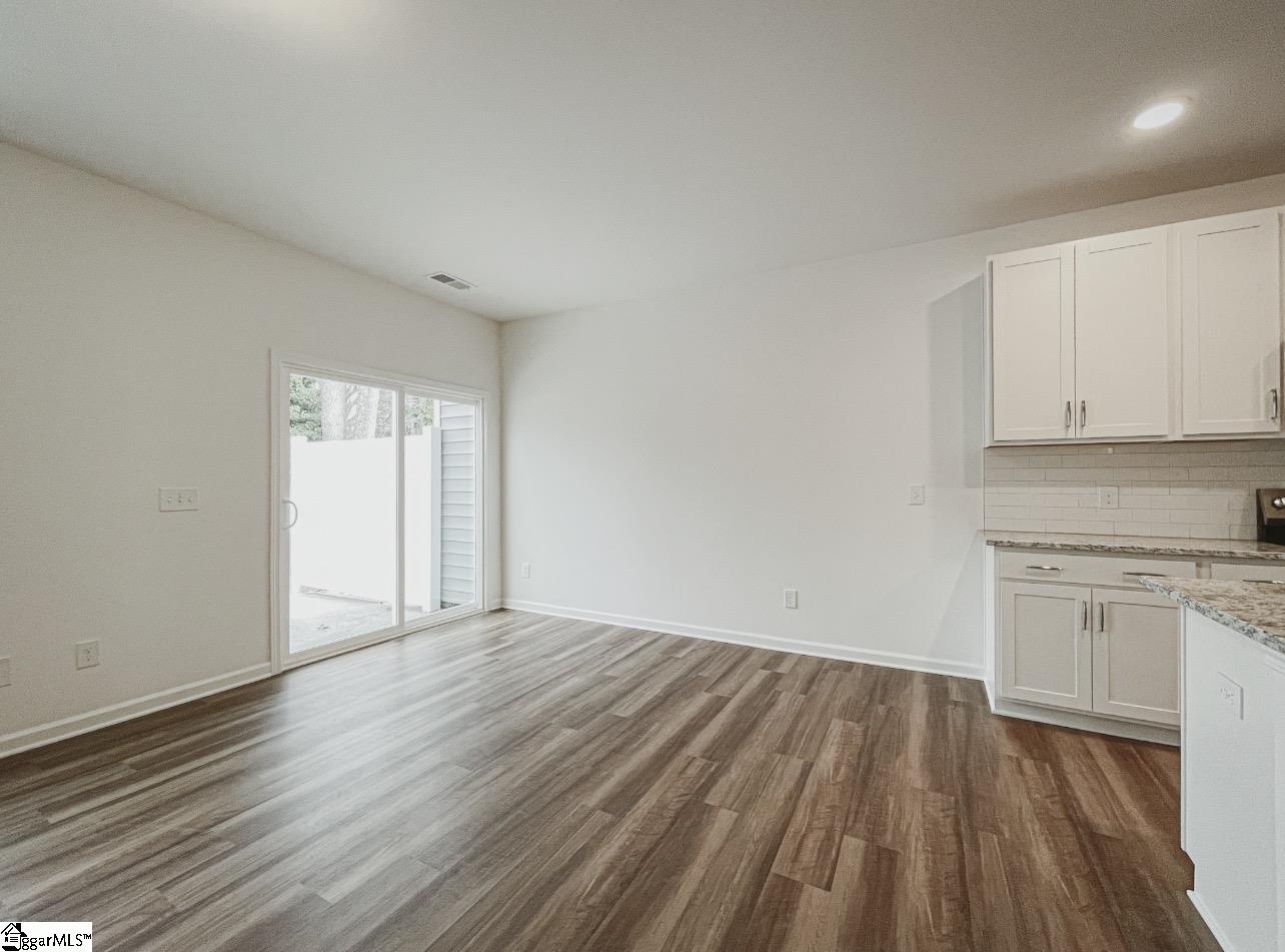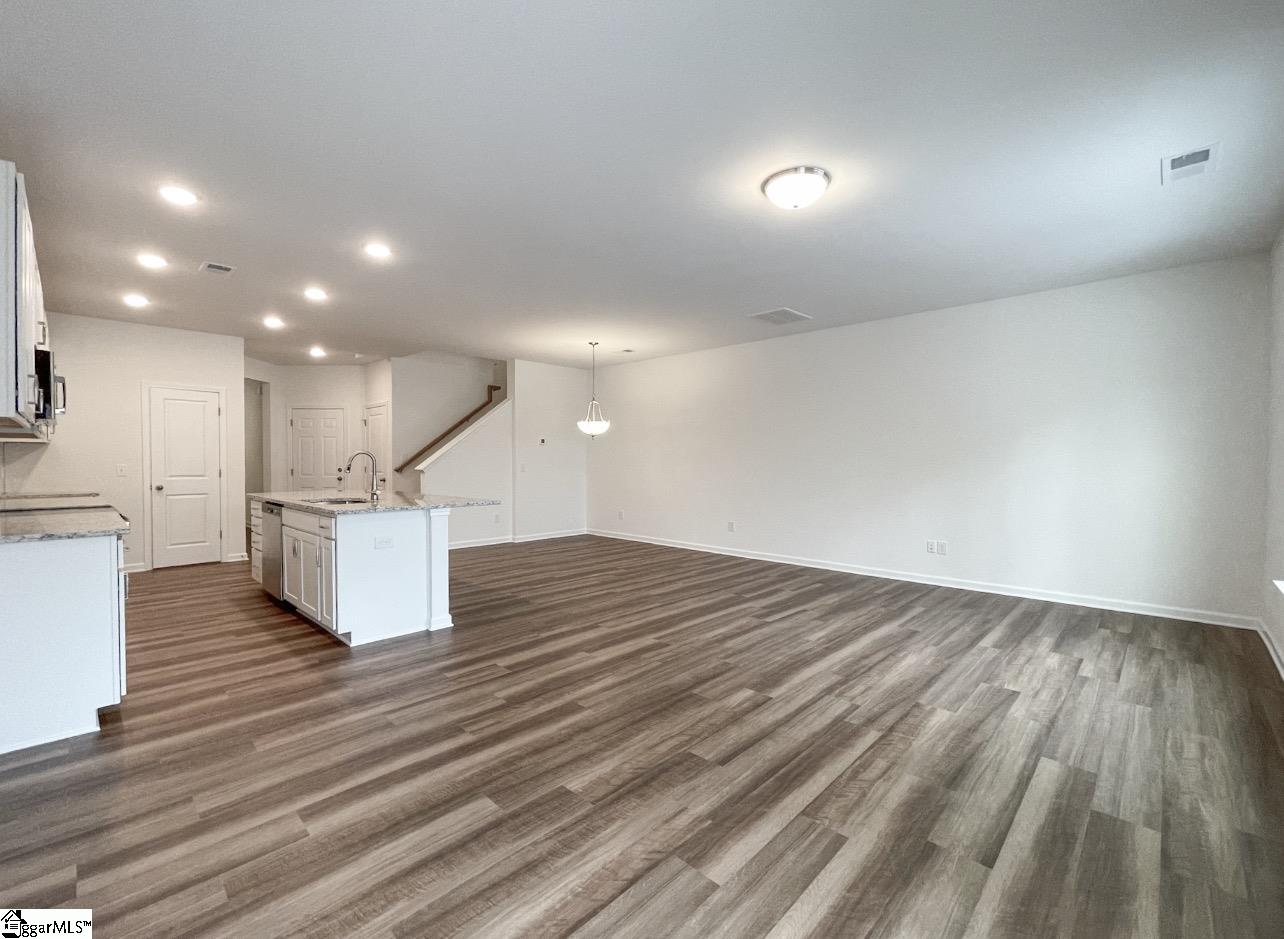 New construction featuring 3 bedrooms, 2.5 baths, and a 1-car garage. The main level offers an open floor plan with a foyer leading into the kitchen, dining area, and great room. The kitchen includes LED lighting, upgraded cabinetry, tile backsplash, granite countertops, and stainless-steel appliances. Upstairs includes a loft, walk-in laundry room, hall bath, and three bedrooms. The primary suite located at the back of the home, features a tiled shower with dual sinks. All bathrooms have quartz countertops and upgraded cabinets. Durable EVP flooring is installed in the main living areas, with carpet in the bedrooms. Additional features include structured wiring, built-in pest control system, and a finished garage with drywall, paint, lighting, and electrical outlets.