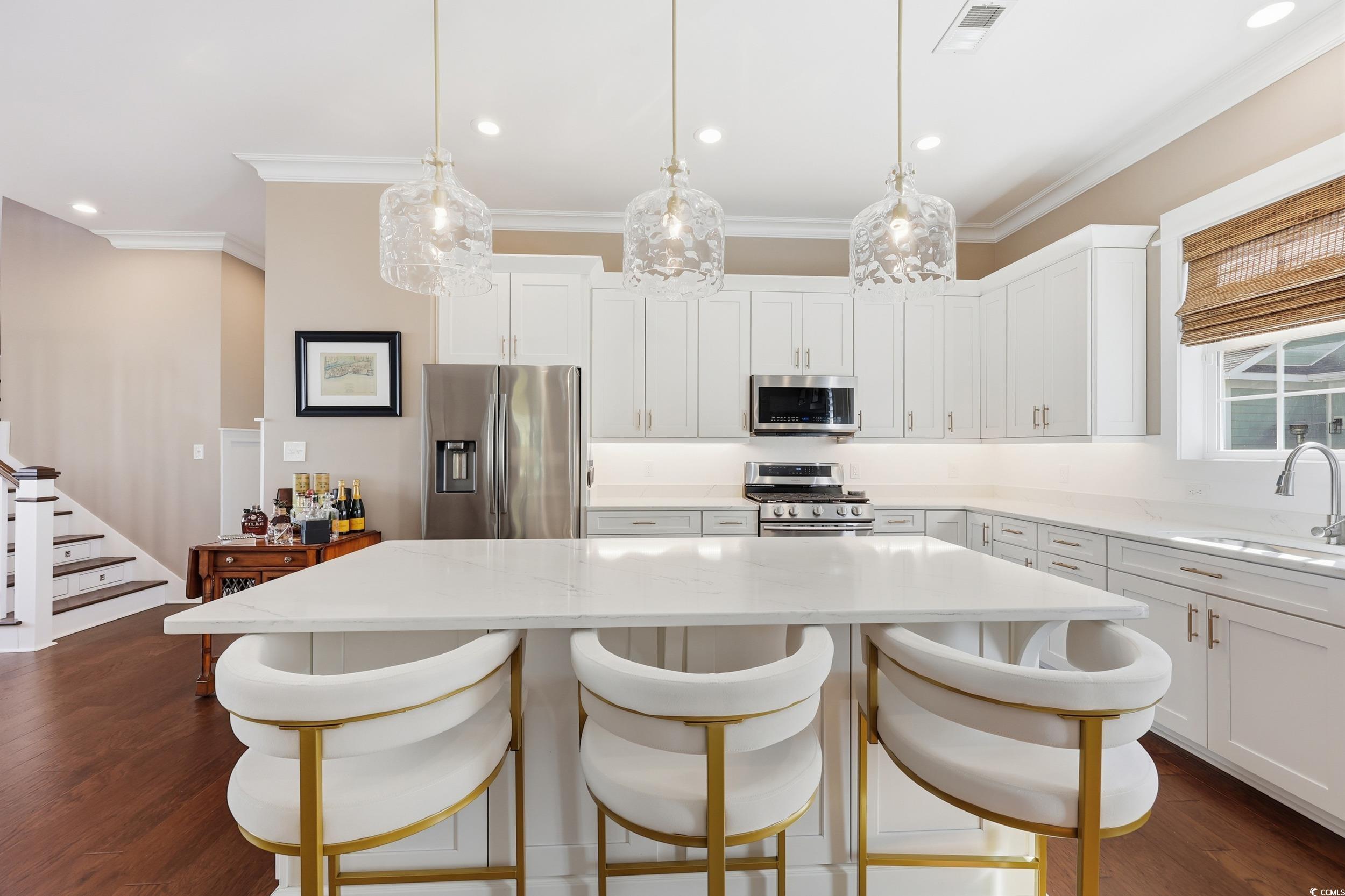 Charleston inspired architecture in Litchfield Plantation. This four bedroom three and half bath stunner awaits. Through the gates and under the Live Oak lined entrance this scenic community offers owners many exclusive amenities including a marsh front pool, marina, and an oceanfront community beach house on Pawleys Island. This home is built with detail starting with the tabby drive, sidewalks and porches. The detail continues through fine finishes often overlooked like the 8 foot doors on the first floor, custom shutters and blinds, built-ins with floating shelves, and engineered hardwood floors. This design offers two primary bedrooms, one on each level and each enjoys walk-in closet and bath. First floor primary bath has soaking tub, shower and double vanity. Two additional bedrooms share a jack and jill bath. Upstairs landing is large enough to serve as a bonus space for media room or den. Open great room, tall ceilings, large kitchen island with quartz counters, and dining space. Screened porches on both levels, utility room, side patio for grilling, and a two car garage are well planned additional spaces. Litchfield Plantation property owners enjoy short drive to area golf courses, beaches, dining, and shopping.