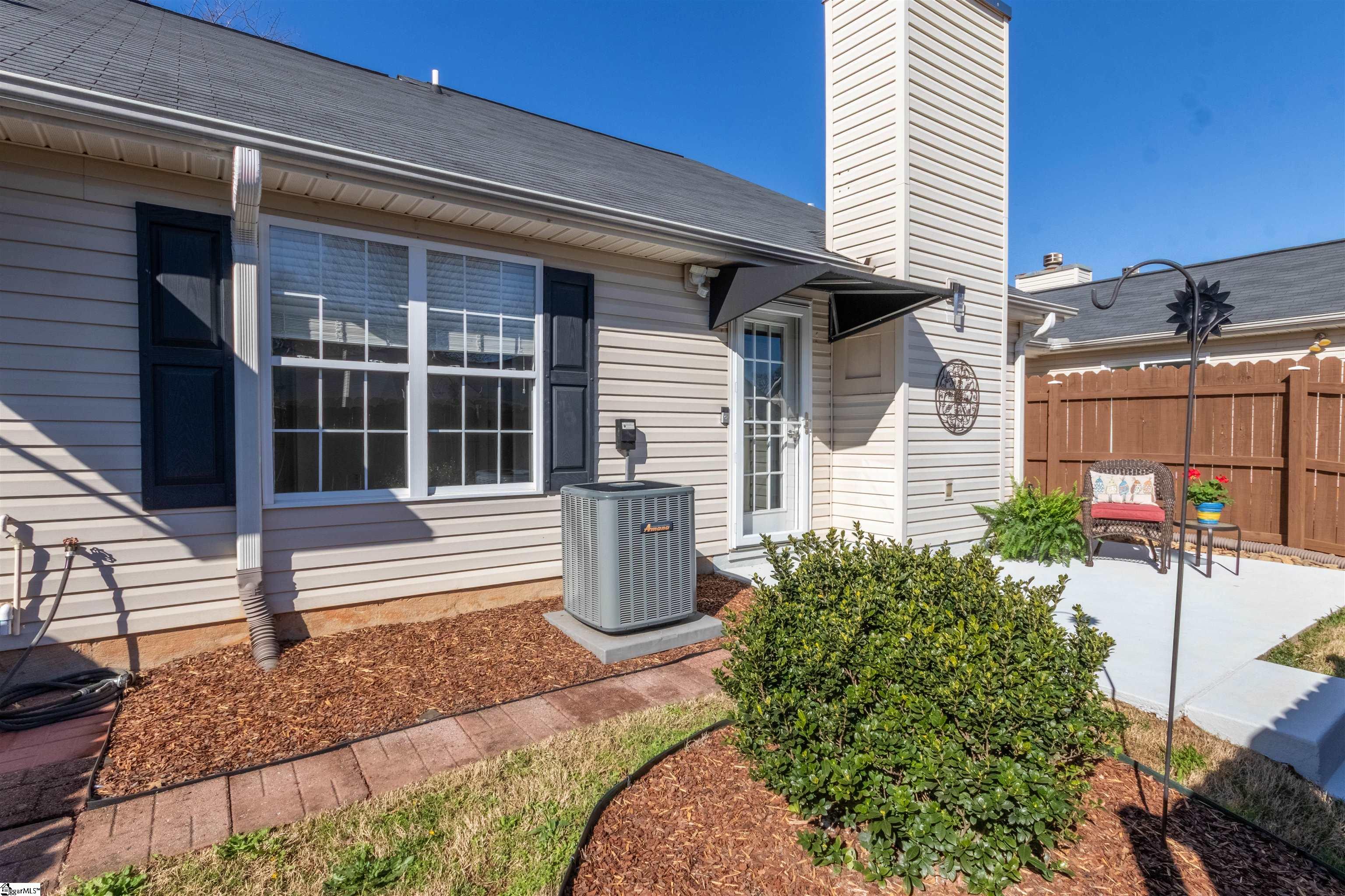 LOCATION, LOCATION, LOCATION! Welcome to easy, single level low-maintenance living in the gated community of The Townes of Woodruff Park, just off Woodruff Road. This meticulously maintained, move-in ready two bedroom, two bath patio-style home offers the perfect blend of comfort, style, and convenience. Step inside to an inviting open floor plan featuring smooth ceilings, neutral paint throughout, and high-end waterproof hardwood plank flooring. The spacious living area is anchored by a cozy gas log fireplace and flows effortlessly into a charming breakfast nook and beautifully updated kitchen complete with upgraded stainless steel appliances, a new microwave, and a large pantry for exceptional storage. The generously sized primary suite includes a walk-in closet with an organized shelving system, a separate vanity area, and a tub/shower combination. A second bedroom also offers its own walk-in closet with custom shelving, making it perfect for guests or a home office. You’ll love the extensive storage throughout the home, including multiple linen closets and a large walk-in laundry room equipped with a utility sink, front-loading washer, and a new dryer with convenient storage drawers beneath. Additional updates include modern lighting with dimmers, three ceiling fans, new toilets, and an HVAC system just 3.5 years old. Outdoor living is just as impressive with a private, fully fenced patio garden, perfect for relaxing, grilling, or entertaining. Enjoy low-maintenance, newly refreshed landscaping in both the front and back, along with a pull-down screen storm door for added comfort. A storage closet and two designated private parking spaces complete the package. Ideally located just 5 minutes to multiple local establishments including grocery stores, restaurants and library, and approximately 15 minutes to Downtown Greenville, GSP Airport, I-85, major employers, and PRISMA Health, this home truly offers the best of convenience and lifestyle. Don’t miss your opportunity to make this exceptional townhome yours!