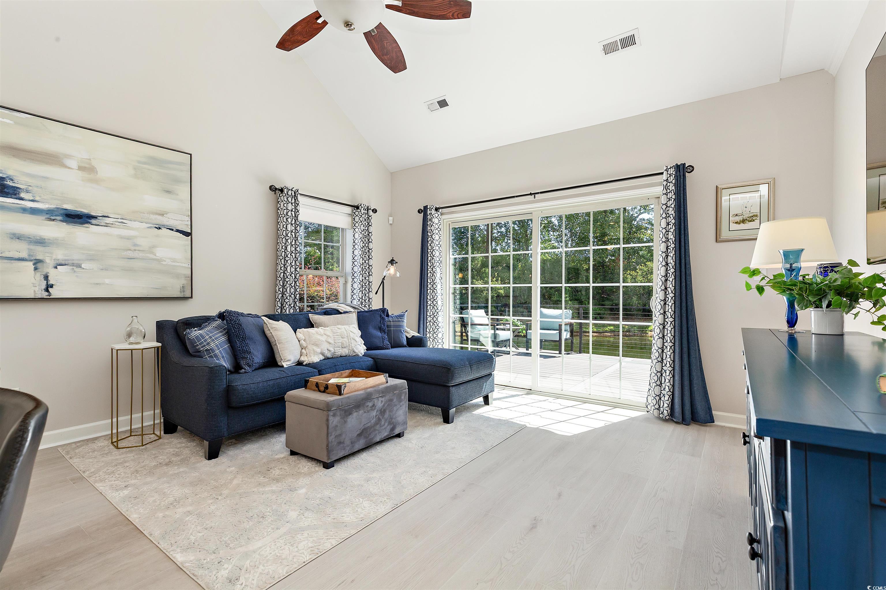 This spacious 4 bedroom 2.5 bathroom home with a bonus room offers over 2400 heated square feet and a beautiful pond view in the sought-after community of The Gates. The home has been thoughtfully maintained and updated with quality finishes that go far beyond builder grade, blending comfort with long-term durability. Inside, you’ll find high ceilings, tall windows, and abundant natural light. The first-floor layout is ideal for everyday living with a spacious primary suite, motorized blinds, a walk-in closet, and a spa-like bath with a soaking tub and large window that fills the space with sunshine. Renovations on the main level were completed with care, featuring upgraded materials and fixtures chosen for both style and lasting value. The kitchen offers generous storage including a pantry and a coffee nook that keeps appliances tucked away from the main cooking area. Upstairs, guest bedrooms, a full bath, and a family room create a private retreat for children, grandchildren, or visiting guests. The home is perfectly positioned on the lot to maximize privacy, with a spacious back deck overlooking the pond and woods beyond. The view is peaceful and private, with daily visits from blue herons, snowy egrets, turtles, and other wildlife. The driveway easily accommodates four to six vehicles, making it convenient when hosting guests. The Gates is known for its friendly, neighborly atmosphere. Residents enjoy optional access to a community pool, as well as year-round events including food truck Fridays, yard sales, and holiday parades. There’s also a large grassy area and basketball court behind the pool and clubhouse. Halloween is a highlight, attracting families from across Myrtle Beach for a lively night of trick-or-treating. Convenience is unmatched with Food Lion, Publix, and major retailers nearby. The community offers quick access to Highway 707, Highway 17, and Highway 31, making trips to Market Common, Surfside Pier, Murrells Inlet Marshwalk, or the beach effortless while still allowing you to retreat from the seasonal crowds when desired. Situated between Myrtle Beach, Surfside Beach, and Murrells Inlet, this home is close to top-rated schools, shopping, dining, golf, and all that coastal South Carolina living has to offer.