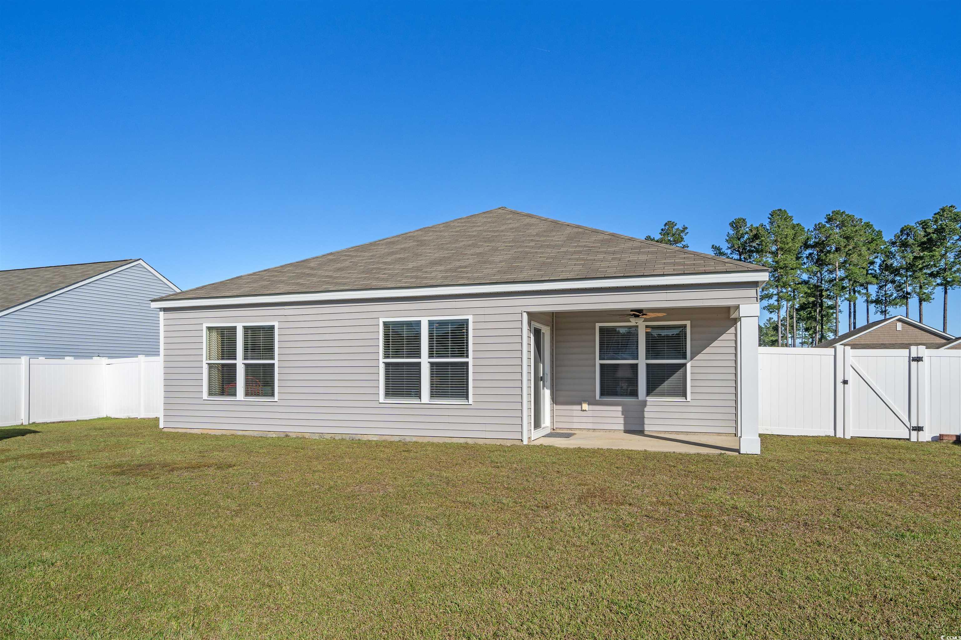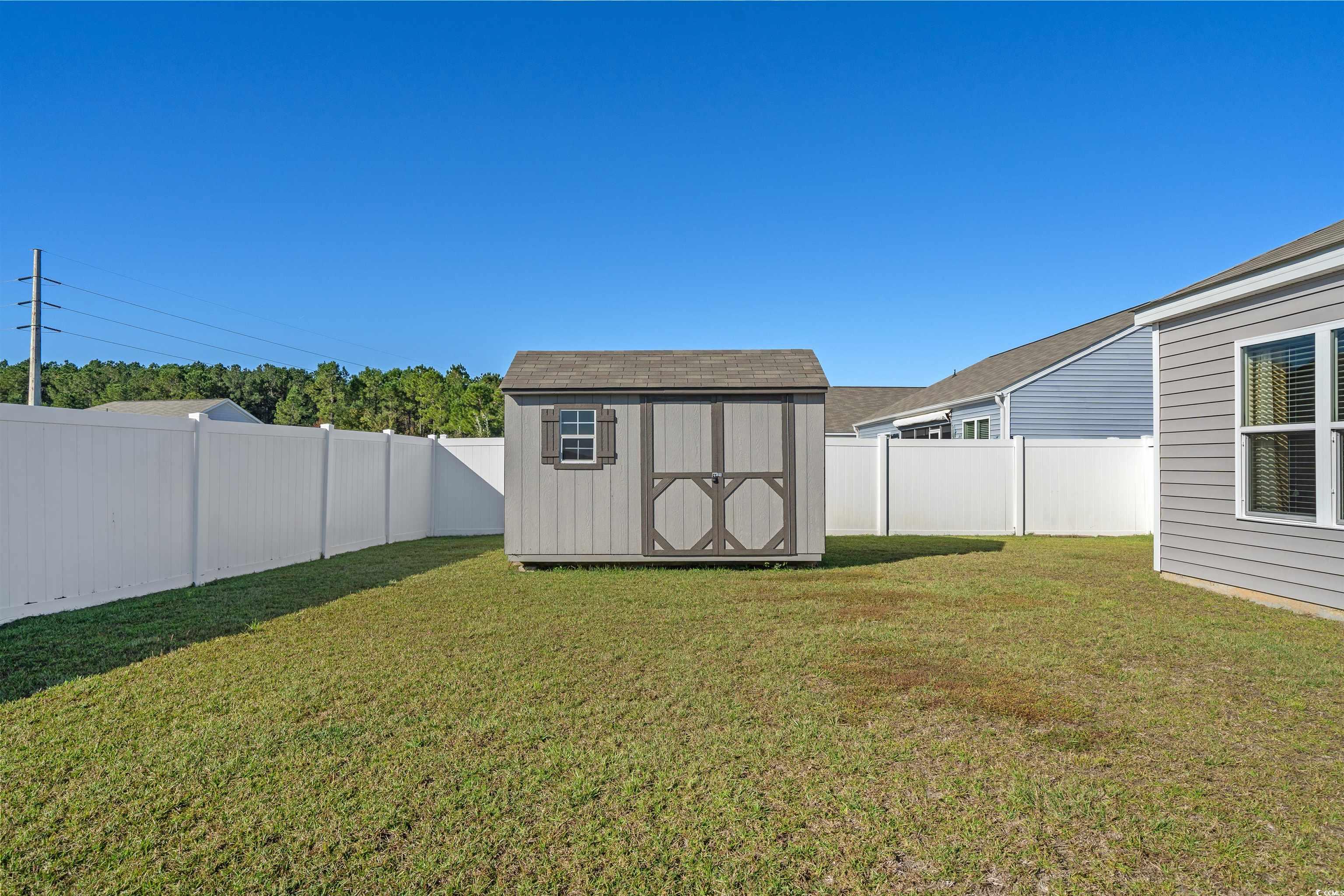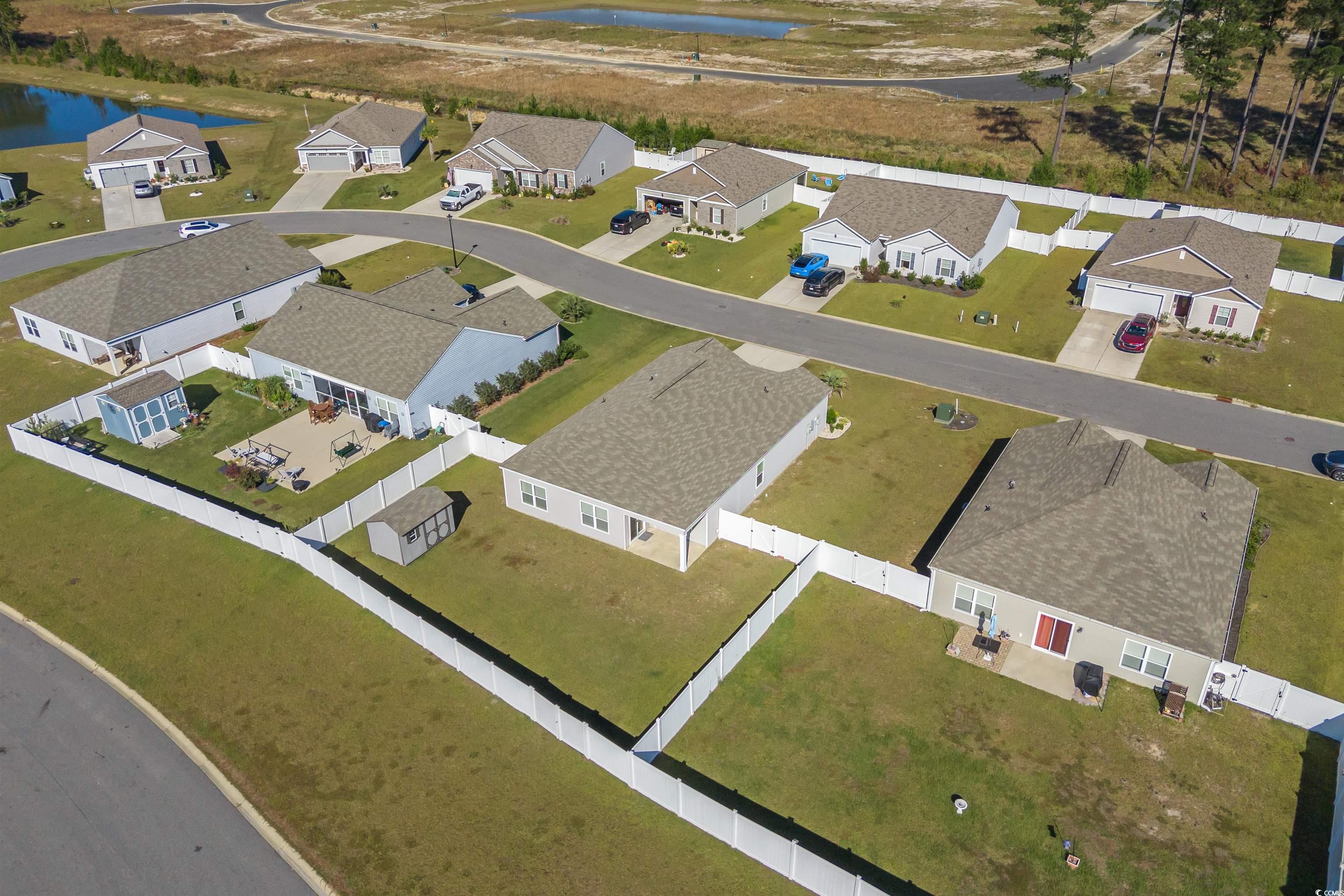 This like-new 3 bedroom, 2 bath Aria model offers a clean, modern design and a functional open layout. The spacious kitchen features painted cabinetry, stainless Whirlpool appliances, a large island with bar seating, and a walk-in pantry for extra storage. Natural light fills the home through well-placed windows, highlighting the comfortable living and dining areas. The split floor plan provides privacy for the primary suite, complete with a walk-in closet, double vanity, and 5-foot walk-in shower. Outside, enjoy a large fenced backyard, detached storage shed, and plenty of room to relax or entertain. The home also includes pull-down attic stairs, a two-car garage with opener, and built-in smart home features that allow you to control the thermostat, lighting, and locks from your phone or Alexa. Lightly used and exceptionally maintained, this property feels brand new. Furniture is negotiable, and the low HOA keeps ownership affordable.