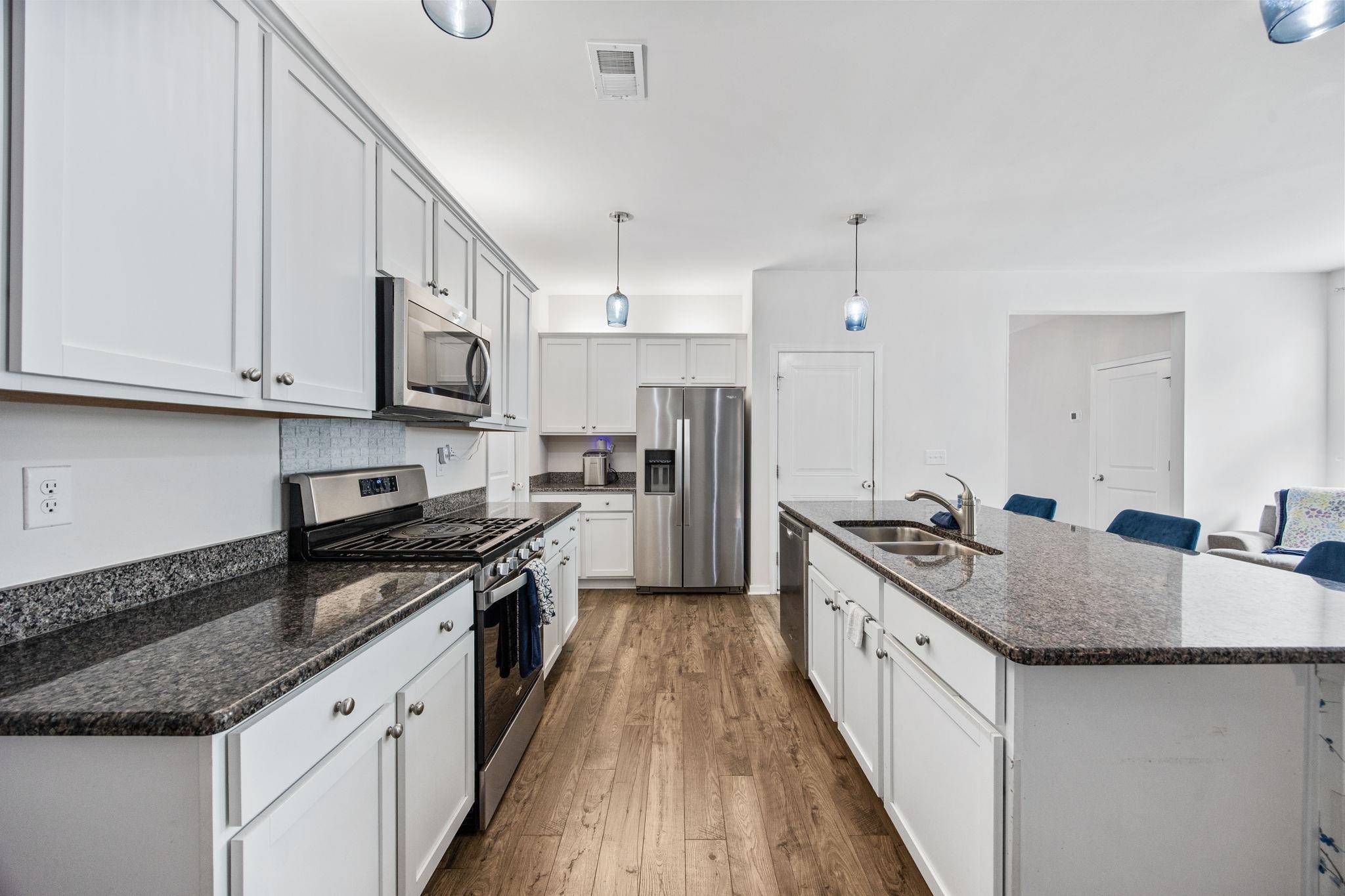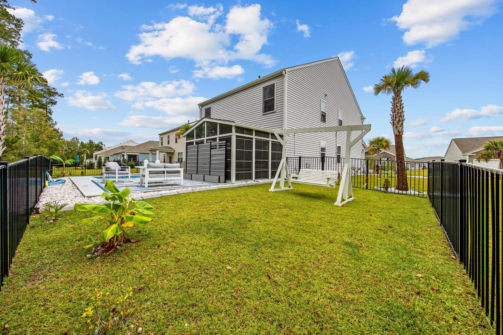 Experience resort-style living in this contemporary 5 bedroom, 3 full bath home in Longs, SC. With 2,421 heated square feet, this residence offers a spacious open-concept layout perfect for everyday living and entertaining. The gourmet kitchen features granite countertops, stainless steel appliances, pendant lighting, and a center island with seating. Enjoy the bright and airy living room, a cozy screened-in porch, and a fully fenced backyard that opens to stunning golf course views. The in-ground pool creates the ultimate outdoor retreat. Ideal for families seeking space, comfort, and style in a serene setting.