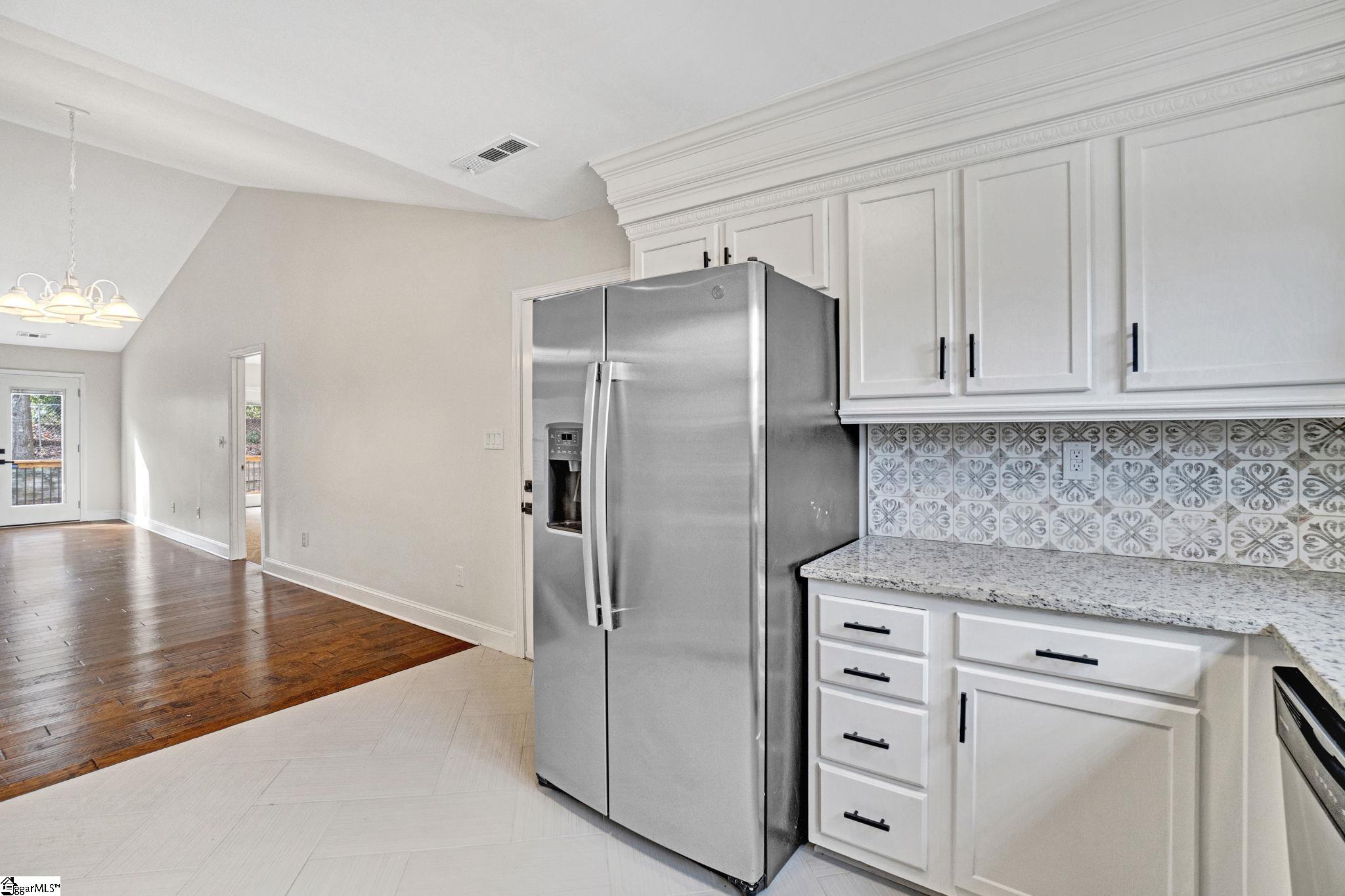 Enjoy easy one-level living in this beautifully updated 3-bedroom, 2-bath home offering 1,481 square feet of open and inviting space. Fresh new carpet, paint, and updated countertops in both the kitchen and bathrooms give the home a clean, modern feel. The open floorplan features a cozy gas log fireplace in the great room, which flows seamlessly into the dining area—perfect for flexible furniture arrangements and entertaining. The spacious kitchen is designed to impress with new granite countertops, a custom tile backsplash, stainless steel appliances, and plenty of workspace for gatherings and everyday living. The large primary suite is a true retreat, highlighted by a vaulted ceiling, stylish barn door, walk-in closet, and a private ensuite bath with double sinks, granite countertops, and a soaking tub with an oversized shower head. A split bedroom layout provides added privacy, with two additional bedrooms ideal for guests, a home office, or a craft space, along with a second full bathroom. Step outside to enjoy the deck, patio, and fully fenced backyard—perfect for outdoor living. A rear storage room adds extra convenience. Located in an established neighborhood in the sought-after Simpsonville area, this home is zoned for award-winning schools and is just minutes from restaurants, shopping, medical facilities, and entertainment. A wonderful opportunity to enjoy comfort, style, and convenience all in one place.