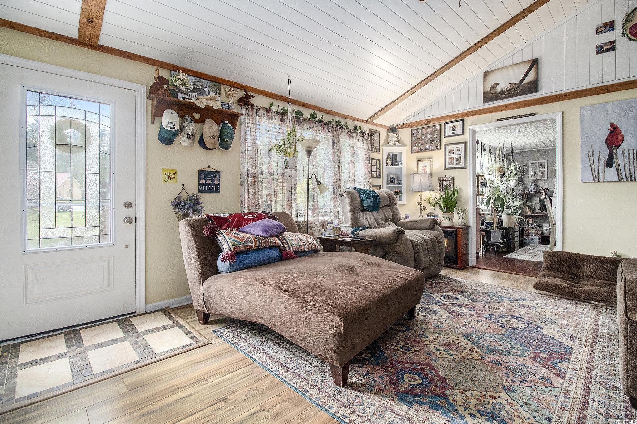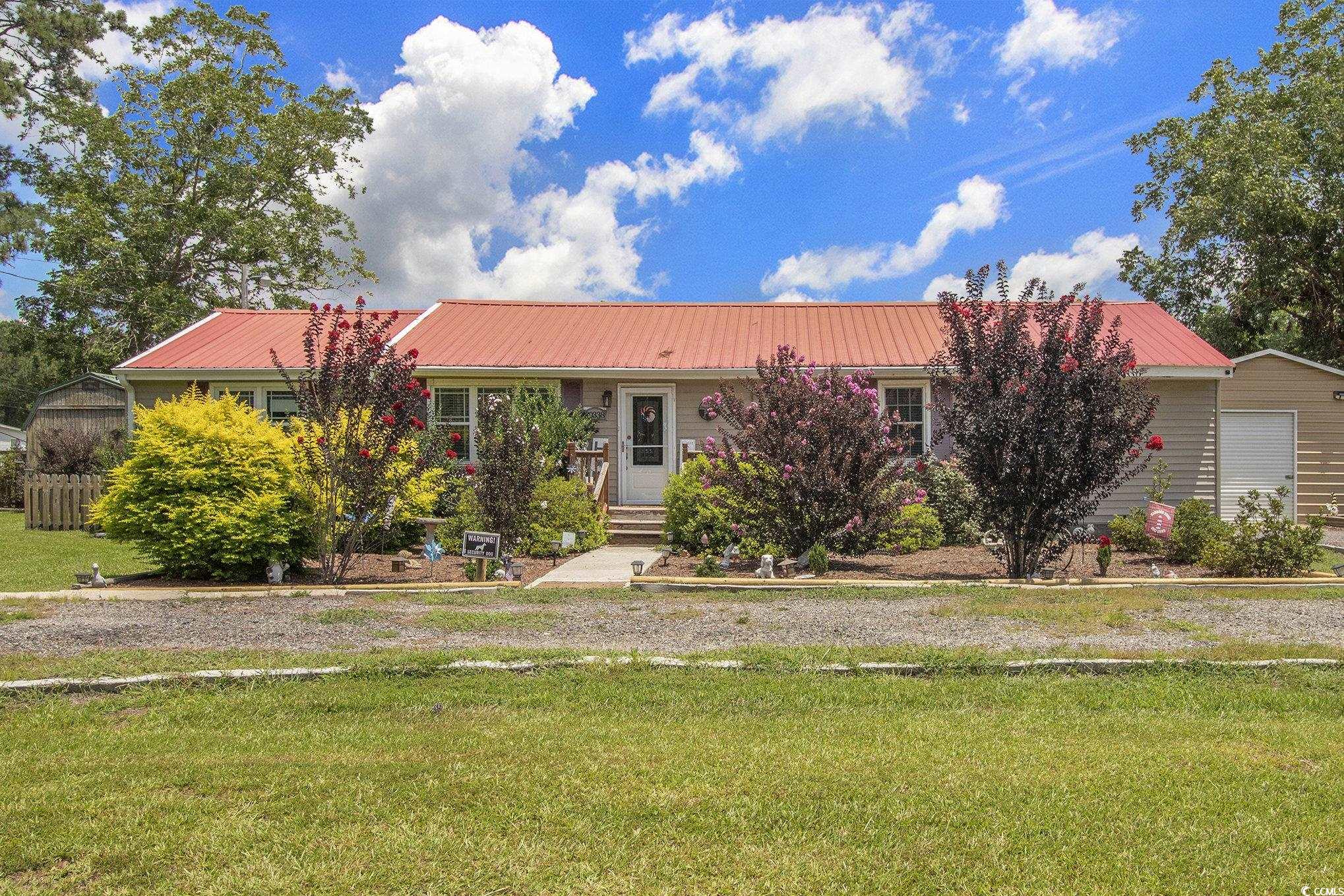 Welcome to your own private haven in Hemingway, SC — a beautifully upgraded 2-bedroom, 2-bath home set on 1.6 acres of peaceful countryside. Surrounded by mature apple and pear trees and two thriving blueberry bushes, this property offers both comfort and charm inside and out. Step inside to soaring vaulted ceilings that enhance the spacious feel of the main living area, flowing into a formal dining space perfect for entertaining or cozy family meals. The kitchen and living spaces have been refreshed with all-new luxury vinyl plank flooring, while plush new carpeting brings warmth and comfort to the bedrooms. The oversized master suite is truly a retreat, with space for a sitting area, large furniture, or even a reading nook. The attached ensuite bath has been tastefully updated with a dual sink vanity, a new walk-in shower, and modern finishes. This home has been thoughtfully updated throughout with major systems already taken care of, including a brand-new septic system, new hot water heater, and a new 200-amp electrical panel with an additional 100-amp sub-panel for expanded functionality. The windows have all been replaced, offering energy efficiency and fresh natural light in every room. New front and screen doors enhance both curb appeal and ventilation. A new metal roof and brand-new vinyl siding complete the home's transformation, providing durability, insulation, and an updated exterior look. Out back, enjoy the functionality of a huge 30x40 wired shed, ideal for storage, a workshop, or future hobby space. A 10x15 greenhouse provides the perfect environment for gardening year-round. With all the big-ticket items already done, this home offers true move-in-ready peace of mind with room to grow, garden, and relax. Come experience country living with modern comfort — this is a one-of-a-kind opportunity in Hemingway!