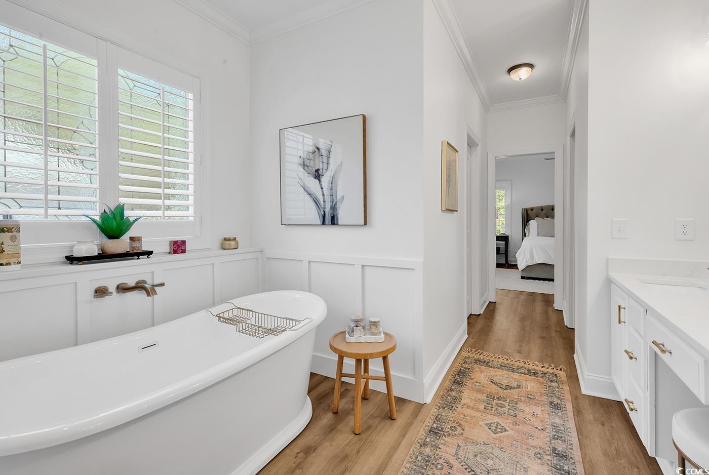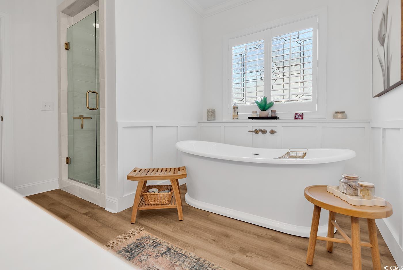 Welcome to your slice of low country paradise in the desirable Cypress River Plantation community. This stunning all-brick home offers four bedrooms and two and a half bathrooms, ideal for those who love space to spread out and relax. Enter to discover beautiful hardwood floors flowing throughout the main level, leading you to an upscale kitchen equipped with stainless steel appliances that'll delight any cooking enthusiast. The spacious living room features a cozy fireplace, ideal for those chilly evenings when you want to curl up with a good book or binge-watch your favorite series. The primary bedroom suite is conveniently located on the main floor, complete with an ensuite bathroom featuring both a standalone tub for long soaks and a separate tiled shower. Custom trim work throughout adds elegant touches that show this home's attention to detail. Upstairs, you'll find two guest bedrooms plus a versatile bonus room that could easily serve as a fourth bedroom, home office, or that craft room you've always dreamed of having. The real magic happens outdoors, where this home truly shines. The large backyard backs up to a natural buffer, giving you privacy and peaceful views. It's like having your own private retreat where you can garden, entertain, or simply enjoy morning coffee while listening to nature's soundtrack. Living in this gated intracoastal waterway community means access to fantastic amenities and the peace of mind that comes with secure living. You're also conveniently located near quality schools and shopping, making daily life both comfortable and convenient.