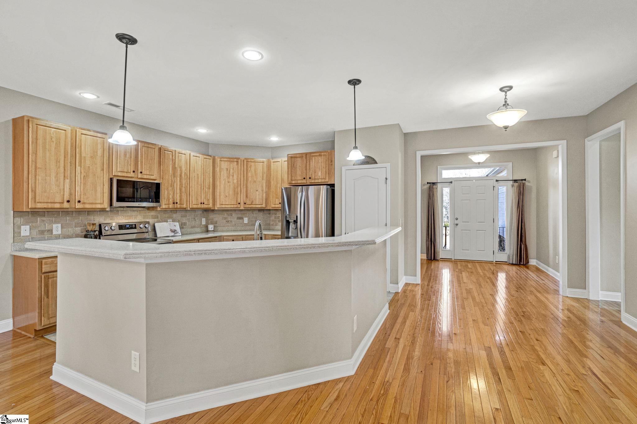 Welcome to 204 Lord Byron Lane - a charming, traditional ranch home tucked away in The Summit at Cherokee Valley. Situated on an established, beautifully landscaped lot, this inviting home offers exceptional curb appeal and a setting that feels both private and welcoming. Mature trees, natural surroundings, and a well-kept exterior create a lasting first impression and a sense of timeless charm. Inside, the home is designed to compliment its scenic setting, with light-filled living spaces that feel open yet comfortable. As you enter the foyer your eyes will be drawn to a beautiful stone fireplace flanked by glass doors on each side leading to the deck and a lush, private back yard. The thoughtful open design and flowing floor plan of this home allows you to easily customize the layout to suit your needs—whether that means a traditional dining setup, a larger entertaining area, a home office nook, or a combination of spaces that reflect your personal style. The kitchen features abundant solid-wood cabinetry, generous counter space, a center island with sink, brand new stainless steel LG appliances, and recessed lighting. A breakfast bar opens to the adjoining living space, creating an inviting and functional layout. The living area is highlighted by a striking stone fireplace with a raised hearth, hardwood floors, and large glass doors that bring in natural light and provide easy access to the outdoor living space. Neutral tones and clean lines enhance the home’s airy feel. The home offers three well-appointed bedrooms and two full bathrooms, which includes two generously sized secondary bedrooms and a spacious primary suite. The primary bathroom is designed for comfort and functionality, with dual vanities, a soaking tub, a walk-in shower, and multiple walk-in closets that provide ample storage. However, the best part of the primary bedroom is the direct access to the back deck and private backyard—perfect for enjoying quiet mornings or relaxing evenings outdoors. Other noteworthy features include the walk-in laundry room and the two-car garage with included overhead storage. Out back, the screened-in porch offers a peaceful outdoor living space designed for year-round enjoyment. Roll-down shades provide added comfort and flexibility, allowing you to adjust for sun, shade, or privacy as needed. With the lot backing up to open pasture land, the setting feels serene and secluded, offering uninterrupted views and a quiet backdrop rarely found. An uncovered deck space just off the screened-in porch provides a great spot for grilling out and enjoying the sunshine during warmer months. The Summit at Cherokee Valley offers its residents an active lifestyle with access to golf, Core 450 (the neighborhood's on-site restaurant), a neighborhood event venue, a fitness center and a family-friendly resort style pool. With beautiful views of the Blue Ridge Mountains and excellent proximity to downtown Travelers Rest, the area offers the perfect blend of seclusion and convenience. This is truly a stunning home offered at an increasingly rare price point - schedule your showing today!