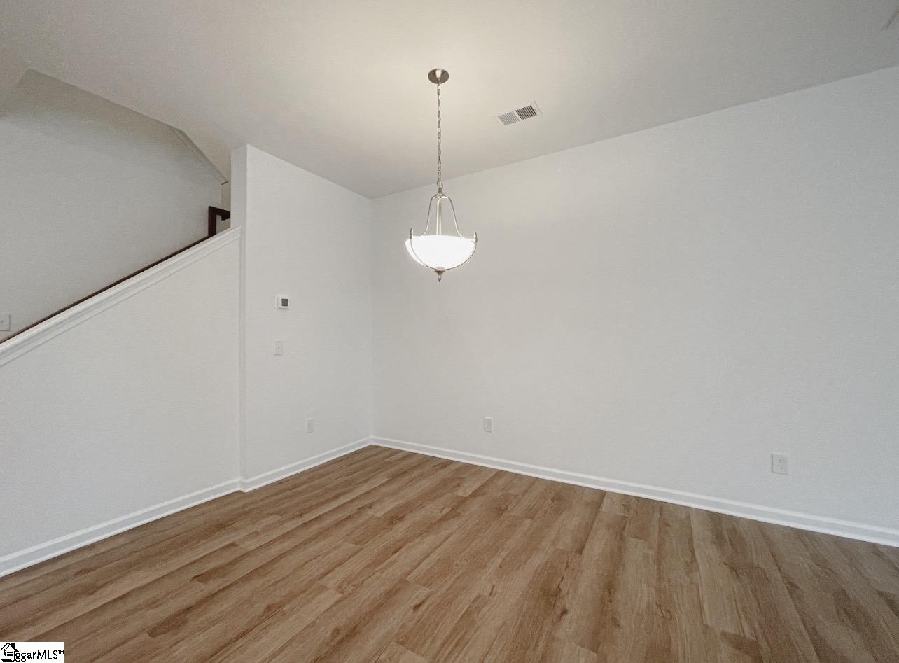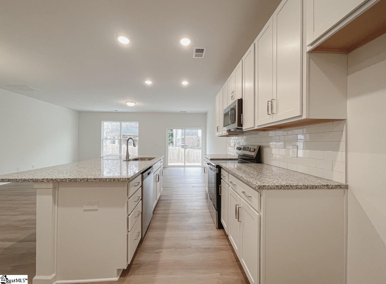 New construction featuring 3 bedrooms, 2.5 baths, and a 1-car garage. The main level offers an open floor plan with a foyer leading into the kitchen, dining area, and great room. The kitchen includes LED lighting, upgraded cabinetry, tile backsplash, granite countertops, and stainless-steel appliances. Upstairs includes a loft, walk-in laundry room, hall bath, and three bedrooms. The primary suite located at the back of the home, features a tiled shower with dual sinks. All bathrooms have quartz countertops and upgraded cabinets. Durable EVP flooring is installed in the main living areas, with carpet in the bedrooms. Additional features include structured wiring, built-in pest control system, and a finished garage with drywall, paint, lighting, and electrical outlets.