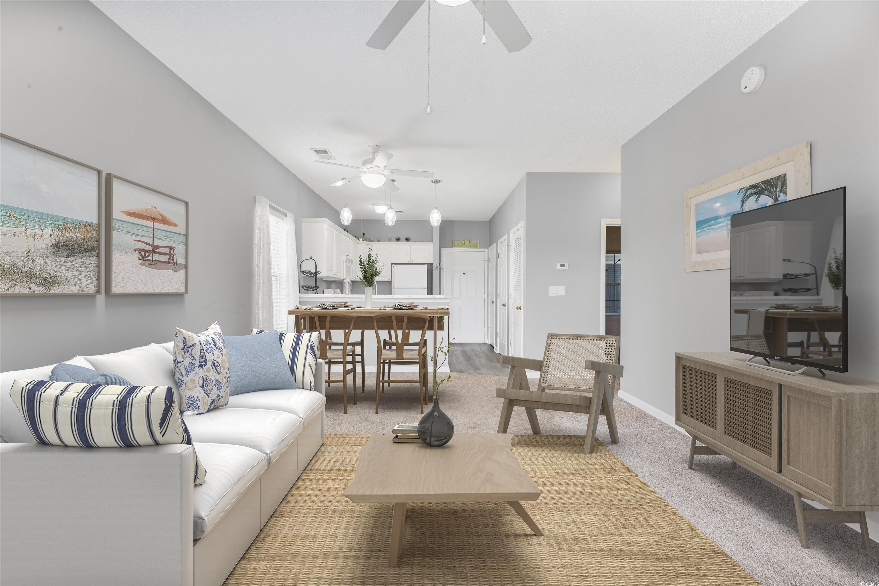 Vacation Getaway, an income producing investment, or full-time residence! Welcome to 2040 Cross Gate Blvd, Unit 204, a spacious and inviting 2-bedroom, 2-bath condo in the desirable Cross Gate Villas at Deerfield community in Surfside Beach. This end unit is filled with natural light and features an open-concept design with a generous living/dining area, updated kitchen with LVP flooring, stylish pendant lighting, and recently refreshed countertops. The primary suite offers a private bath and plenty of closet space, while the guest bedroom and hall bath are perfect for family or visitors. A stackable washer/dryer is included, along with a private outdoor storage closet — ideal for beach and golf gear. The HOA covers water, sewer, trash, pest control, security, high-speed internet, cable TV, exterior building maintenance, and pool amenities — offering a true lock-and-leave lifestyle. Step outside and enjoy the community pool, or take a quick drive to the beach, Market Common, golf courses, shopping, and dining. Short-term rentals are allowed, making this property an excellent choice for investors and snowbirds. With its prime location, updated finishes, and flexible rental options, Unit 204 at Cross Gate Villas is one of the best values on the market. Don’t wait — schedule your showing today!