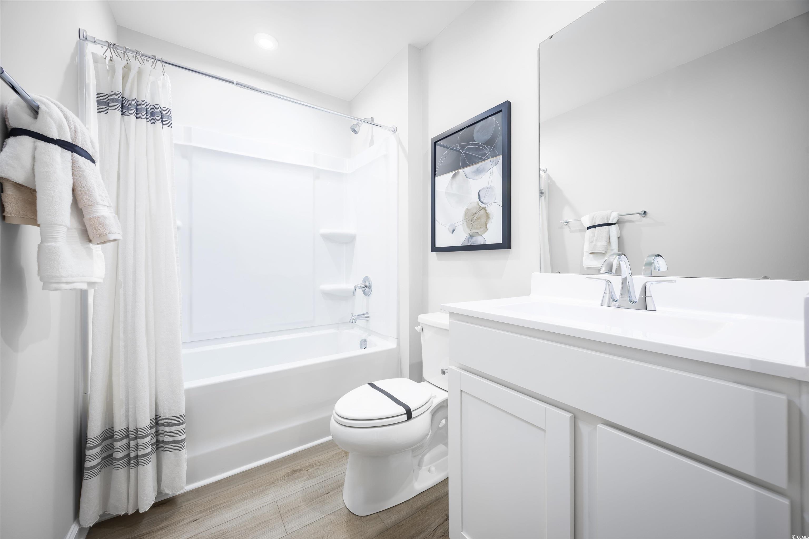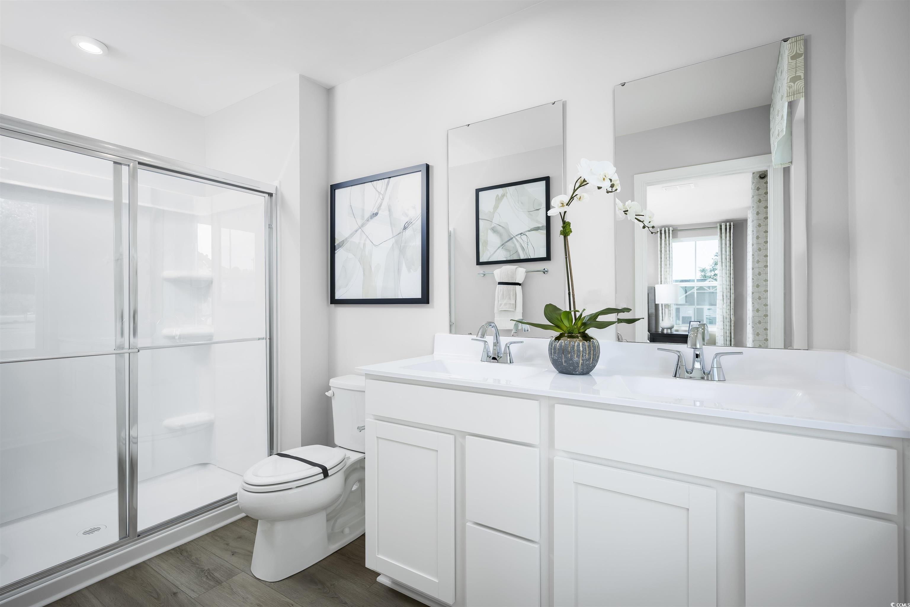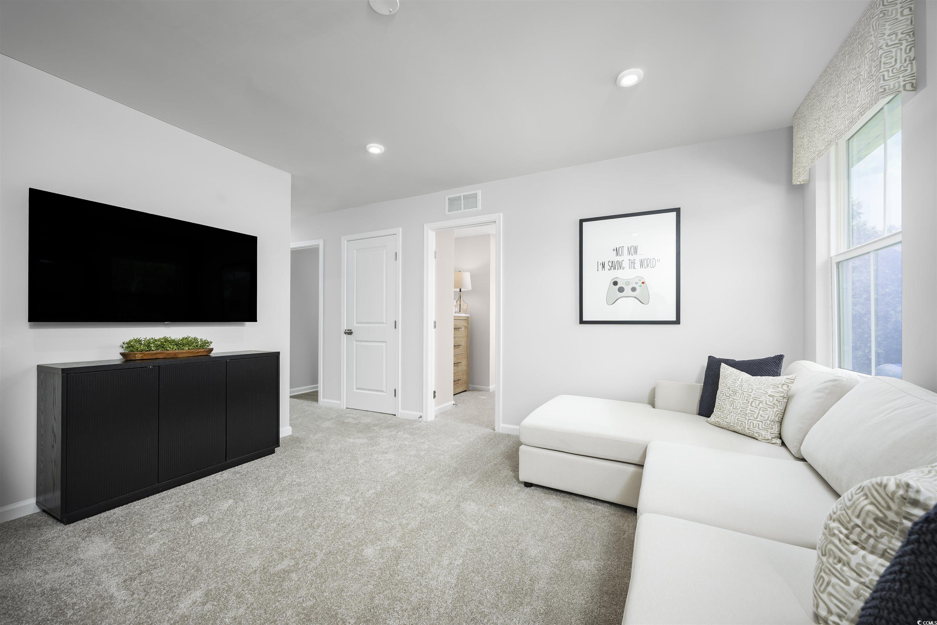 Nestled in a park-like setting with sidewalk-lined streets, Meadows Edge offers the lowest price new homes with community pool zoned to the Carolina Forest School District and just minutes to Coastal Carolina University Meadows Edge offers easy access to everything you need. From an assortment of shopping and dining options along Hwy 501 & 544 to medical facilities such as Conway Medical Center, all the necessities are within reach. Dreaming of spending lazy days on the beach? You're in luck! Meadows Edge Townhomes is a mere 15-minute drive from the Grand Strand beaches, allowing you to soak up the sun any day of the week. You'll also find quaint shops and delicious eateries, like Hop N' Which, just 10 minutes from home in downtown Conway featuring the Conway Riverwalk. The Torrey single-family home perfectly balances comfort and practicality. Experience a smart two-story layout featuring a bright, versatile loft space. The open great room seamlessly connects to a well-appointed kitchen and dining area, keeping your family connected throughout the day. Extend your living space with an optional patio or covered porch for relaxing evenings and take advantage of the convenient garage entry for easy organization. Upstairs, you’ll find four thoughtfully sized bedrooms plus a generous loft area ideal for family activities, study time, or children’s play. Retreat to your private owner’s suite, complete with dual walk-in closets and an elegant bathroom featuring double vanities and an oversized shower.