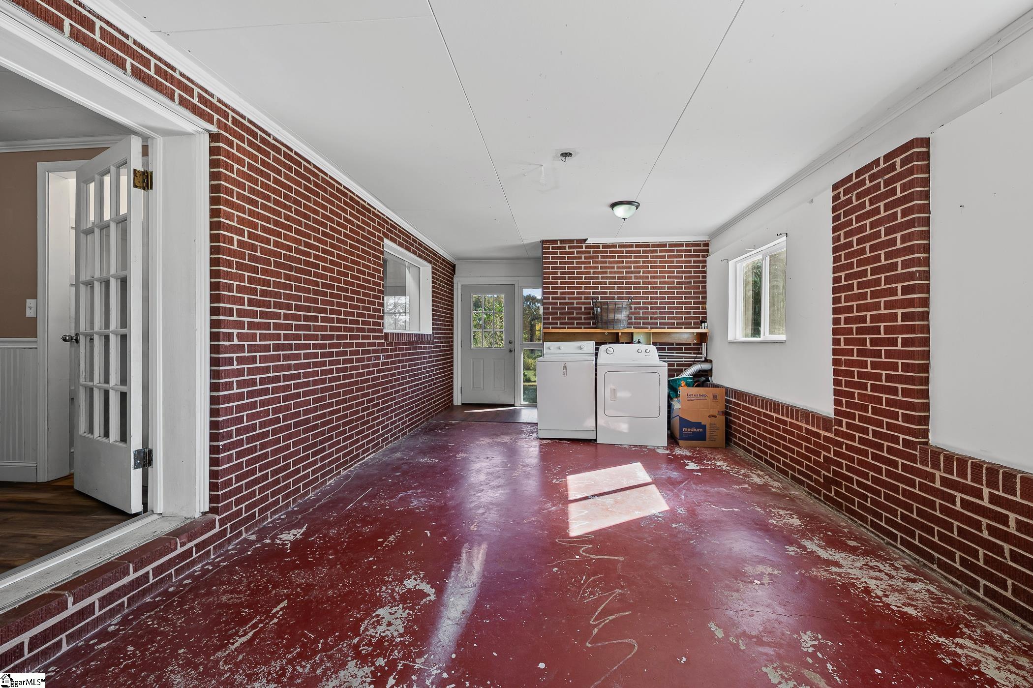 The potential here is endless and with so many major updates already complete, this brick ranch is ready for its next chapter. Boasting 2,624 square feet of living space, this inviting home perfectly blends comfort, character, and room to grow. Step inside to find a spacious den featuring laminate floors, a cozy fireplace with gas logs, and a charming bay window overlooking the private backyard. Double glass doors lead out to the covered back porch, where you can relax with a morning coffee or evening sunset, all while enjoying a beautiful view of open pastureland. The heart of the home is the large eat-in kitchen that offers real wood cabinetry, generous counter space, and a layout ideal for family gatherings or entertaining. The primary suite is a true retreat, complete with cathedral ceilings, a peaceful sitting area, a luxurious tiled bathroom, and a walk-in closet worthy of a dream home. With three additional, nicely sized bedrooms and ample closet space, there’s room for everyone. A bonus space provides even more flexibility, perfect for a playroom, home office, or hobby space. A dedicated walk-in laundry room adds to the convenience. Outside, you’ll find a detached garage/workshop, ideal for projects, storage, or anyone who loves to build or tinker. With two HVAC units and two water heaters, comfort and efficiency are already in place. Set on a private lot yet just minutes from Highway 25, you’ll enjoy an easy commute to shopping, dining, and everyday conveniences while still savoring the quiet charm of country living. Home to be sold as-is. Listed at $127.29 per SF and with just a bit of TLC and your personal touch, 205 Cooley Bridge Road could easily become a true showplace.