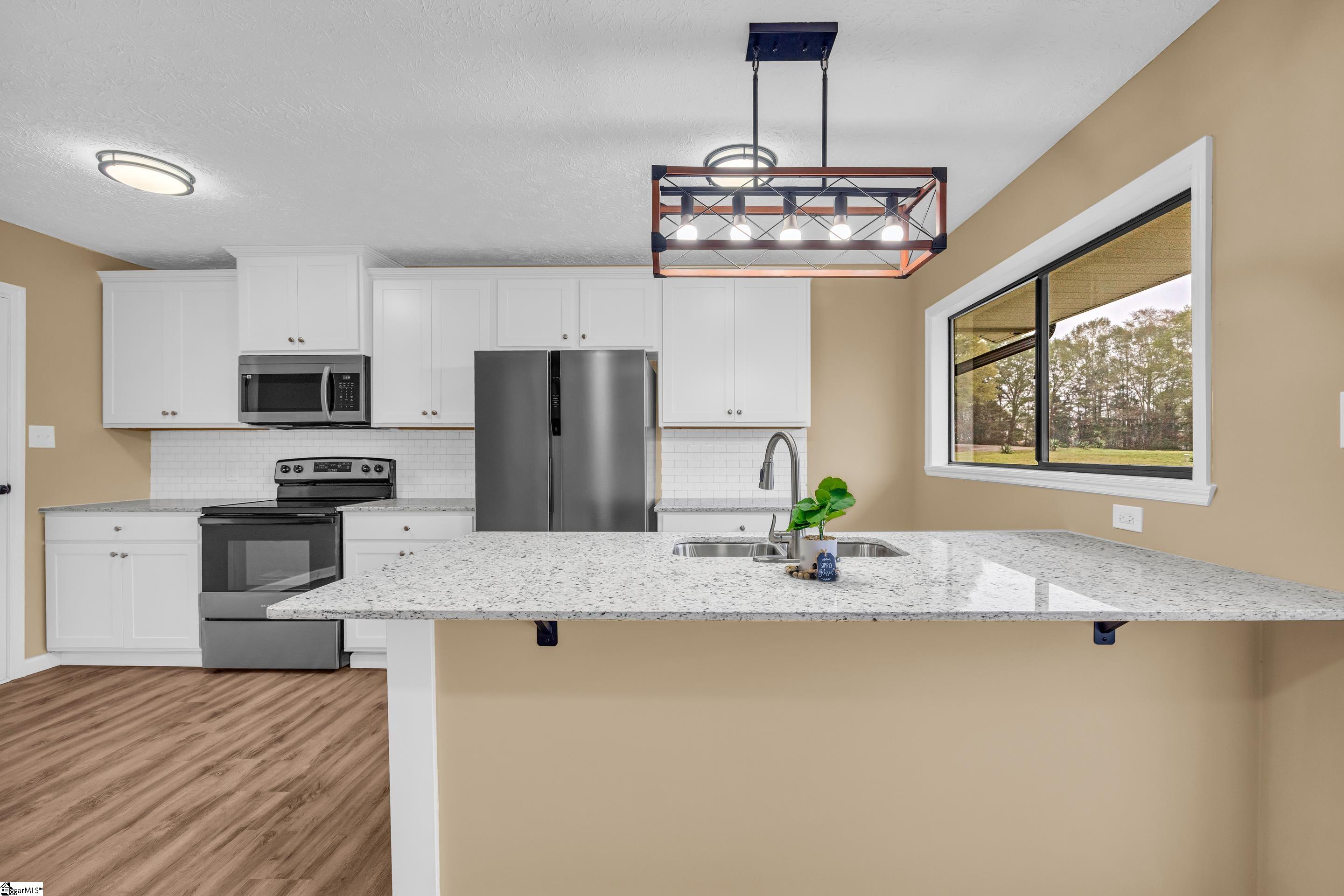 Step into this beautifully renovated 3 bedroom, 2 bathroom home that effortlessly blends modern style and comfort. Every detail has been thoughtfully upgraded to create a welcoming and functional space. From the brand new roof and gutters to the state of the art HVAC and water heater, this home offers peace of mind and long lasting quality. The spacious kitchen is a true highlight, featuring stunning granite countertops and brand-new stainless steel appliances, including a stove, refrigerator, dishwasher, and microwave. Throughout the home, luxury vinyl plank flooring exudes warmth and durability, while modern lighting fixtures add a touch of elegance. Both bathrooms have been upgraded with stylish finishes that enhance the home's appeal. Enjoy fresh and inviting interiors with newly painted walls, as well as new interior and exterior doors in most rooms that enhance the home's curb appeal. Large windows throughout provide natural light, with even larger windows in the living room that create a bright and airy atmosphere. Located just 8 minutes from Sadlers Creek State Park and the boat ramp, you'll have easy access to outdoor activities in a peaceful, country setting. Plus, this home is only 20 minutes from downtown Anderson, offering the perfect balance of serenity and convenience. Don’t miss the opportunity to make this meticulously updated home yours. Schedule a showing today!