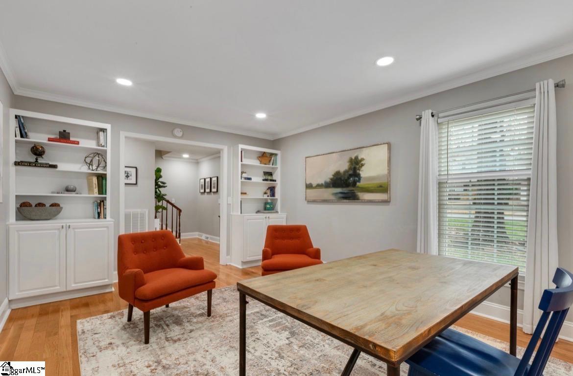 Exceptional Eastside Greenville Home in Devenger Place Located on a large corner lot in the highly desirable Devenger Place community, this impeccably maintained 4 bedroom, 2.5 bath home offers 2,400 square feet of thoughtfully updated living space in one of Greenville’s most sought-after Eastside neighborhoods. The main level features beautiful hardwood flooring throughout and an inviting, open layout ideal for both everyday living and entertaining. The living area is warm and welcoming, featuring custom built-in bookshelves and a gas fireplace, making it the perfect space to relax or work from home. The fully updated kitchen includes modern finishes, abundant cabinetry, a dedicated coffee nook, and all brand new appliances that convey, flowing seamlessly into the main living areas. The primary suite features a spacious bedroom with three closets and a beautifully updated en suite bathroom with a glass shower. Both full bathrooms are equipped with double vanities, offering comfort and convenience for everyday living. An updated half bath adds ease for guests. Every space in the home has been meticulously cared for, and the home has never had pets or smokers. Recent upgrades include new windows, enhancing energy efficiency, comfort, and natural light throughout the home. Outdoor living is a standout with a Trex deck, patio, sprinkler system, and an immaculate, professionally maintained yard complete with a serene mini koi pond. The epoxy-finished garage offers extensive built-in cabinetry and a workbench, providing excellent storage and functionality. Devenger Place is known for its strong sense of community and amenities, including tennis courts, a playground, and the renowned Devenger Dolphin Swim Team. Conveniently located near top-rated schools, shopping, dining, and all Eastside Greenville conveniences, this move-in-ready home is a rare opportunity in an established neighborhood.