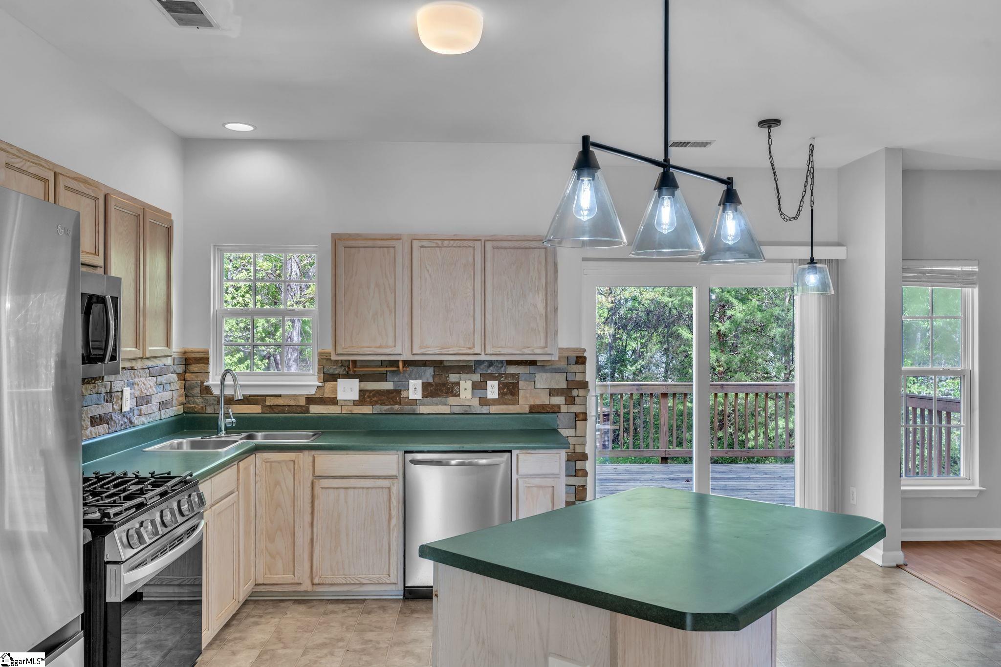 Welcome to this well-maintained 4-bedroom home tucked into a quiet cul-de-sac in the heart of Simpsonville, offering the space, privacy, and layout today’s buyers are looking for. With approximately 2,000 square feet, this home features a functional and inviting floor plan with a spacious living room centered around a fireplace and an easy flow into the kitchen and dining area. The kitchen offers ample cabinetry, stainless steel appliances, and direct access to the back deck, making it ideal for both everyday living and entertaining. Upstairs, the oversized primary suite features vaulted ceilings, abundant natural light, and a private en-suite bath. Three additional bedrooms provide flexibility for guests, a home office, or growing households. Recent improvements include brand new windows, fresh interior paint, and a new water heater, with additional opportunity for buyers to make future updates their own. Step outside to a fully fenced backyard with mature trees, offering a rare sense of privacy along with a spacious deck and fire pit area perfect for relaxing or hosting. Located in an established neighborhood just minutes from shopping, dining, and major commuter routes, this home combines convenience with a quiet, tucked-away setting.