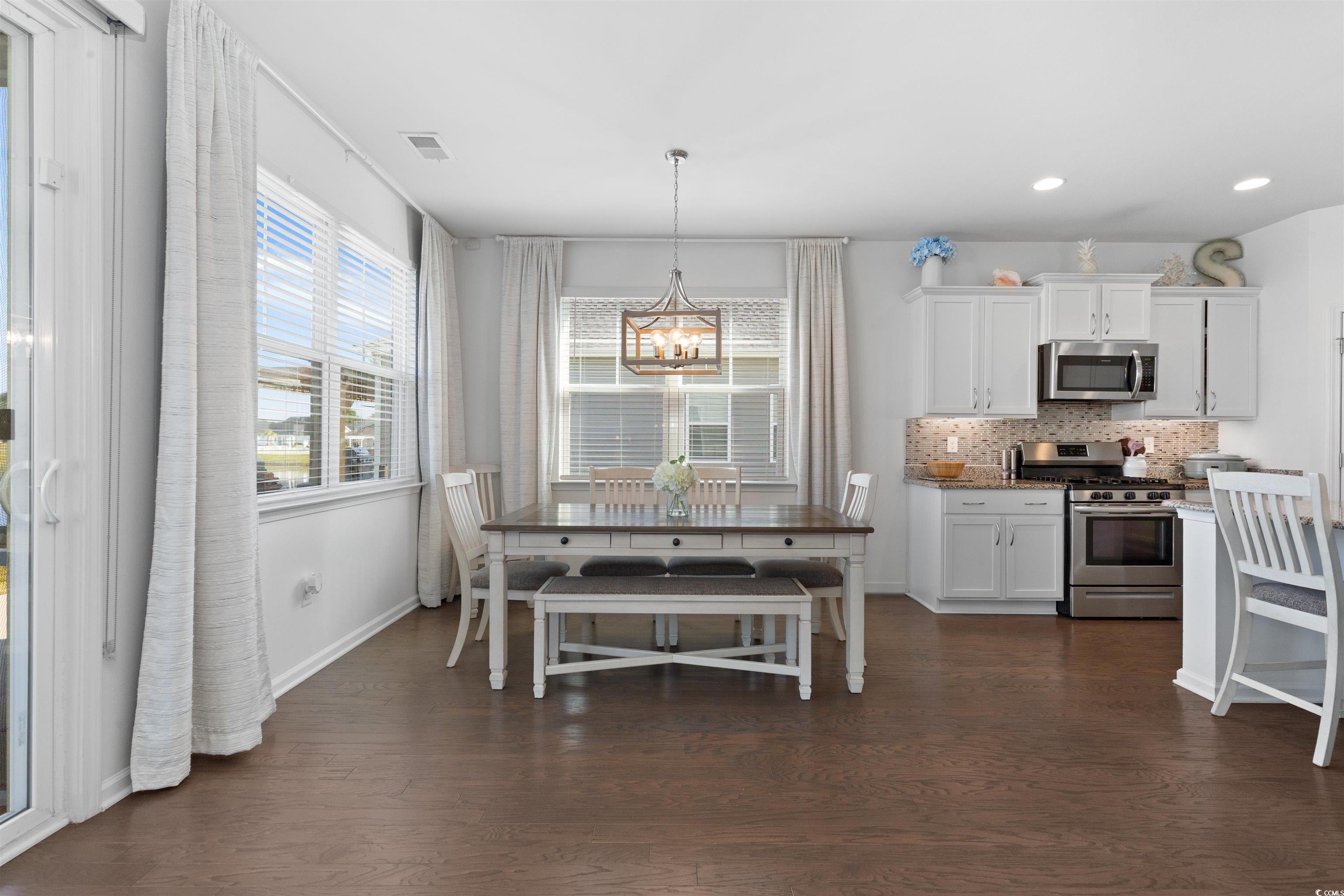 Golf-cart community just one mile from Surfside Beach! This attractive home sits on a rare pond lot within the double cul-de-sac of Ocean Commons Dr., offering added privacy with no home directly in front and a peaceful tree line view. Video link: https://www.instagram.com/p/DQMQkMzDYxz/ The Mackenzie II floorplan features all bedrooms upstairs with a spacious open living area on the main floor designed for entertaining. The primary bedroom is on the second level, featuring a cozy sitting nook, dual walk-in closets, and a beautifully updated bath. A loft upstairs provides additional living space or the option to create a fourth bedroom. Enjoy wonderful water views from the screened 12x12 porch overlooking the large pond. This move-in-ready home is loaded with upgrades: hardwood floors, granite surface countertops, stainless steel appliances, custom blinds, updated lighting and fixtures, expanded pantry, built-in cabinets, upgraded carpet and padding, hurricane shutters, and a new glass shower door. Exterior improvements include fresh landscaping, a restored lawn, and additional parking. Central air is electric, and the heat is gas, providing efficiency and comfort year-round. Surfside Beach is a true “golf cart community,” allowing you to ride to the beach, Surfside Pier, and local restaurants in minutes. Conveniently located near the Murrells Inlet Marsh Walk, the airport, Market Common, shopping, medical facilities, and all the entertainment the Grand Strand has to offer. With its rare pond setting, thoughtful upgrades, and unbeatable location, this home is a true coastal retreat.