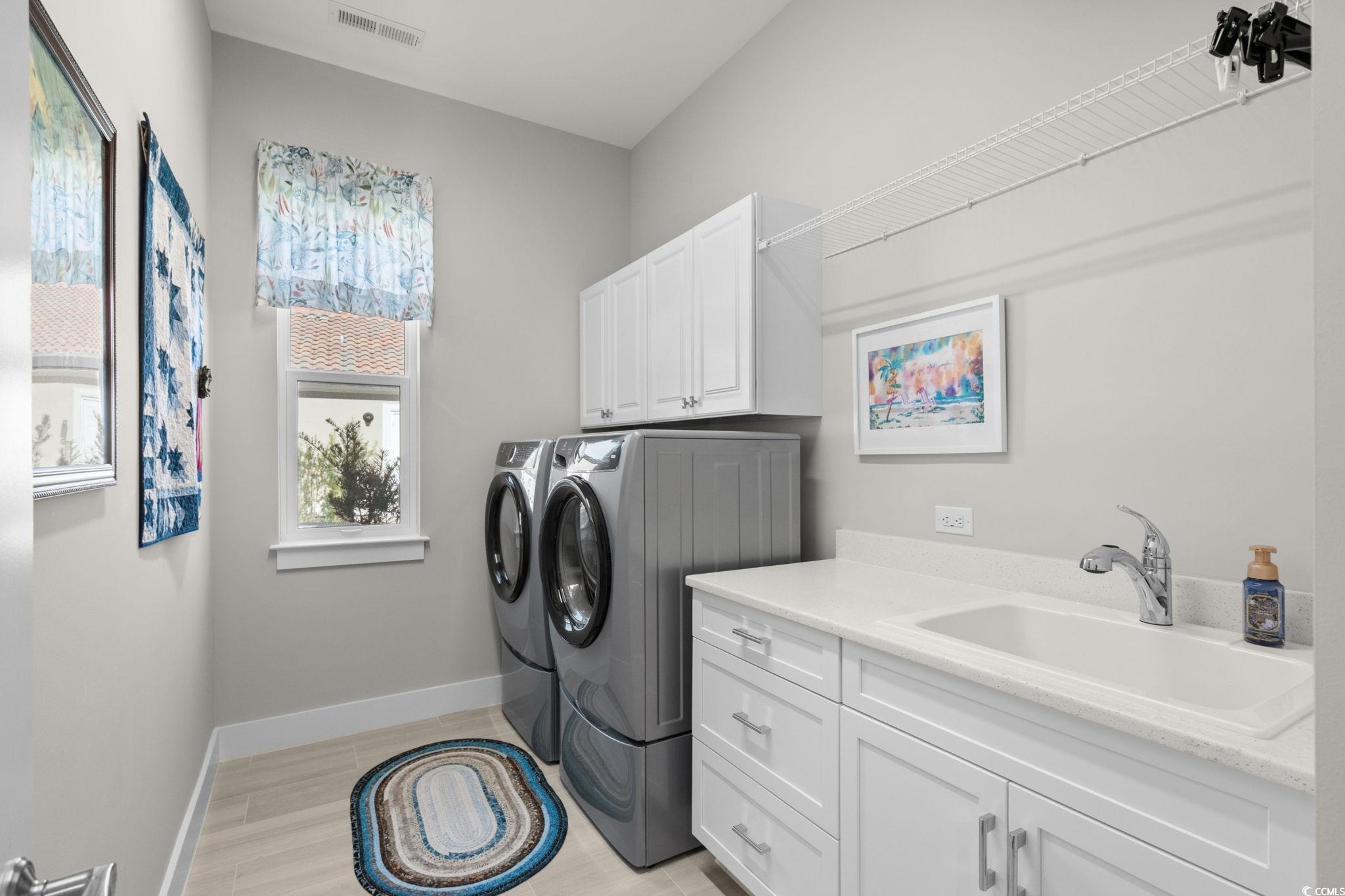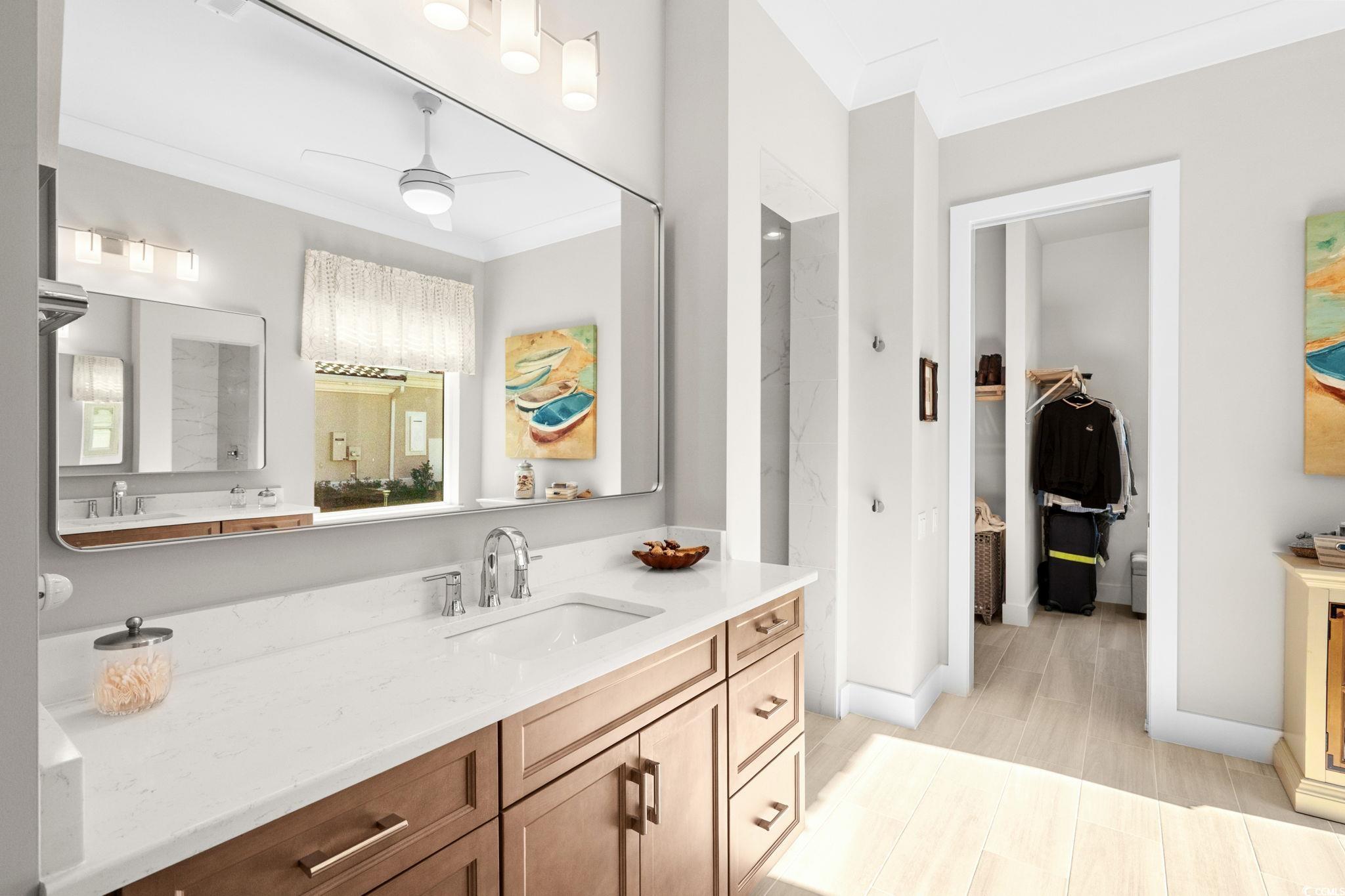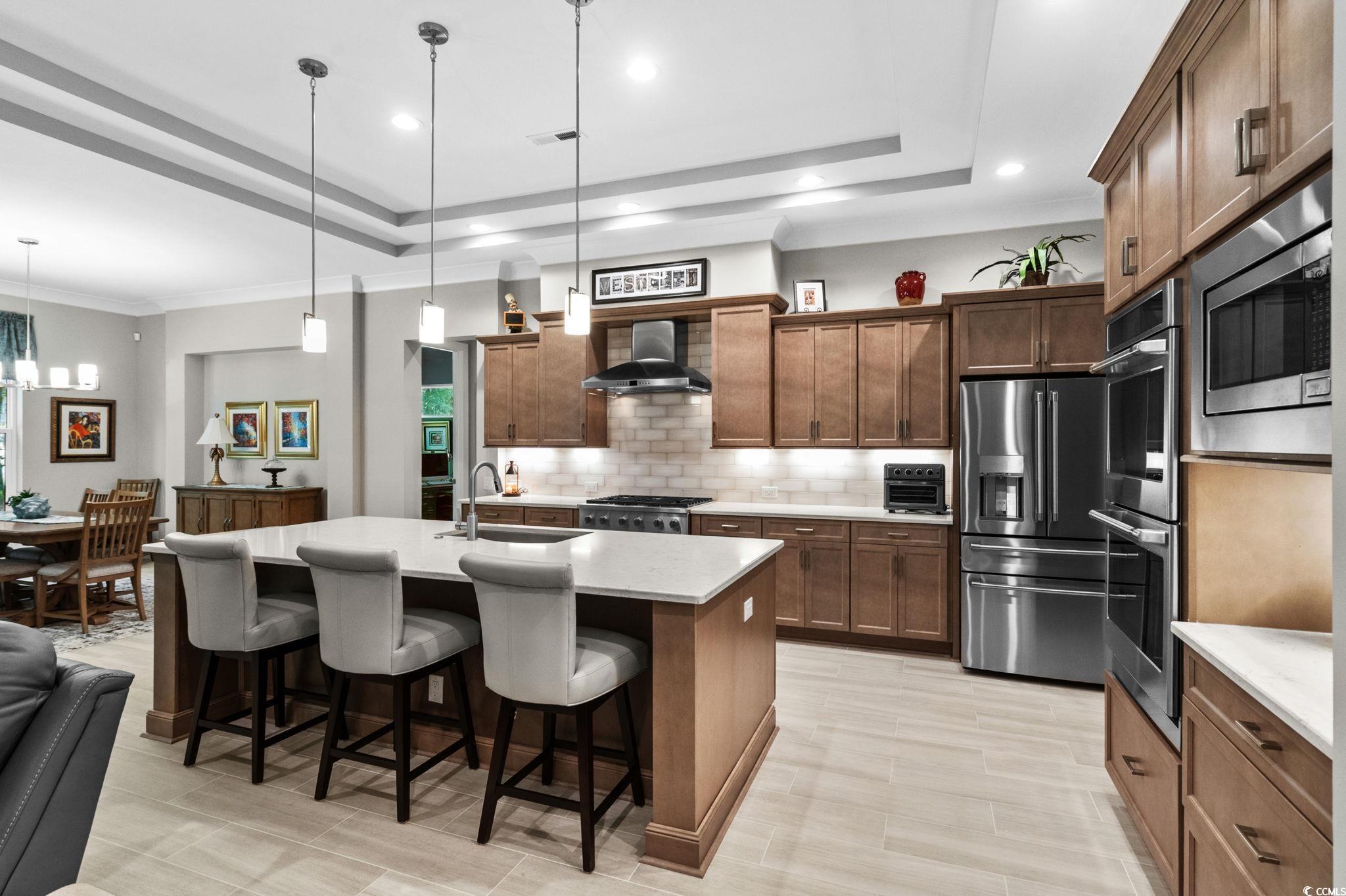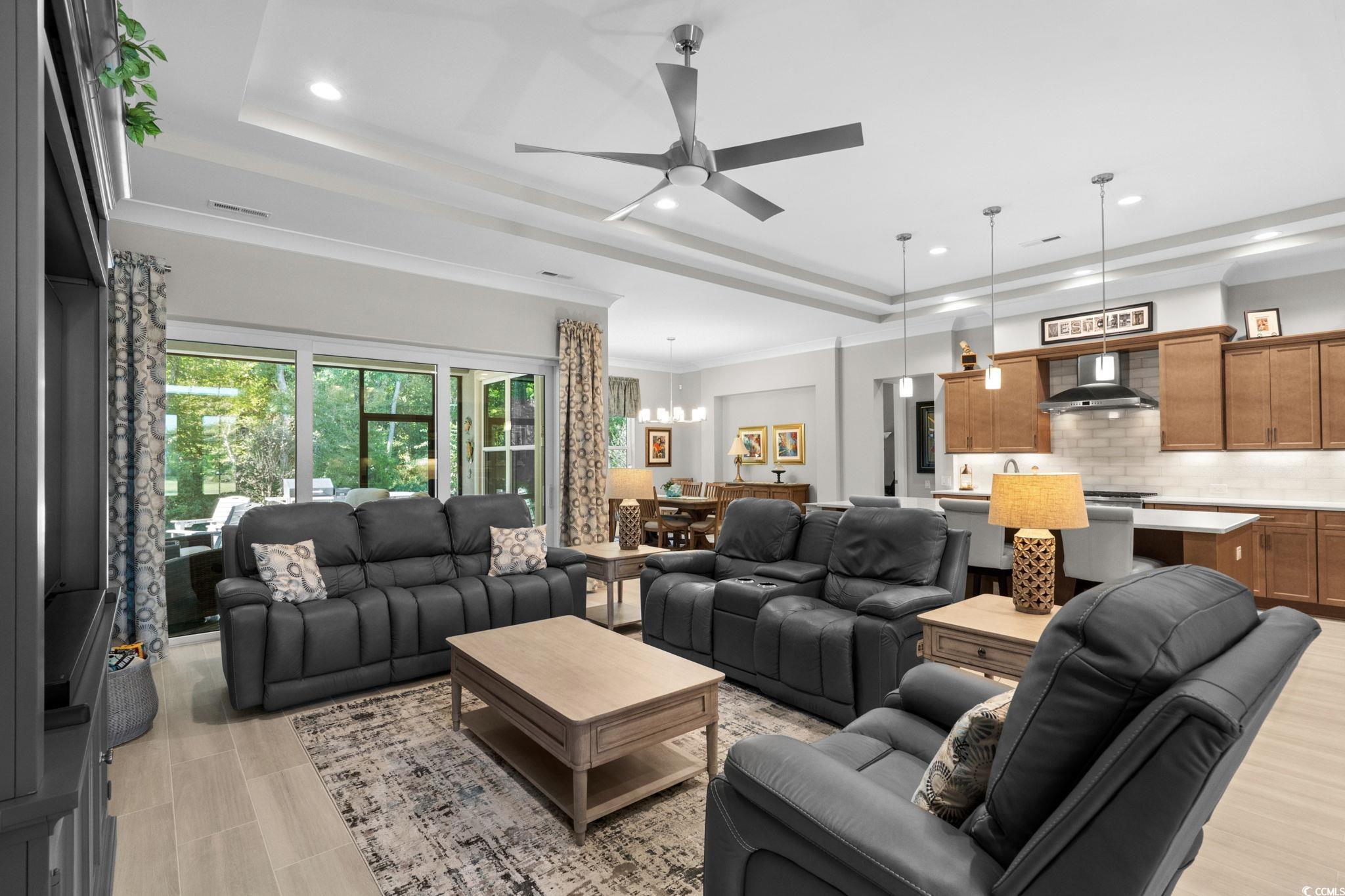 Discover your dream home in the prestigious Members Club Enclave at Grande Dunes. This practically new, custom-built residence offers a spacious and modern design with 4 bedrooms, 3 bathrooms, and a versatile den. Situated on a private wooded lot, this home features an open floor plan that seamlessly blends indoor and outdoor living. Enjoy thoughtful upgrades, including a Rinnai tankless water heater with recirculation system for energy efficiency, and a low-maintenance Leaf Filter system. The home boasts wood-look ceramic tile throughout, enhancing its sleek and contemporary aesthetic. Custom fixtures and Fanimation ceiling fans are installed throughout for added comfort, while upgraded landscaping with extensive lighting creates stunning curb appeal. Entertain effortlessly with a custom outdoor kitchen, oversized screened Lanai, and fully retractable triple sliders that open completely to connect indoor living with the outdoor oasis. Relax in the luxury saltwater spa after a long day of golf while enjoying your favorite beverage. The oversized 3-car garage features extra storage, epoxy floors and plenty of room for your golf cart. Located in Myrtle Beach’s prestigious Grande Dunes community, this 2,600-acre development offers luxurious living with top amenities. Residents enjoy the 25,000-square-foot Ocean Club, featuring fine dining, oceanfront pools, and daily activities. The community also includes two golf courses, a deep-water marina, tennis courts, and scenic trails. Don't miss this rare opportunity to own a nearly new CUSTOM home "over the bridge".
