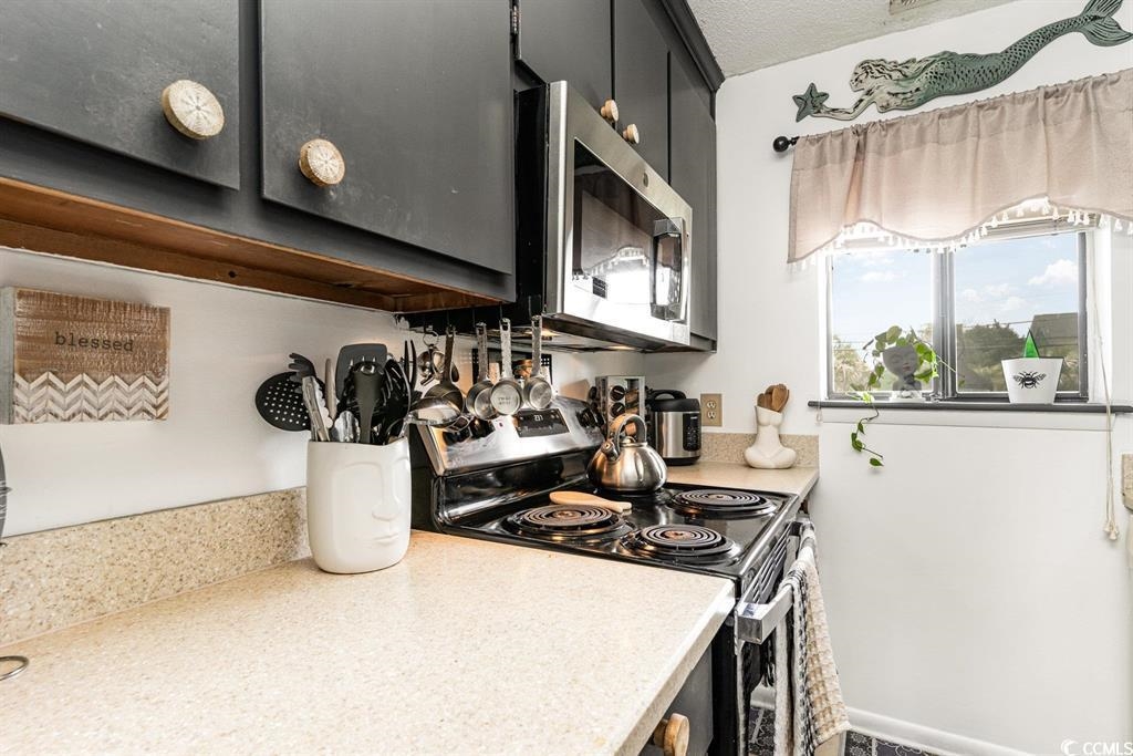 Income-producing one-bed lock-off, fully furnished ocean view, corner-unit condo. Owners' private entrance, Two blocks from the Ocean, This Coastal Setting has two decks front and rear, Kayak from your back deck of the community. A new water heater in 2022, a New window with an ocean view, and a new roof in 2021 were added. Come and enjoy your peace in Cherry Grove