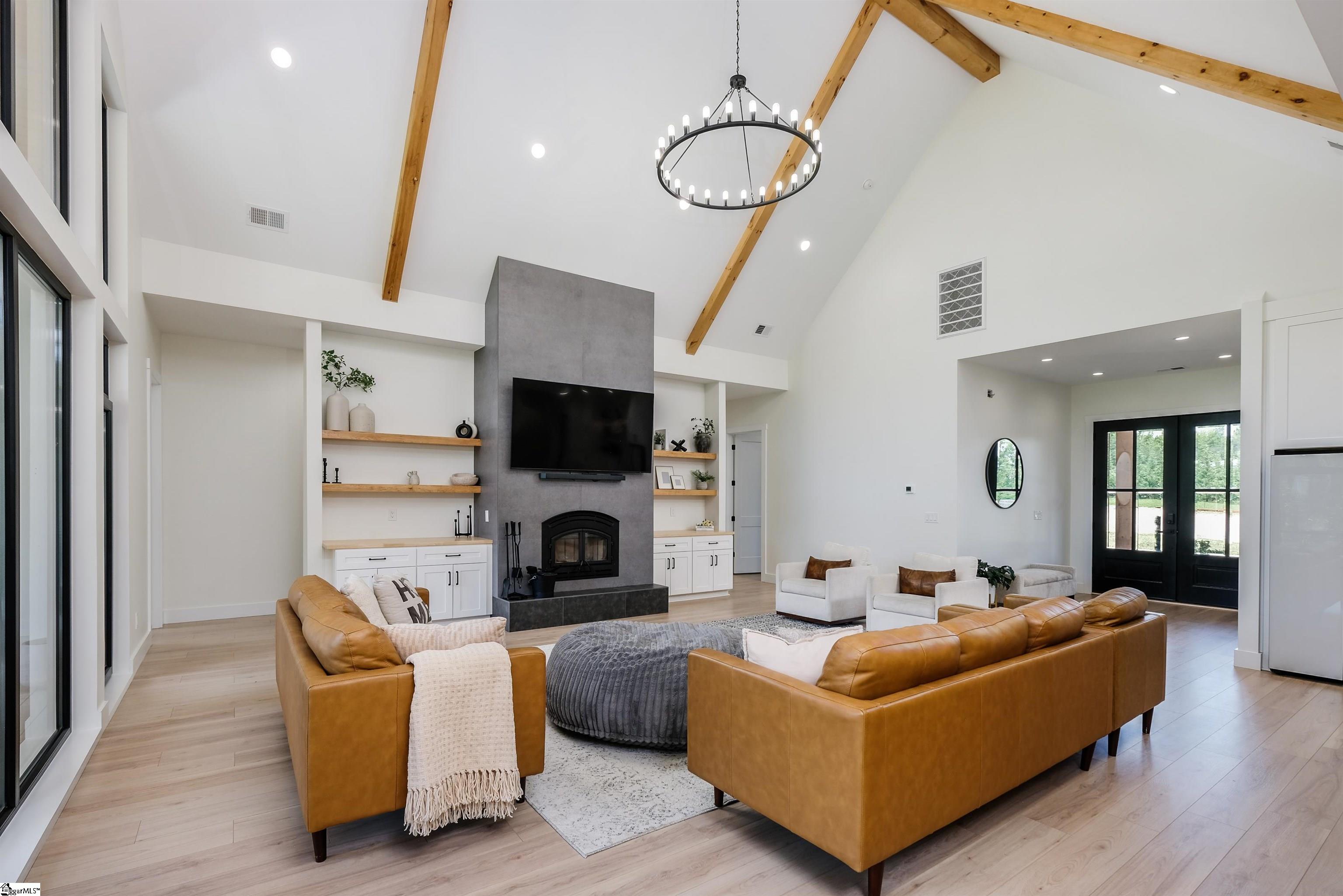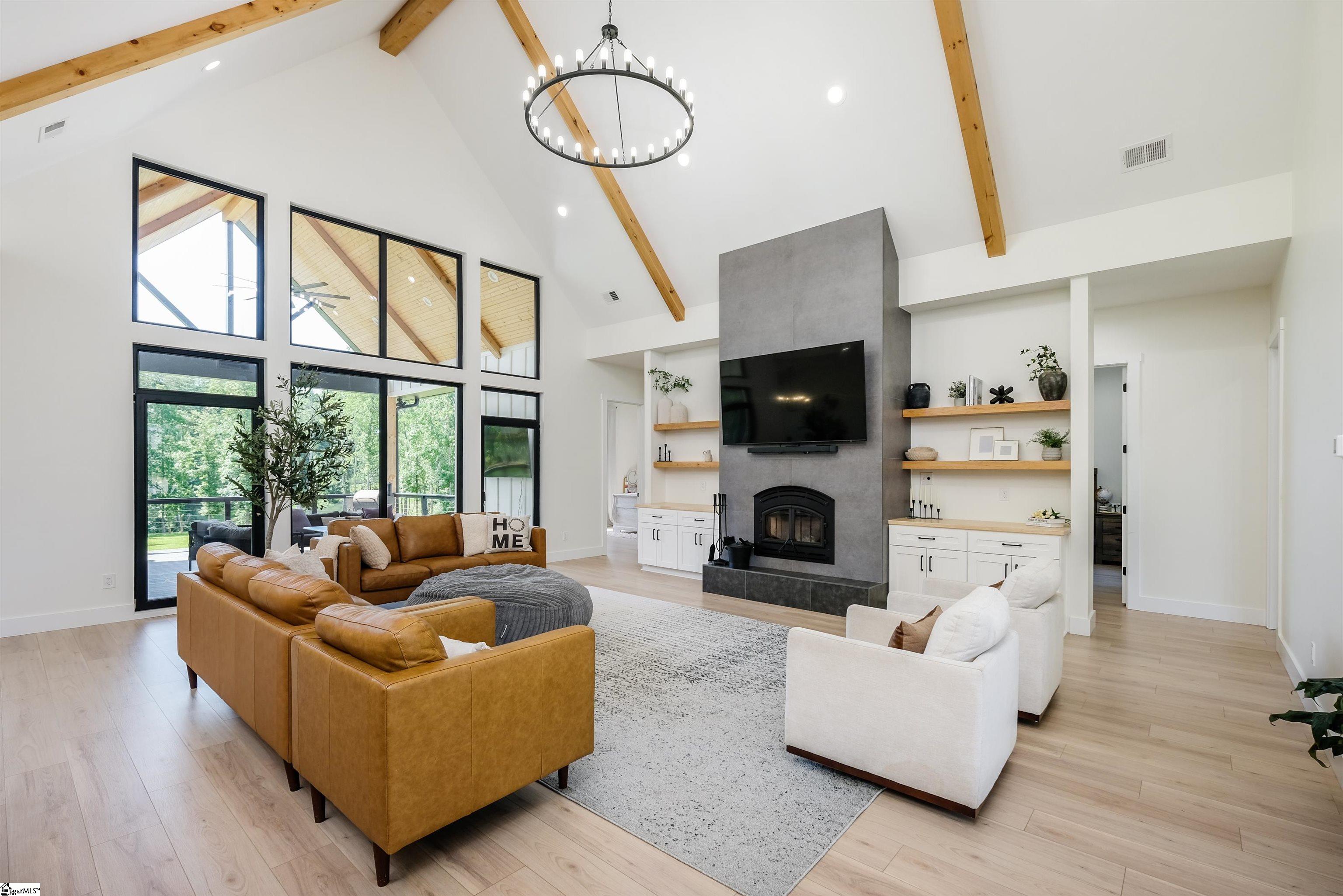 Your Private Retreat with Exceptional Features with agricultural zoning – A Rare Find Near I-26 & I-85! Welcome to a home that blends functionality, space, and serenity all in an unbeatable location. Bring your boat, long-bed truck, and more into your garage. This oversized garage offers generous room for everything you need. Step into the living room with soaring 22-foot cathedral ceilings and an eco-friendly wood-burning fireplace that warms much of the main level. The design offers a beautiful blend of openness and coziness—perfect for both entertaining and everyday living. The main bedroom also features cathedral ceilings, creating a peaceful, expansive retreat. This kitchen was built with both practicality and elegance in mind: a Gas stovetop, abundant drawer space, and a large walk-in pantry with shelving, outlets, and cabinetry. 10-ft quartz island with two sinks in your kitchen—one prep sink and one full-size sink—making it ideal for cooking and hosting guests. Split floor plan! The main floor includes: 4 spacious bedrooms, a dedicated home office, and 2.5 bathrooms. Upstairs, discover a private suite complete with a full bathroom and a large walk-in closet, offering the perfect space for guests or in-laws. The attic features a huge unfinished area with high ceilings—ready to become your dream home theater, game room, or additional bedrooms. It’s currently being used for storage, but the potential is wide open. A rare find for those who need a serious Shop: 30x60 fully insulated shop, including insulated doors. One door: 14x16; second door: 12x12; paved and covered RV parking area on the right side of the shop; additional covered storage behind the shop for tractors, lawn mowers, firewood, and more. The entire property is lined with Lilley Cypress trees for year-round privacy. At the back of the property, a clean, clear creek adds a peaceful, natural boundary. The covered back deck is an outdoor oasis featuring cathedral ceilings and a massive deck area for gatherings—the perfect backdrop for morning coffee or evening relaxation overlooking the beautiful forest. The property is shy of 6.5 acres! Truly move-in ready with standout features throughout, built in 2023! The home offers so much more, including well water and a generator plug-in. Schedule your private showing. City water is available on the street. Fiber Optic is connected to the home for fast internet. The shop has its own electric meter. Private Gate Entrance. Home qualifies for agricultural taxes.