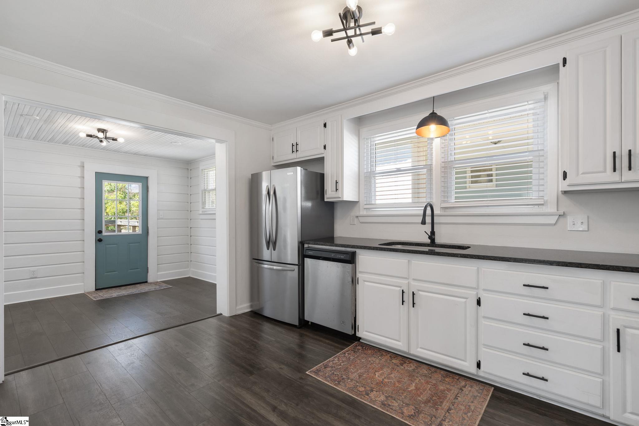 Discover effortless modern living in this beautifully updated single-story ranch, perfectly situated in Taylors in the desirable Cherokee Forest neighborhood. As you pull into the driveway, you'll immediately appreciate the curb appeal and thoughtful renovations that make this home truly turnkey. Step inside to an inviting open floor plan bathed in natural light, featuring gleaming refinished hardwood floors throughout. The heart of the home is a stunning kitchen boasting granite countertops, ample cabinetry, and stainless steel appliances—ideal for everyday meals or entertaining. This meticulously maintained 2-bedroom, 1-bath gem offers low-maintenance living with all the essentials refreshed for today's buyer. Location is unbeatable—just a short drive to vibrant downtown Greenville for dining, shopping, and entertainment AND downtown Greer. Don't miss this rare opportunity to own a move-in-ready charmer in a prime Upstate location. Schedule your private showing today!