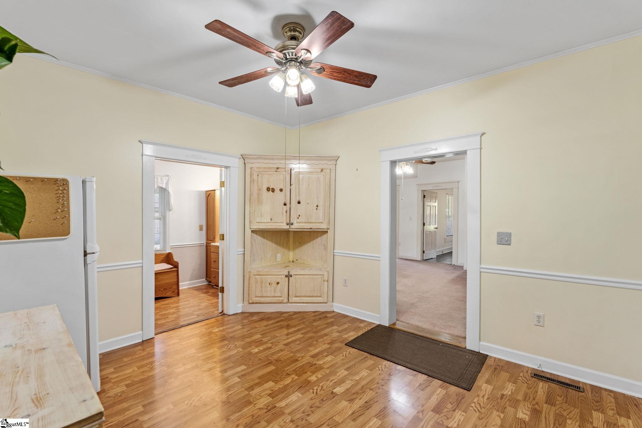 Nicely updated with a brand new roof and painted exterior plus fresh interior, this bungalow is ready for new owners! Set on just over an acre and fully fenced, this home features a spacious front porch, high ceilings, abundant natural light, and a cozy, yet functional layout that suits families and hobbyists. Highlights include a spacious laundry room, a screened-in side porch, and a back deck perfect for outdoor entertaining. The expansive grounds provide endless possibilities. With two garages and an additional, two-story storage shed, there's ample space for vehicles, tools, and hobbies. Rarely does a property of this size and character become available so close to downtown Greenville.