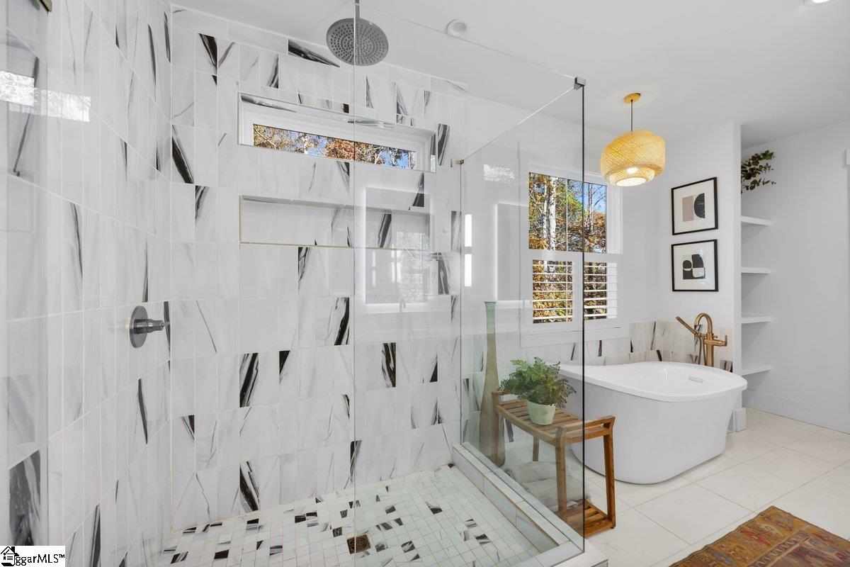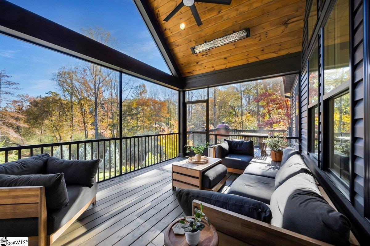 Welcome home to a unique oasis in the heart of chic Travelers Rest, SC with approximately 7 acres of privacy and natural beauty to cherish. Serenity abounds as you wind down the lengthy driveway with gorgeous water feature to a nearly new modern/craftsman home constructed in 2021 perched above immaculate grounds and breathtaking Upstate vistas. Step inside to be greeted by stunning hardwood floors throughout and an open concept that simply feels like home. Terrific floorplan seamlessly blends the great room, kitchen, and dining area to create a dynamic environment perfect for family and entertaining guests. Tremendous naturally light exposure produces a warm and inviting environment to enjoy the good life. Ever-desirable primary bedroom on main level features spacious dimensions and ensuite spa-like experience with garden tub and huge separate shower with rain head and convenient dual vanities along with massive walk-in closet. Nearby you will find the dedicated laundry room perfectly situated just inside the 2 car garage and steps from the primary bedroom and kitchen. Family and friends will love the kitchen space boasting quartz countertops and the latest trend of matching panel appliances and center island with well-positioned dining space. Voluminous vaulted ceiling, wall of windows with "wow" views overlooking the pristine pool and hardscape , and gas log fireplace are all yours from within the great room. Step outside and bring nature just a bit closer to appreciate your evening wine or morning coffee from the screened porch with dual overhead heaters or keep flowing to the open deck space providing some of the most dramatic views that you could dream of. Your jaw will drop when you behold the celebrity-level pool, hardscape, outdoor fire pit, and sodded manicured grounds. There is simply nothing like it on the market today. Back inside, the highly functional floorplan provides excellent separation with a 2nd guest bedroom on the opposite side of the main level with hex tile bathroom and the latest color palette. The story continues as you transition to the finished basement level where you are greeted by a secondary kitchen along with massive bonus room perfect for a a variety of uses exhibiting the same spectacular views as the main level. Sliding glass doors off the bonus room pull you outside to an additional covered patio and lead the way to the saltwater pool and fire pit straight out of a magazine centrally located within 7+/- majestic acres. Words cannot describe how well this space is tied together and how good life can be having all of this at your fingertips! Continuing within the finished walkout basement, you find tons of storage space and access to mechanicals adding to the functionality and ease of living. 2 additional bedrooms, one of which currently being used as a home office, share the third full bathroom featuring its own cedar sauna and walk-in standup shower. This floorplan is simply one of the best in terms of living big while simultaneously being efficient. Minutes to Main St in Travelers Rest where some of the hidden gems of the local shopping and dining scene are located as well as access to the famed Swamp Rabbit Trail and a short drive to downtown Greenville. This property represents incomparable value for anyone seeking a phenomenal lifestyle defined by privacy and convenience without the oversight of an HOA. Enjoy life as it was meant to be lived from this nearly new home in turnkey condition ready for your memories. Don't miss your opportunity own one of the most special properties available in all of Greenville county!