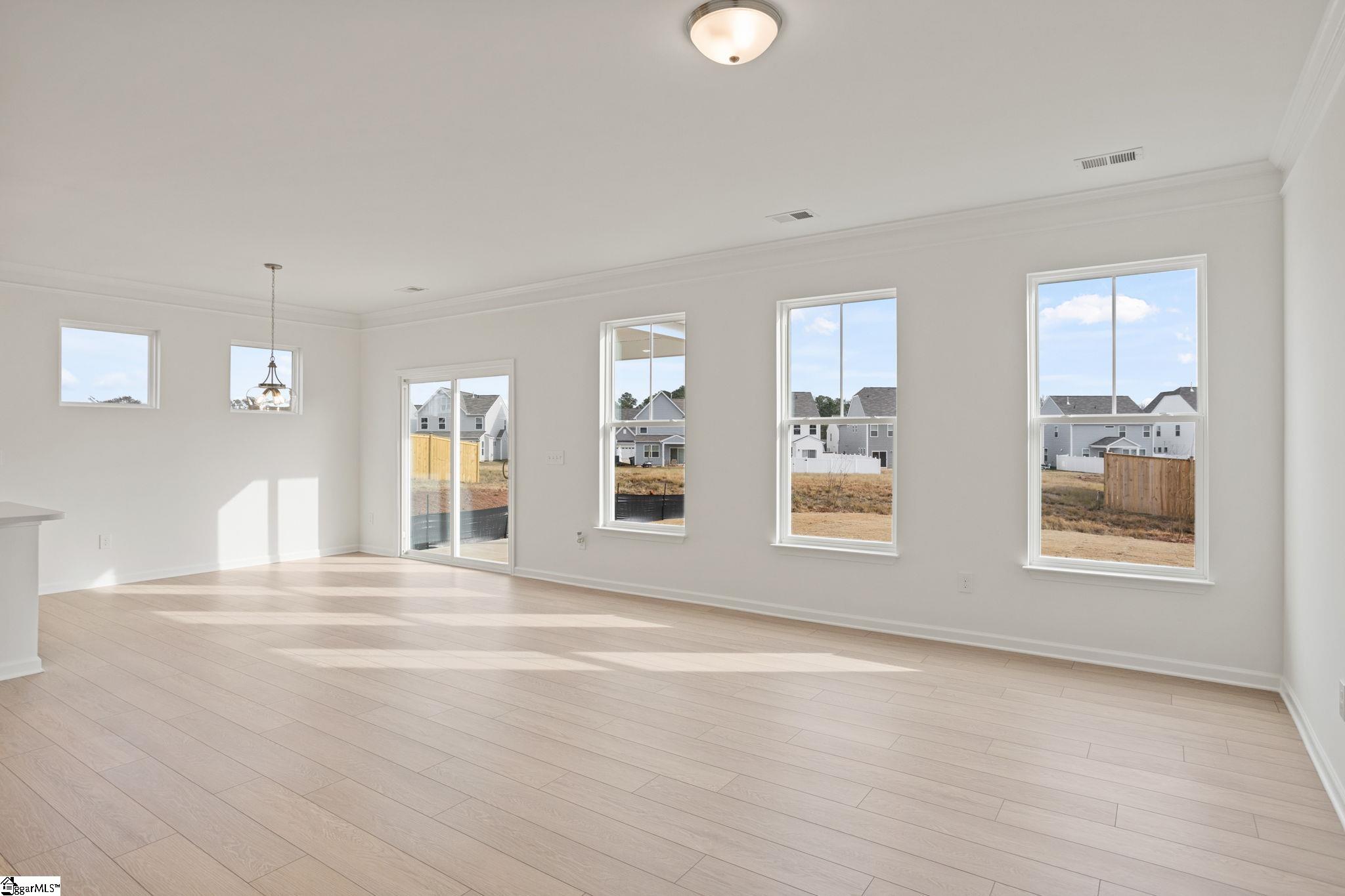 New construction home featuring 3 bedrooms, 2.5 bathrooms, a study, and a covered porch. A defined foyer welcomes you at the entry and leads into an open-concept kitchen, eating area, and great room. The main living areas are located at the back of the home for added privacy and comfort. The great room features large windows, and the eating area includes a 6-foot glass door, bringing in abundant natural light. The kitchen is equipped with upgraded cabinetry, quartz countertops, a tile backsplash, LED disc lighting, a walk-in pantry, and stainless steel appliances. An open stair rail leads to the second floor, where you'll find the primary suite, three additional bedrooms, a hall bathroom, and a laundry room. The primary suite is located at the rear of the home, offering a peaceful setting. The primary bathroom includes a tiled walk-in shower and dual sinks. All bathrooms are finished with quartz countertops. Additional features include enhanced vinyl plank flooring, upgraded lighting, plumbing, and trim packages, a structured wiring system, and a built-in pest control system. The garage is finished with drywall, paint, electrical outlets, and lighting.