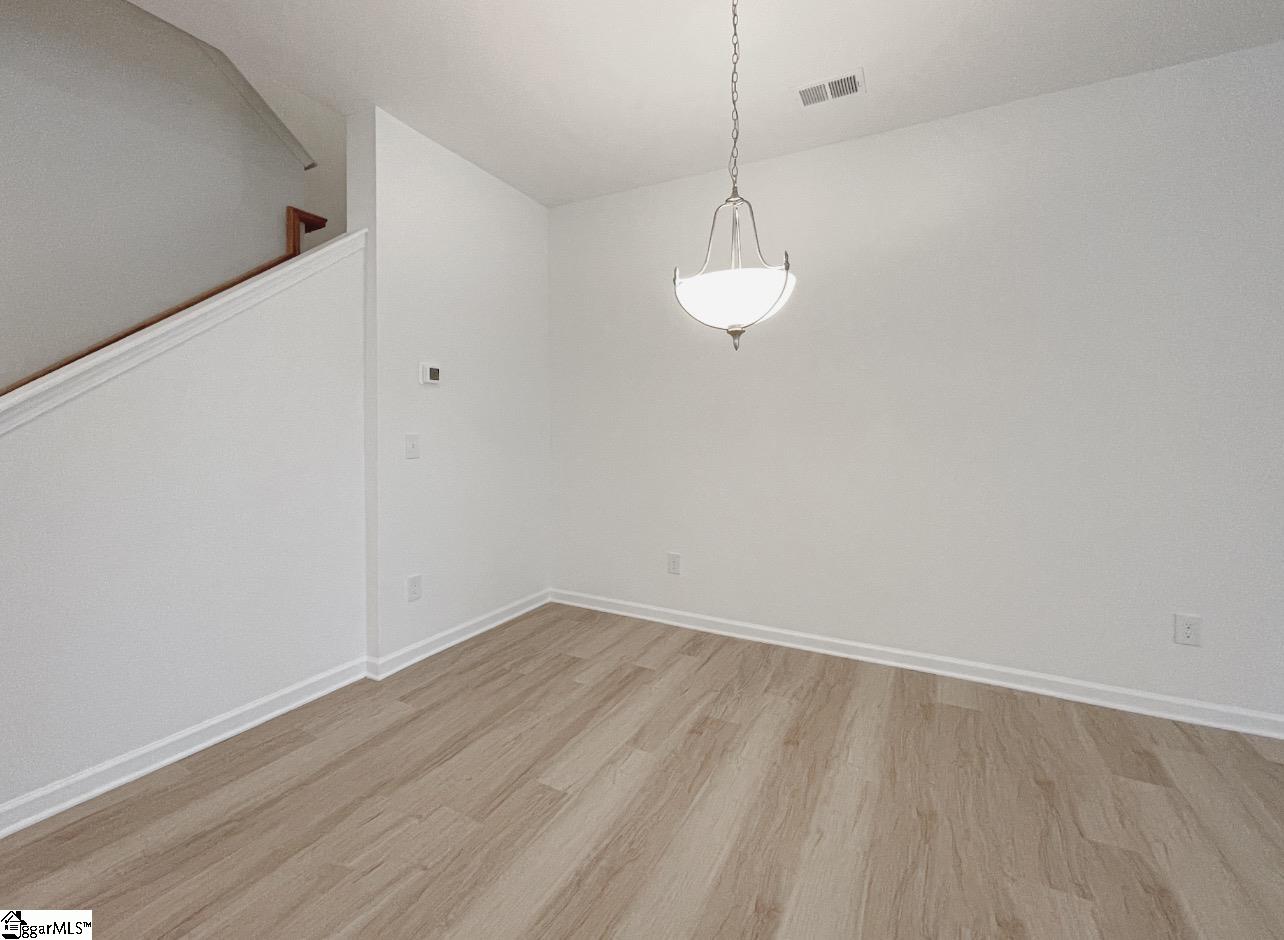 New construction featuring 3 bedrooms, 2.5 baths, and a 1-car garage. The main level offers an open floor plan with a foyer leading into the kitchen, dining area, and great room. The kitchen includes LED lighting, upgraded cabinetry, tile backsplash, granite countertops, and stainless-steel appliances. Upstairs includes a loft, walk-in laundry room, hall bath, and three bedrooms. The primary suite located at the back of the home, features a tiled shower with dual sinks. All bathrooms have quartz countertops and upgraded cabinets. Durable EVP flooring is installed in the main living areas, with carpet in the bedrooms. Additional features include structured wiring, built-in pest control system, and a finished garage with drywall, paint, lighting, and electrical outlets.