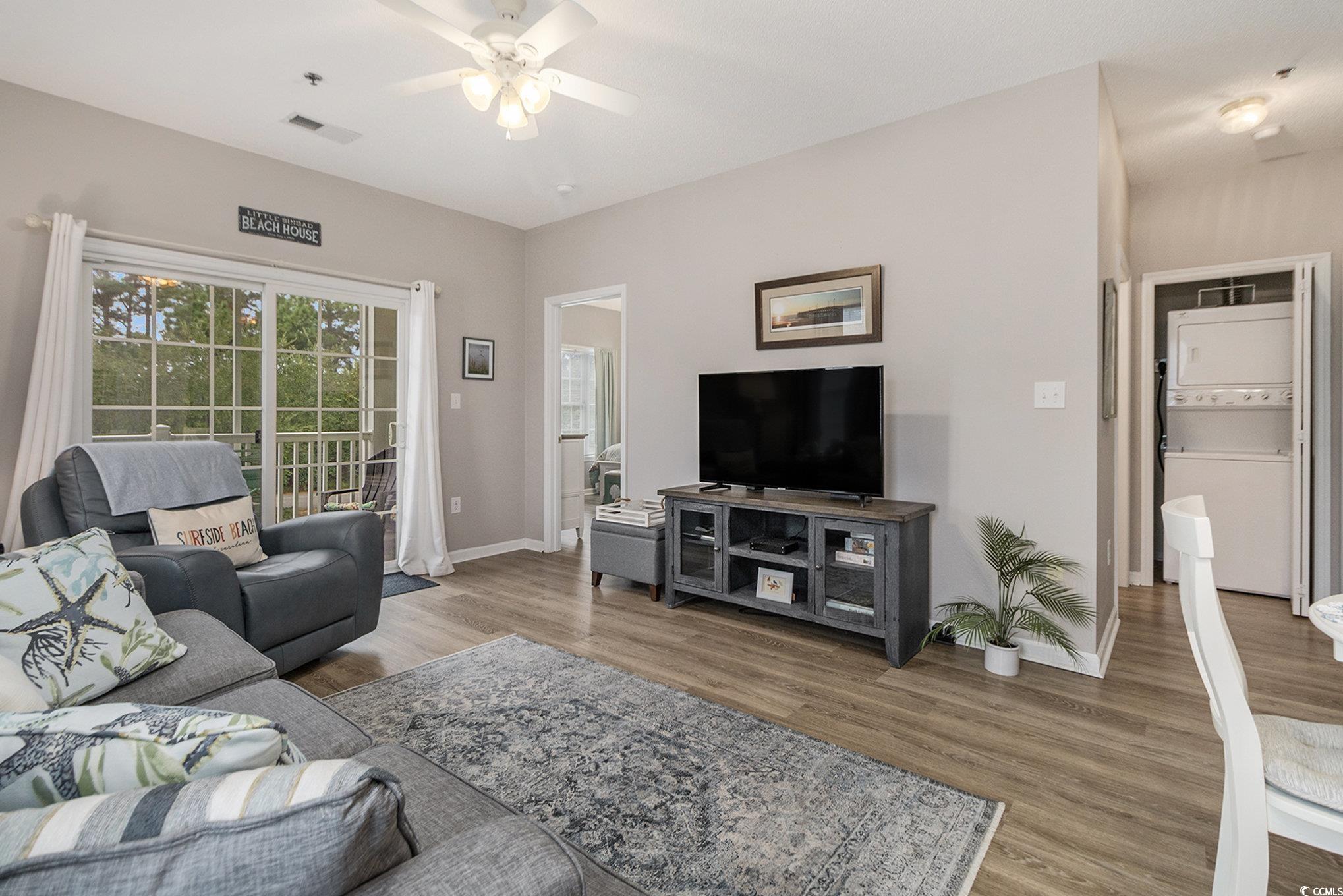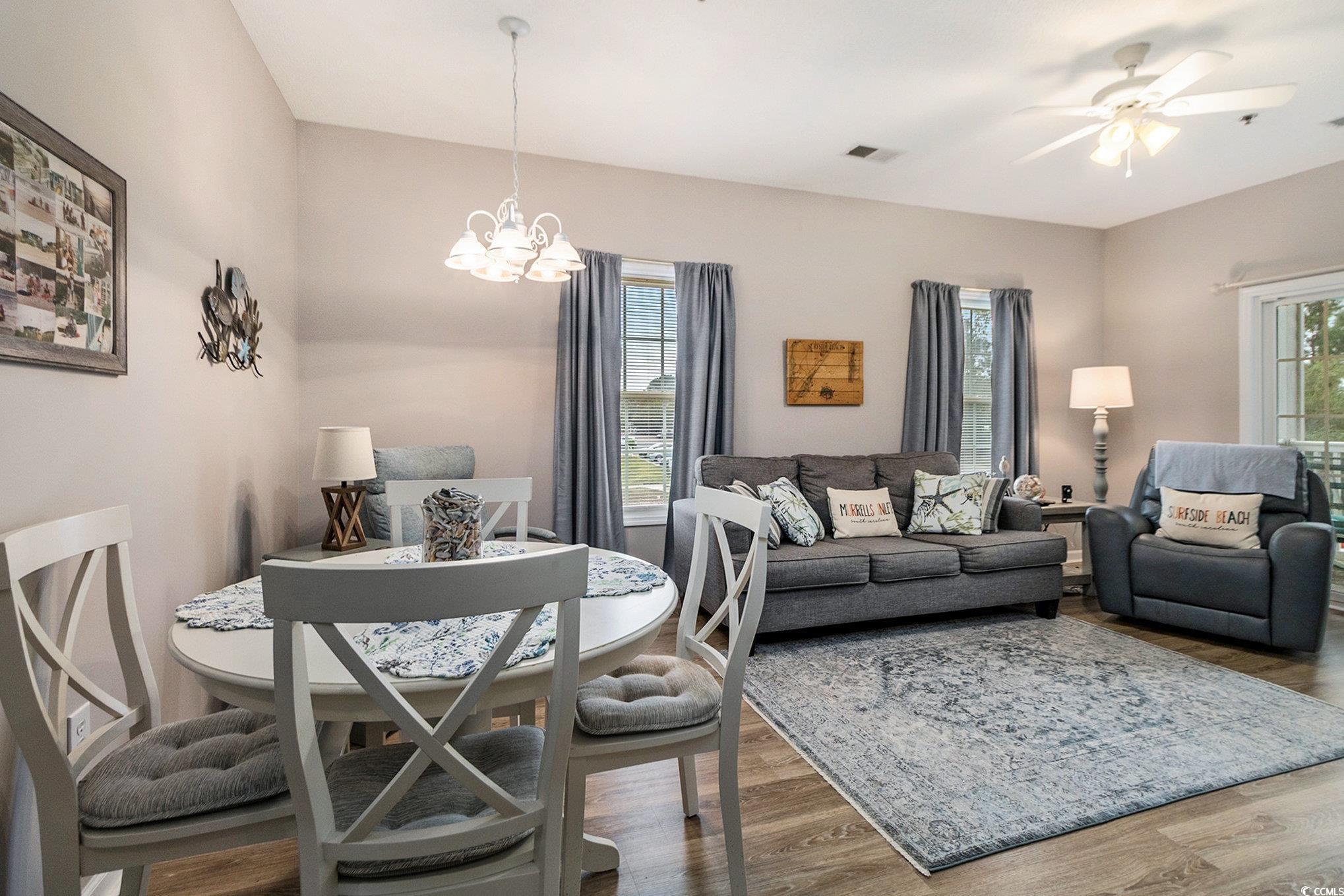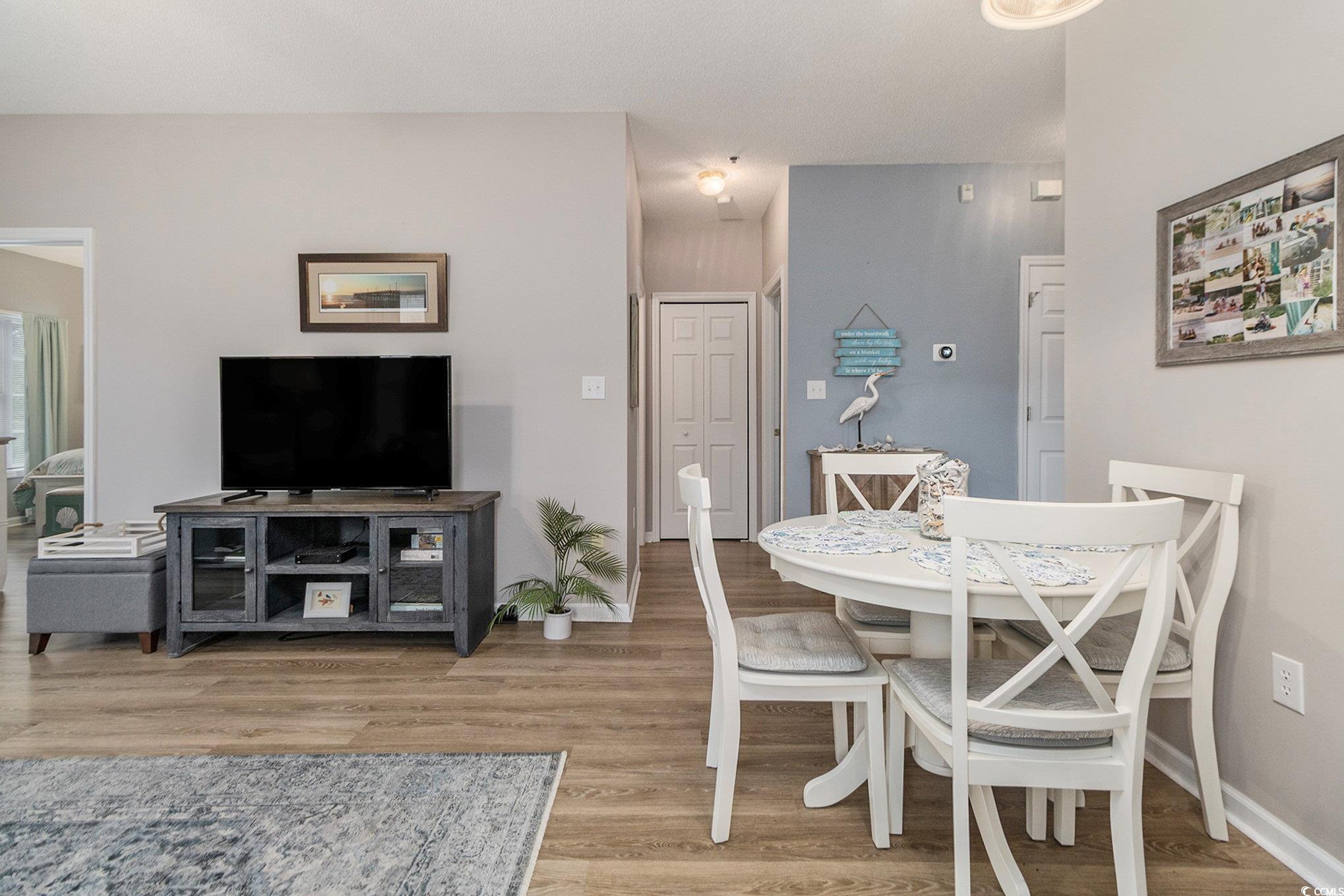 Welcome to your perfect beach retreat! Located in the popular Maddington Place community in Deerfield, this gorgeous 2 bed 2 bath end unit condo has been updated with new furniture, new LVP flooring, and a new HVAC in 2023. Delightful coastal accents and cozy furniture give the unit a wonderful cottage feel, and abundant windows provide fabulous natural light throughout. Open floor plan boasts a spacious living room with direct access to the balcony, dining area with seating for four, and a fully equipped kitchen with a double sink plus tons of cabinet and counter space and a pantry. The master suite features a walk-in closet and bath with extended vanity and tub/shower. A nice sized second bedroom off the foyer has plenty of closet space as well and the second bath has a vanity and shower. The expansive screened balcony provides the perfect spot to enjoy your morning coffee or gather with friends and sip cocktails at the end of the day. In addition, there are ceiling fans in the living room, both bedrooms and the balcony, a stack washer and dryer and an owner's storage closet in the hallway beside the unit for beach and golf equipment. Amenities include an outdoor pool, a covered picnic area with tables and barbecue grills for family get togethers. The community is East of 17 bypass and convenient to restaurants, shopping, golf courses, the Marshwalk, the airport, Market Common, and Myrtle Beach State Park plus only minutes to the ocean and all the attractions and entertainment the Grand Strand has to offer. Whether you are searching for permanent residence, investment property or a dream vacation getaway, this is a must see! Make an appointment to view this charming condo today!