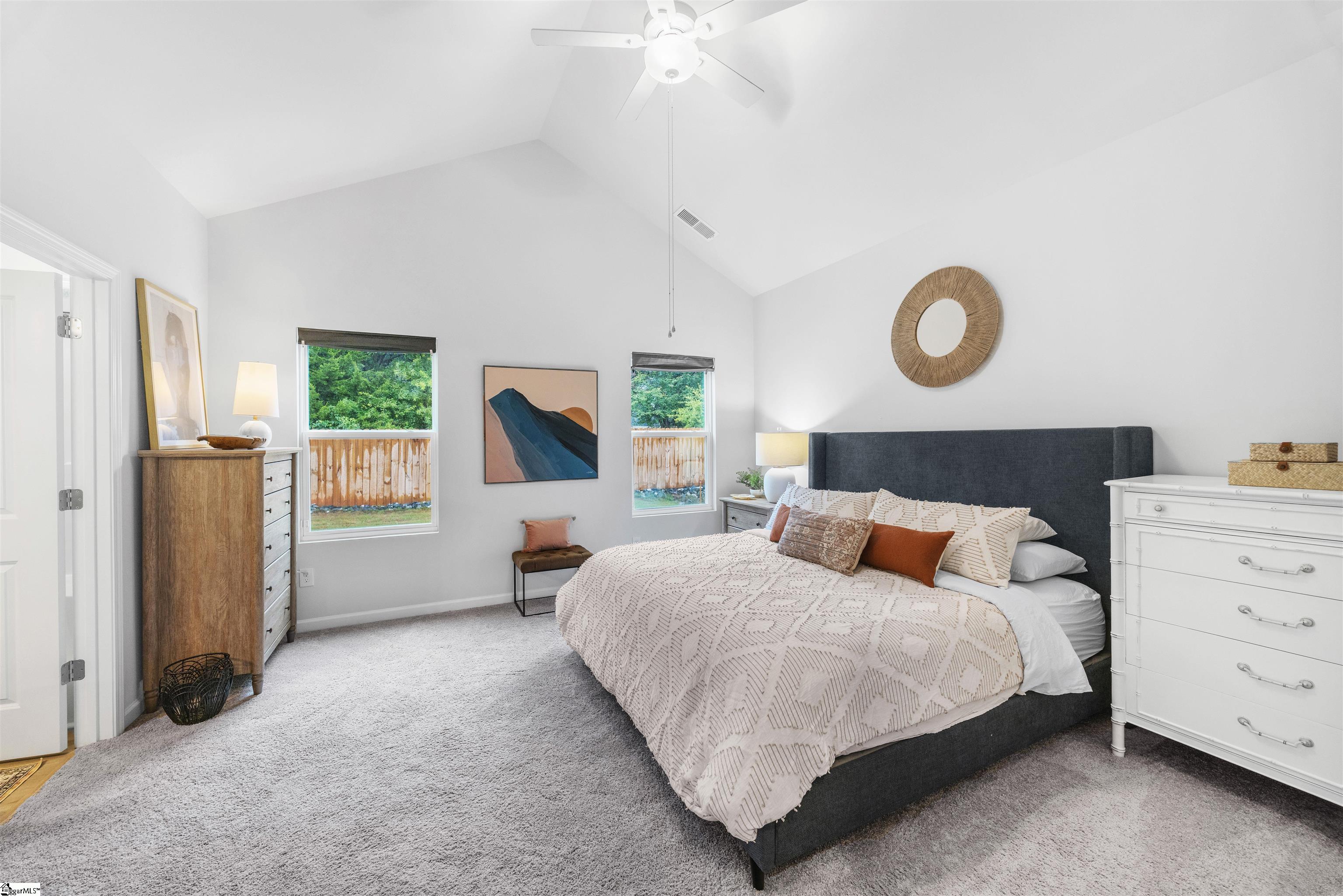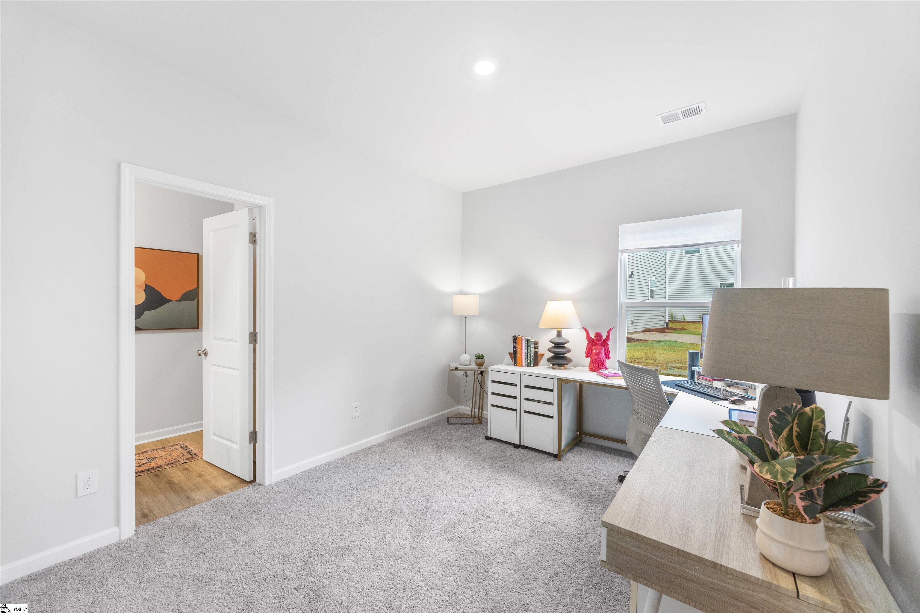 This nearly new, move-in ready Brunswick floor plan located in a beautiful gated community with a pool, cabana and pickleball court awaits you! This stunning well-designed home features 3 bedrooms, 2 bathrooms, and a versatile flex space that can be used as a dining room, office, reading room or den. With 9-foot ceilings, luxury vinyl plank flooring, quartz countertops, and an open-concept design, the space feels bright and inviting thanks to an abundance of natural sunlight streaming through the windows. The spacious primary en-suite boasts a large walk-in closet, a luxurious bath complete with dual elegant quartz vanities, a shower with seat and transom window, and a linen closet. You can enjoy outdoor living on the covered patio and appreciate the privacy provided by the fenced backyard or relax on the covered porch. This beautiful home offers both comfort and convenience and it is perfectly positioned steps from the community amenities and minutes from shopping, restaurants and downtown Spartanburg. Don’t miss the opportunity to make this your forever home. Schedule your appointment today!