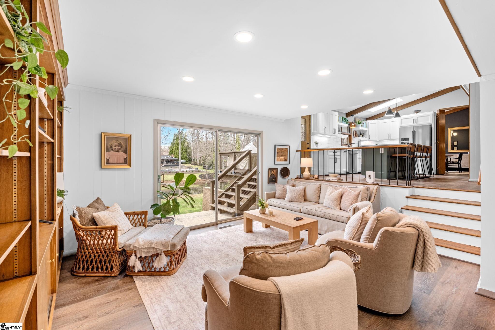 207 Asbury Circle, Easley, SC isn’t just a home, it’s where extraordinary living begins. This stunning mid-century modern retreat offers 5 bedrooms, 3.5 baths, and just under 4,200 square feet of thoughtfully designed living space, set on 1.46 acres with a rare spring-fed pond. Lovingly transformed over the past year, the homeowners elevated an already solid foundation into a true showcase property, blending timeless character with modern comfort. Though they envisioned this as their forever retirement retreat, the pull of children and grandchildren now opens the door for you to step into what was meant to be their dream home. Inside, you’ll find the perfect balance of preserved character and modern comfort. The living and dining rooms feature stunning hardwood ceiling beams that highlight the home’s timeless mid-century appeal. The dining room opens seamlessly onto a private deck with stunning sunset views, creating a natural extension of your living space and setting the stage for effortless indoor-outdoor entertaining. The layout offers both openness and flexibility, including a welcoming sitting room and a spacious family room designed for everyday living. The kitchen is where form and function beautifully collide. Designed to exceed expectations, it features updated cabinetry, quartz countertops, stainless steel appliances, and exceptional pantry storage. The signature wood beams continue here, adding warmth and architectural continuity, while natural light floods the space, creating an inviting atmosphere perfect for both quiet mornings and lively gatherings. The primary suite is a sanctuary of its own, featuring a walk-in closet designed for the true clothing and shoe connoisseur. One additional bedroom is currently styled as a home office, offering flexibility for remote work or creative pursuits. In addition, you’ll find a private guest suite with its own full bath and separate entrance provides ideal accommodations for visitors, extended family, or even potential rental income. The lower level is made for gathering, featuring a spacious entertainment room with custom built-ins and one of two cozy fireplaces, creating the perfect ambiance for movie nights or relaxed evenings at home. Charming and convenient touches, like a laundry chute and a beautiful bay window, add both personality and function, while abundant storage throughout makes organization effortless. The home is also prepped for a whole house generator, offering added peace of mind and convenience. Step outside and experience your own private retreat. A spring-fed pond just beyond the backyard invites peaceful mornings fishing from your dock or drifting in a flat-bottom boat. The fenced side yard offers a safe haven for pets while still allowing ample space for entertaining, hosting, and watching kids play. And when it comes to hosting, this home truly shines. With a layout designed for seamless flow, the current owners comfortably entertained 60+ guests with ease. Enjoy the best of small-town living in Easley, South Carolina, where affordability, convenience, and natural beauty come together. Located near the Blue Ridge Mountains, you’ll love easy access to hiking, waterfalls, lakes, and the popular Doodle Trail. Local parks and a charming downtown filled with specialty shops, restaurants, a theater, and everyone’s favorite hangout spot, “The Silos”. Pickens County public schools are highly rated (A- on Niche), and you’re just 20 minutes to downtown Greenville and 25 minutes to Clemson University. Whether you’re a young professional, growing family, outdoor enthusiast, or retiree, this location offers the perfect balance of peaceful living with city access nearby. With spaces designed for both quiet moments and lively gatherings, 207 Asbury Circle is more than a house, it’s the backdrop for your next beautiful chapter. Call for your viewing today.