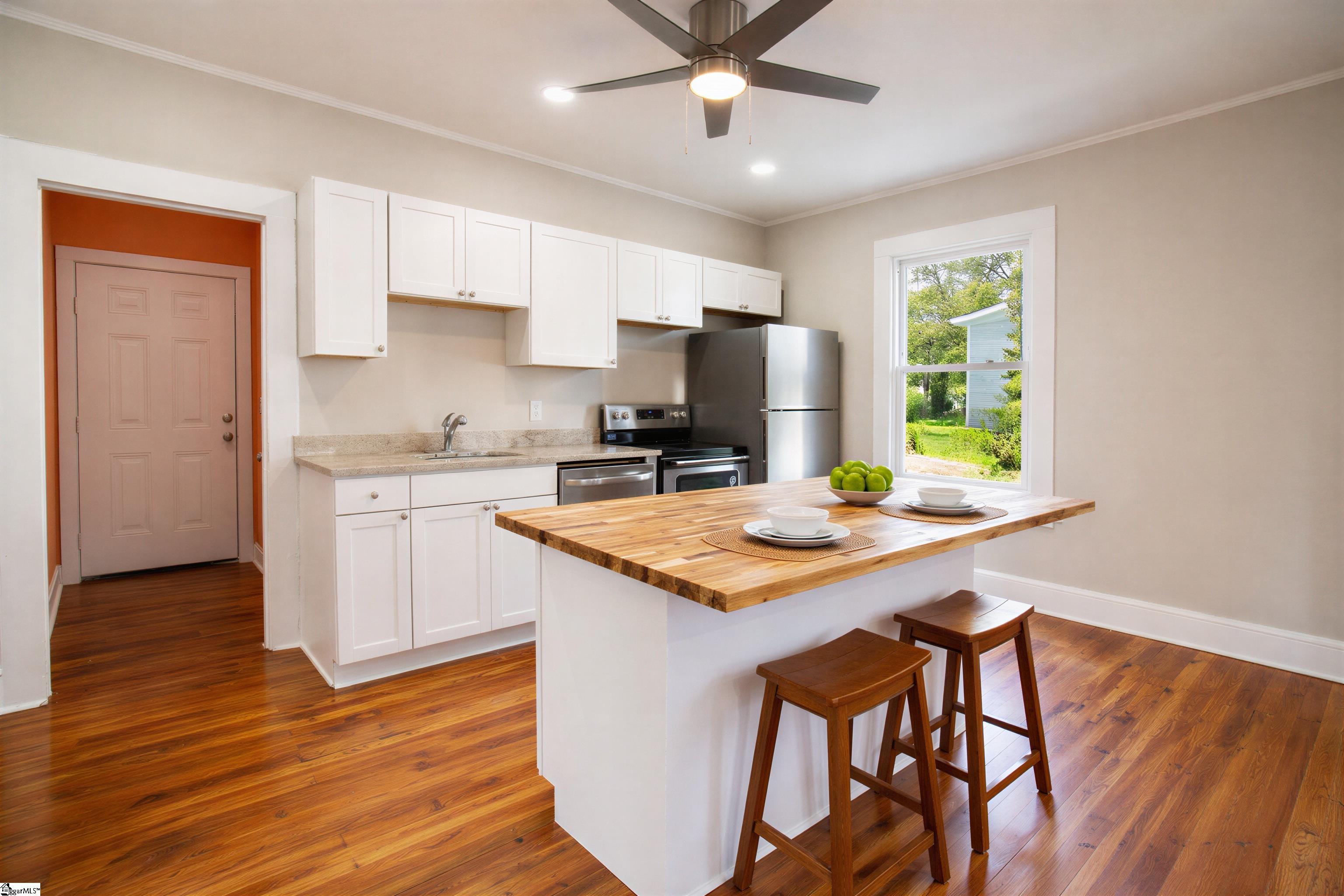 Listing price is below the appraised value! Seller is offering a credit for a 90 sq ft back deck/porch! Discover this charming Greenville mill home, ideally located “On the Trail” beside the exciting new Union Bleachery redevelopment in Sans Souci. This home blends historic character with modern updates, offering comfort, style, and peace of mind. Major upgrades include fully updated electrical and plumbing systems, a new water heater, and new HVAC, making this property truly move-in ready and low-maintenance. Inside, you’ll find a bright, open floor plan with high ceilings, a spacious kitchen island, and thoughtfully designed living spaces perfect for both everyday living and entertaining. A large 20x30 outbuilding offers exceptional flexibility—ideal for storage, a workshop, a studio, or a hobby space. Enjoy walkable access to the highly anticipated “On the Trail” development, part of a transformative 240-acre mixed-use redevelopment featuring a planned 2.2-mile Swamp Rabbit Trail extension, new commercial, residential, and hospitality offerings, and 100 acres of greenspace. Conveniently located just 12 minutes from downtown Greenville and Travelers Rest, and under 8 minutes from Furman University, this home offers unbeatable access to the area’s top destinations. Whether you’re seeking a low-maintenance lifestyle, a smart investment, or a charming place to call home, this unique property delivers exceptional value, character, and long-term potential. Listing includes some virtually staged photos.