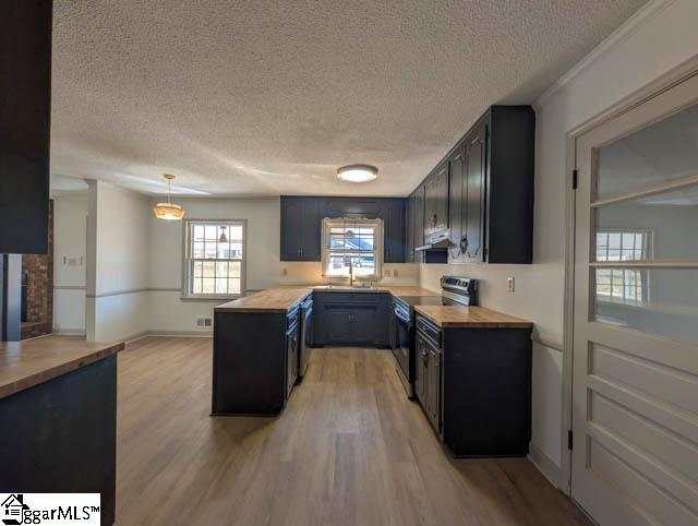 3 bedroom, 2 bath split-level home on a large, open lot with mature trees and strong curb appeal, freshly painted inside and out and completely move-in ready. The main living area features durable LVP flooring and a brick wood-burning stove as a focal point, flowing into an updated kitchen with new stainless appliances, painted cabinetry, and expansive butcher block countertops offering generous prep space and storage. The bedrooms are well-sized, including a large primary suite, and both bathrooms feature butcher block vanities and updated fixtures for a cohesive, modern look. The split-level design provides additional flexible living space ideal for a second den, office, or recreation area. Enjoy the screened-in back porch overlooking the spacious yard, plus a two-car garage with dedicated workspace for storage, tools, or projects.