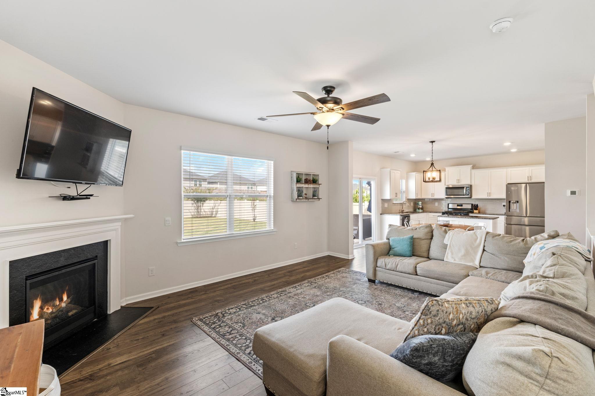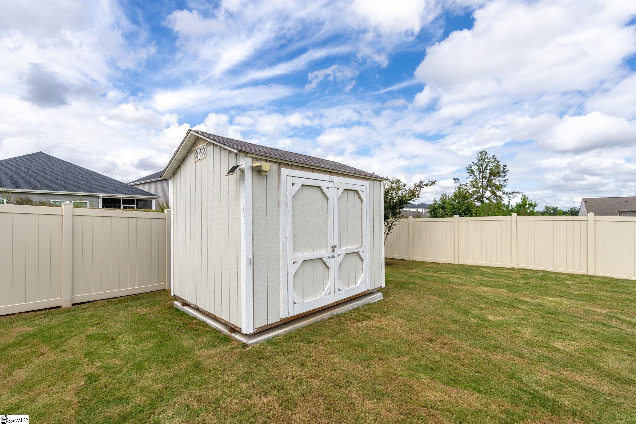 Welcome home to this beautifully maintained four-bedroom residence in the sought-after Hartridge Manor community in Simpsonville. Built just four years ago, this home combines modern convenience, stylish comfort, and an unbeatable location close to shopping, dining, and easy interstate access. Step inside to discover an inviting open layout centered around a spacious den with a cozy fireplace, perfect for gatherings or quiet evenings in. The kitchen features sleek stainless-steel appliances (all conveying!), generous counter space, and a breakfast area that flows naturally into the living space. A separate dining room is ideal for hosting guests or enjoying special occasions. Upstairs, the primary suite feels like a true retreat, with space to unwind and an expansive walk-in closet that keeps everything beautifully organized. You'll also find an additional bath and three more bedrooms, each with its own fantastic walk-in closet-a rare and wonderful surprise. Outside, enjoy a flat, fenced backyard ideal for play, pets, or weekend relaxation. The storage shed conveys, adding practical value, and a security system is already in place for peace of mind. With approximately 2,200 square feet of living space and thoughtful upgrades throughout, this home is the perfect blend of move-in ready ease and lasting value.