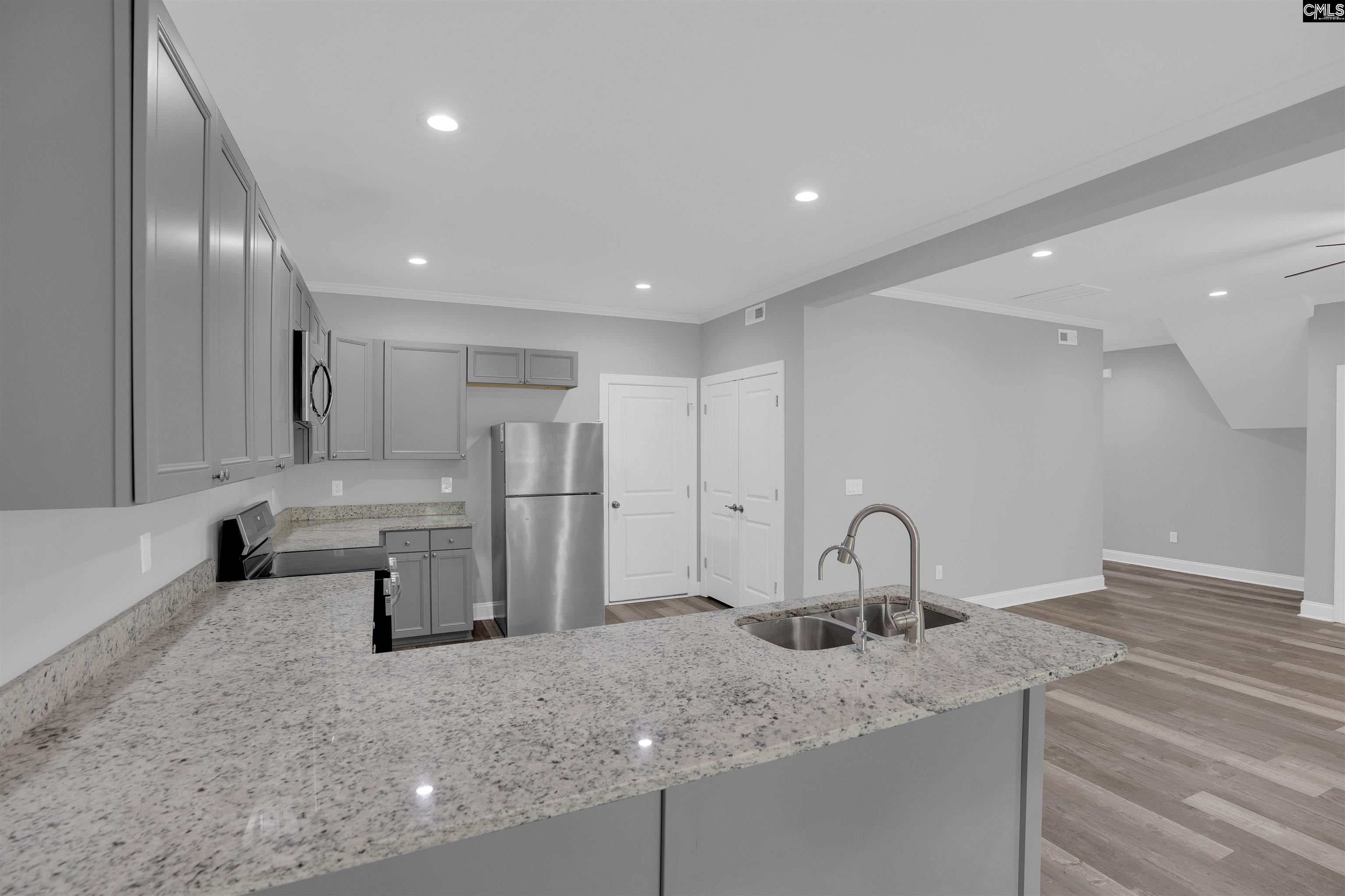 This 5BR/3.5BA home in Brookhill Park provides space, style, and privacy. Just minutes from all Lexington has to provide. Nestled on a 0.30-acre lot backing to wooded views, it features an open floor plan with a stunning kitchen, granite countertops, stainless steel appliances, and a walk-in pantry. The main level includes the Owner's Suite with a large walk-in closet and a flexible second bedroom perfect for guests or a home office. Upstairs boasts a 400 sq. ft. loft ideal for entertaining, plus three spacious bedrooms, a full bath, and a half bath. Enjoy peaceful views of Fourteen Mile Creek from the back porch. Disclaimer: CMLS has not reviewed and, therefore, does not endorse vendors who may appear in listings.