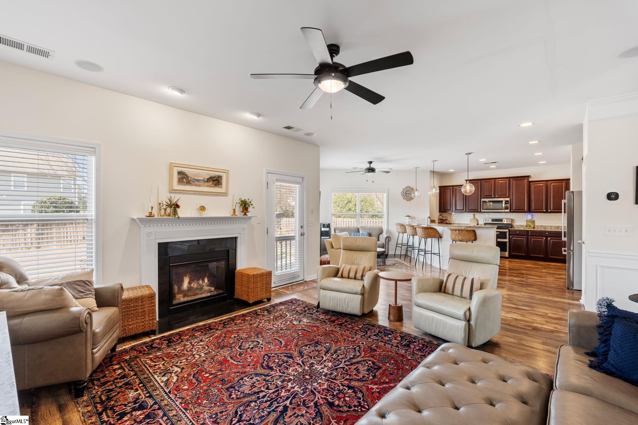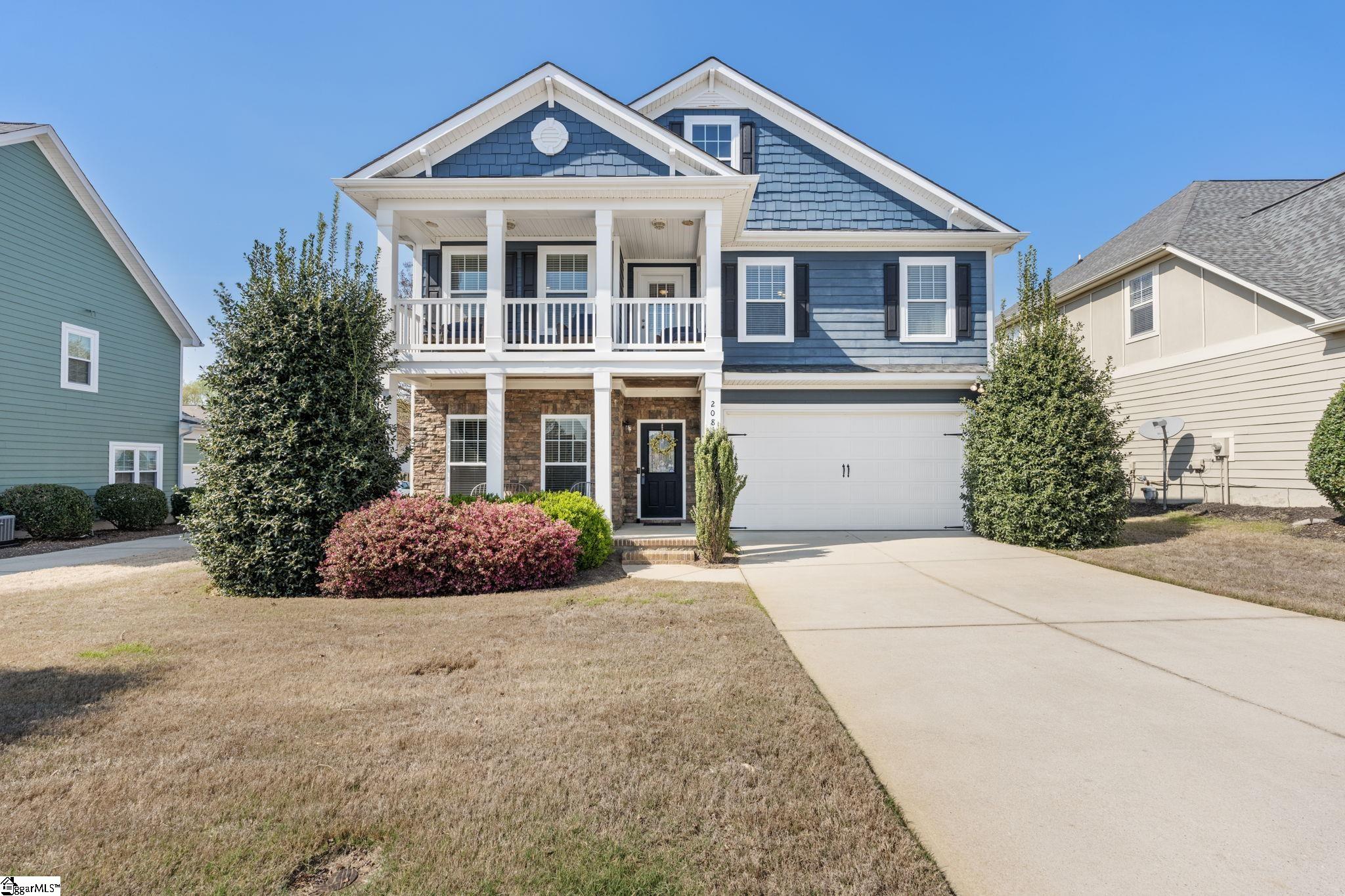 Charming Verdmont Living with Timeless Charleston Style Welcome to this thoughtfully designed 4-bedroom, 2.5-bath home in the sought-after Verdmont community, where charm, comfort, and convenience come together. Ideally situated near shopping, dining, and major roadways, this home offers easy access to everything you need while being tucked inside a vibrant, family-oriented neighborhood. The exterior makes a lasting impression with its classic double front porches, attractive stone accents, and durable Hardie Plank siding, all framed by mature, manicured landscaping. Inside, the home feels both inviting and spacious, featuring an open-concept layout, elevated ceiling heights, and detailed finishes like crown molding and decorative wainscoting. Wide-plank flooring flows throughout the main level, leading you into a comfortable living area centered around a gas fireplace. The kitchen serves as the heart of the home, complete with granite countertops, stainless steel appliances, abundant cabinetry, and stylish lighting. A bright dining nook surrounded by windows creates the perfect setting for everyday meals. Upstairs, the primary suite offers a peaceful retreat with its tray ceiling, sitting area, and generous walk-in closet. The ensuite bath is designed for relaxation, featuring dual vanities, a soaking tub, separate shower, and private water closet. Three additional bedrooms provide plenty of space for family or guests and share a well-sized hall bathroom. The upstairs laundry room adds everyday convenience with built-in storage and workspace. Additional features include a flexible front room ideal for a home office or playroom, a whole-home audio system, and a tankless water heater for added efficiency. Out back, enjoy a private, fenced yard with a spacious patio—perfect for entertaining, grilling, or simply unwinding outdoors. Living in Verdmont means access to exceptional amenities, including scenic parks, gardens, a community pool, playgrounds, and gathering spaces. The neighborhood regularly hosts events like live music and food trucks, creating a true sense of community. This home offers the perfect blend of style, space, and lifestyle—come experience it for yourself!