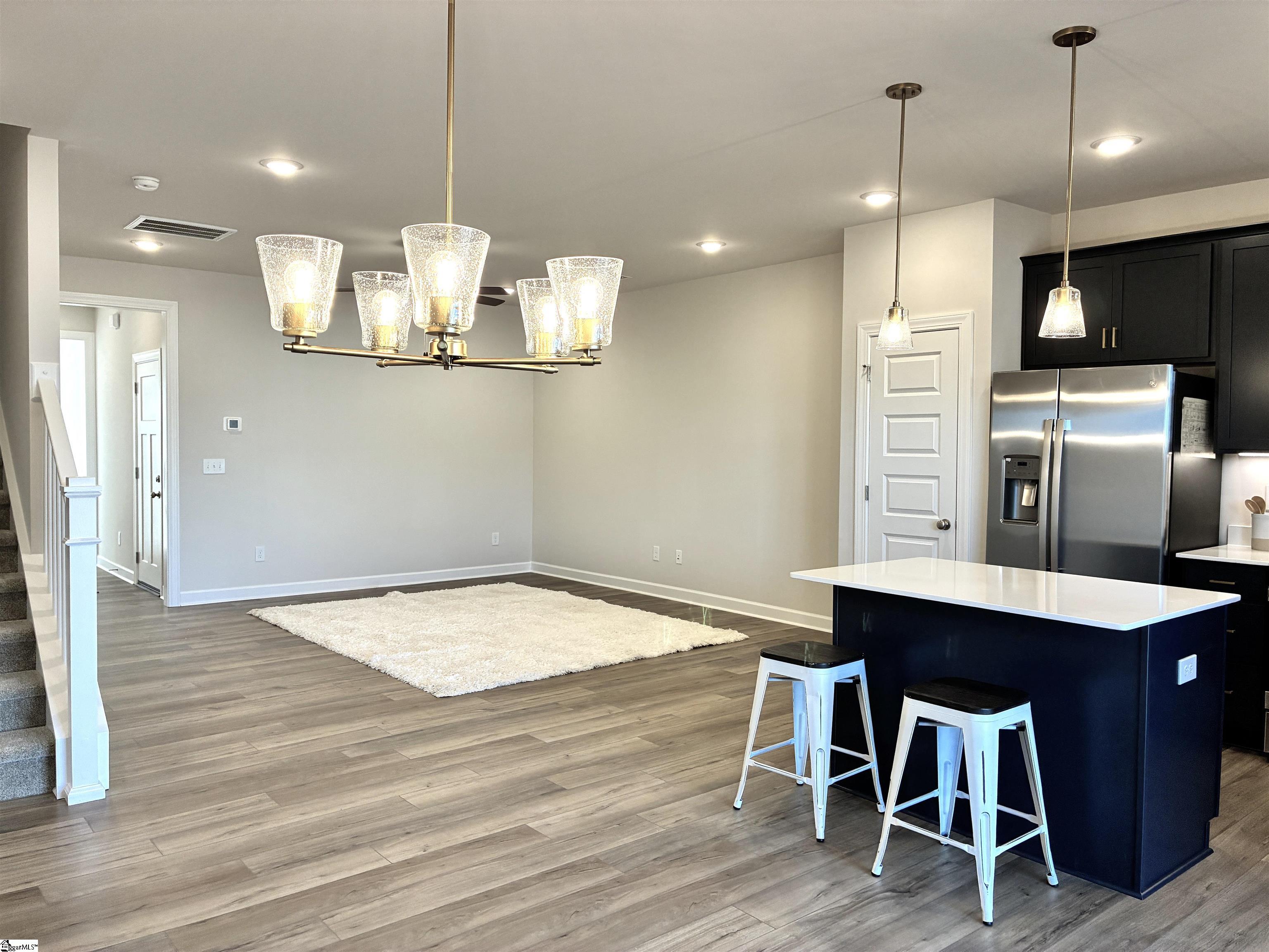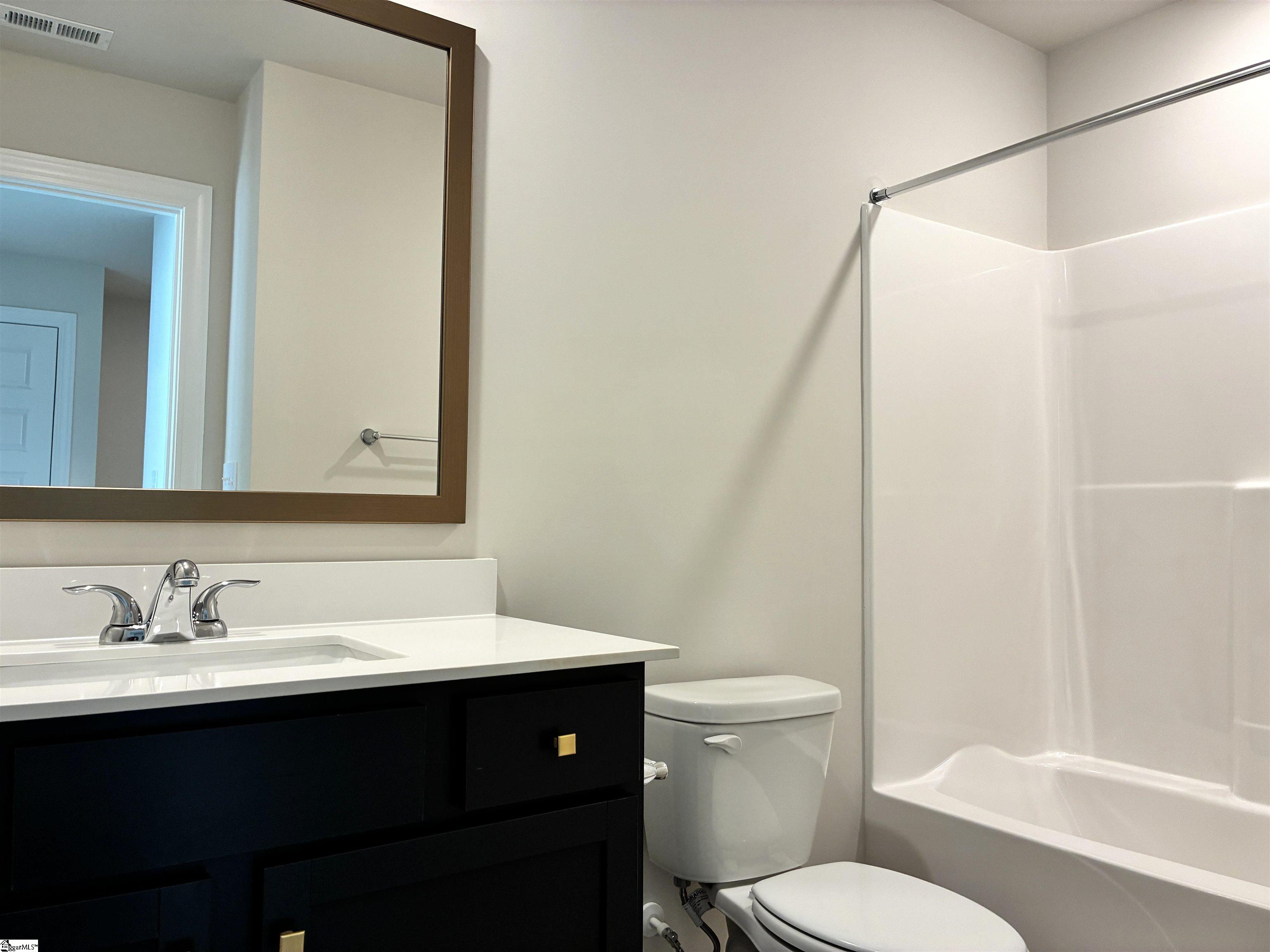 This home has a walk up Self-Tour option. Welcome to your Santa Barbara style custom curated home. This Carson plan by Cothran Homes has a lovely living room that leads right into the open concept kitchen and dining area. Fulton Harbor blue shaker style cabinets, Satin Brass hardware, Fashion White Quartz countertops, under cabinet lighting and spacious center Fulton Harbor blue Island makes this charming and inviting kitchen the place to be. Enjoy cooking on your GE Stainless gas range and whip up a meal so tasty your family will be talking about it for days. Kitchen also includes GE Stainless above-the- range microwave and dishwasher. This 3 Bedrooms, 2 ½ baths, includes 5” wide Polaris Driftwood luxury vinyl plank flooring throughout 1st floor main living areas and Shaw Midway Plaza Wheat Field carpet in second floor bedrooms. Spacious Owner’s bedroom with Tray Ceiling, Minka ceiling fan, and walk- in closet. Stunning en-suite includes Full Walk-In Shower, Origins Essence resilient floors, Fulton Harbor blue double sink vanity, Arctic White Quartz countertop, white rectangle undermount sinks, and linen closet. Second floor laundry room includes Washer/ Dryer hookup and shelving for all your laundry accessories. The rear covered porch is the perfect spot to do some outdoor entertaining. And last, but not least, Sherwin Williams City Loft interior wall paint, Gold framed bathroom mirrors and Minka living room Ceiling Fan add the perfect final touches to complete this move-in -ready home.