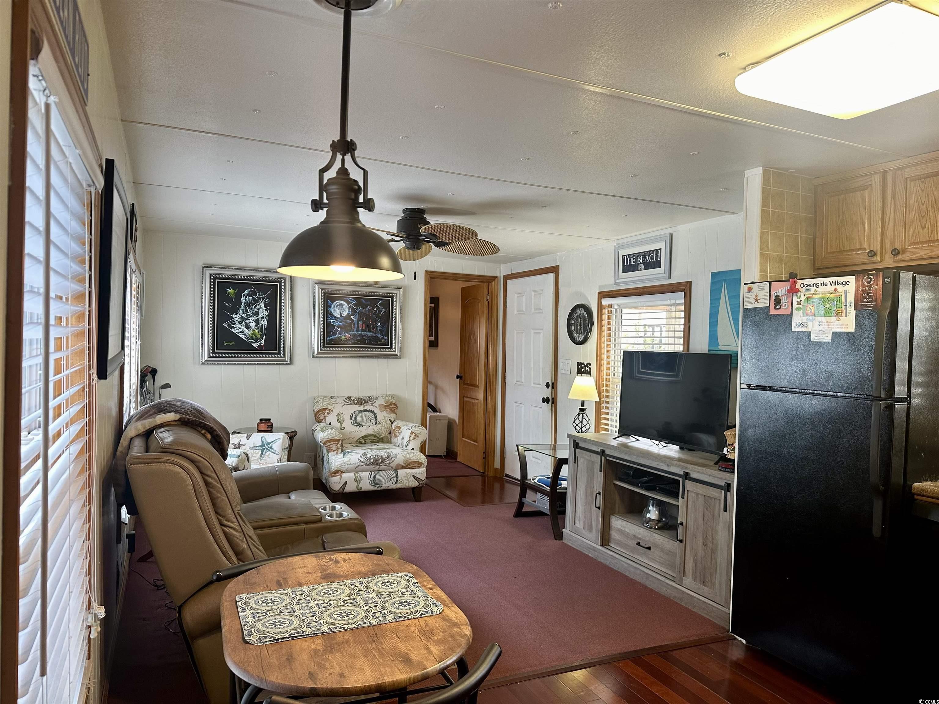 Located inside the gated golf cart community of Oceanside Village. Situated on a quite cul de sac just 3 streets from the beach. This home features 2 bedrooms and 1.5 bathrooms. Home has a great shaded front yard with plenty of parking and outdoor space. Perfect location for entertaining while enjoying the sounds of the waves crashing. Private beach parking, tennis courts, fitness center, pools, bark park, pickle ball and much more! Bank Financing is available.
