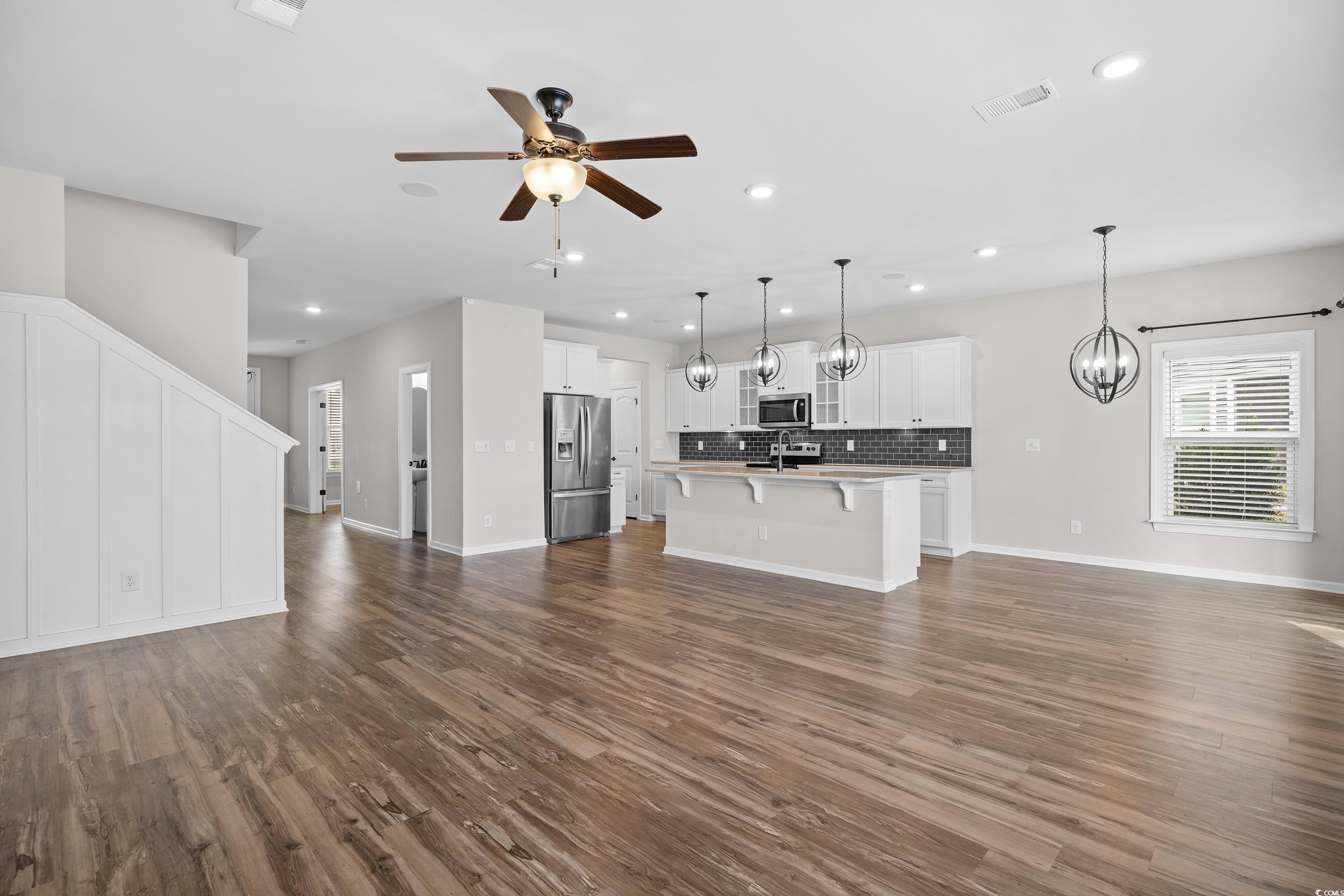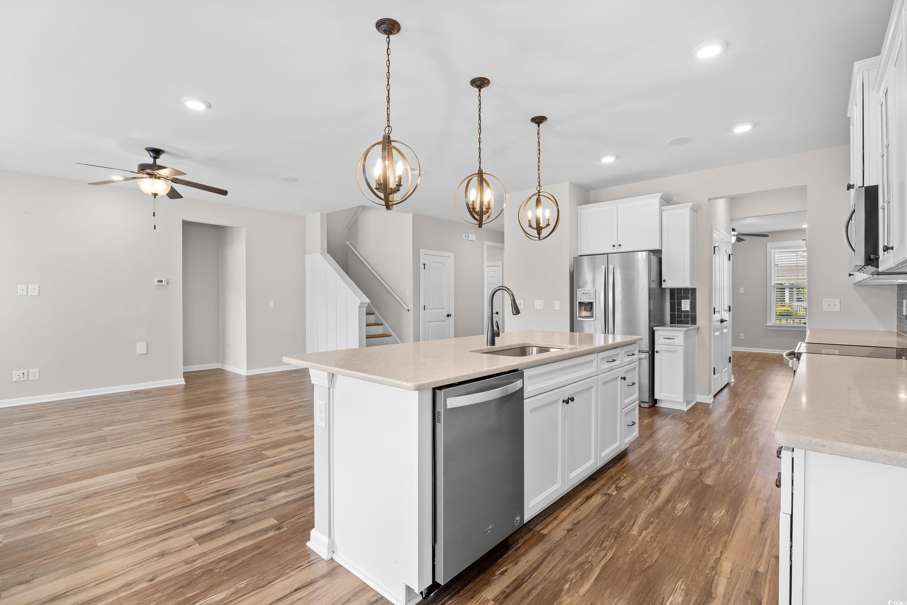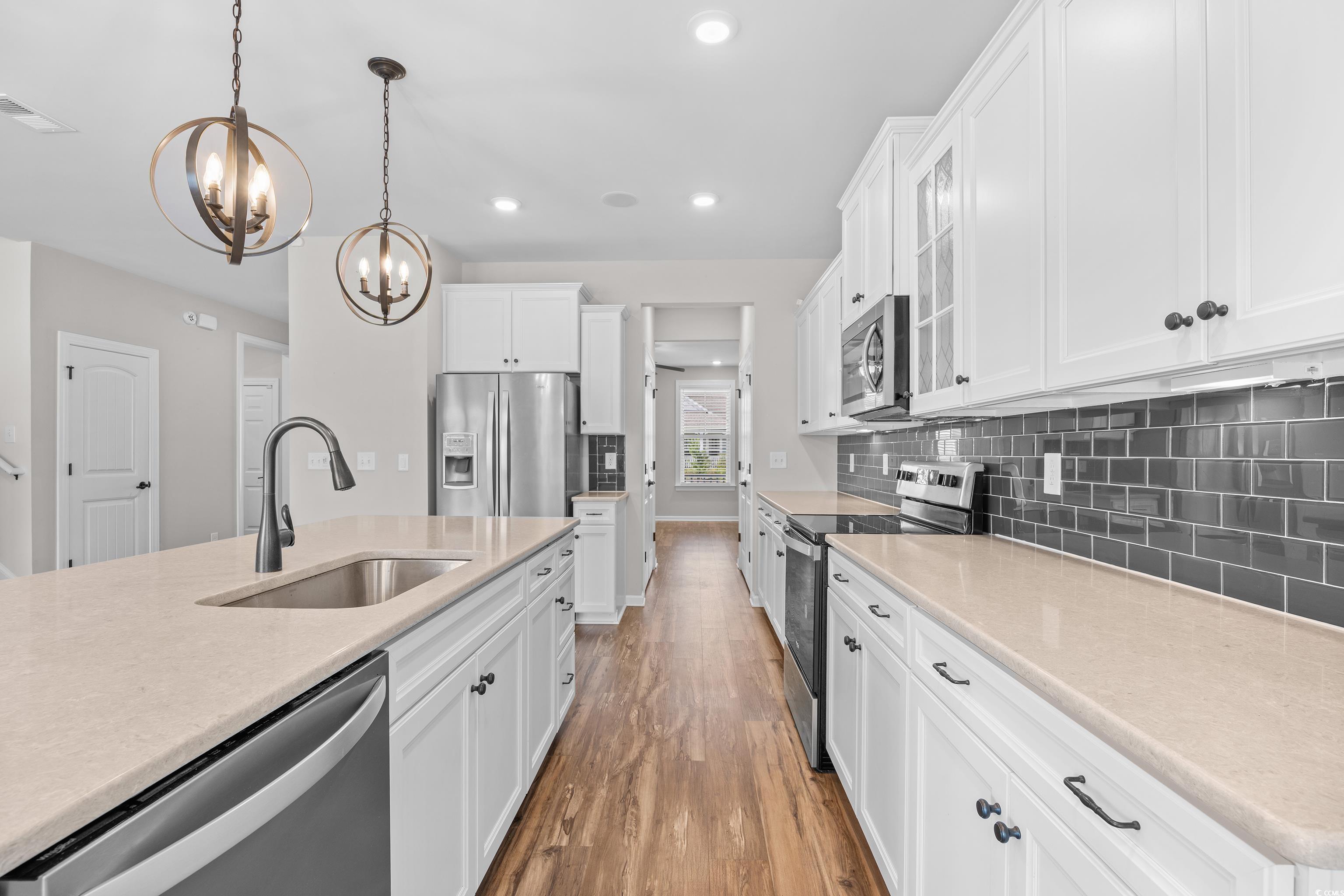 Discover this beautifully maintained Windsor model in the desirable Surfside Plantation community This was the model home for the neighborhood with loads of upgrades. Offering four bedrooms and three-and-a-half baths, this home features a bright, open floor plan perfect for everyday living and entertaining. The spacious kitchen is a chef’s dream, boasting a large island, stainless steel appliances, quartz countertops, a butler’s pantry, and ample cabinet space. A dedicated study with French doors provides a quiet retreat for work or reading. Enjoy natural gas, luxury vinyl plank flooring throughout, and a screened porch overlooking a peaceful pond, perfect for morning coffee or evening relaxation. This home features a whole house speaker system with individual room controls and is also central vacuum ready. This home seamlessly combines comfort, style, and function in a prime location close to beaches, dining, and shopping.